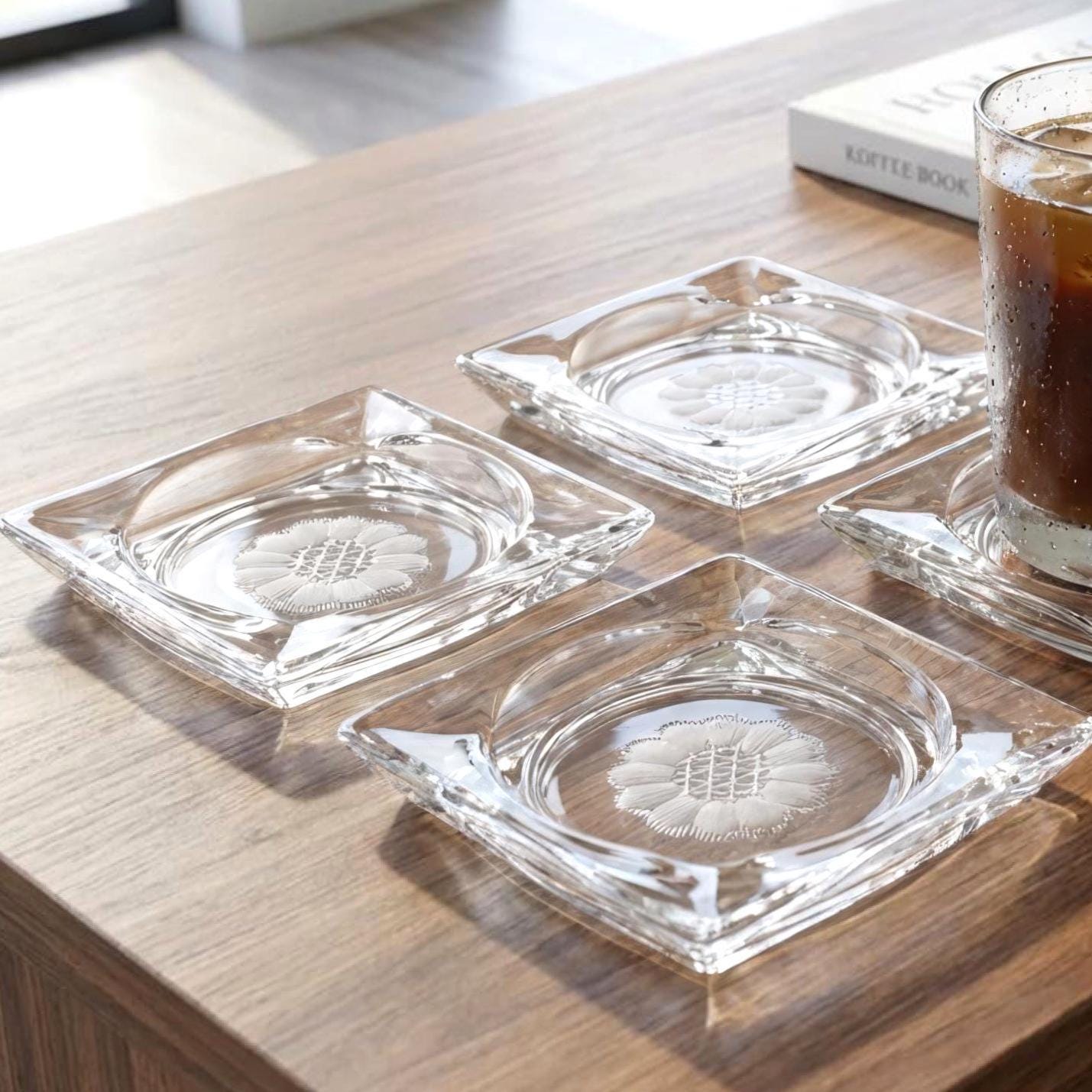 Hughes Cornflower Square Glass Ashtrays – Etched Barware Set of 4 Canada