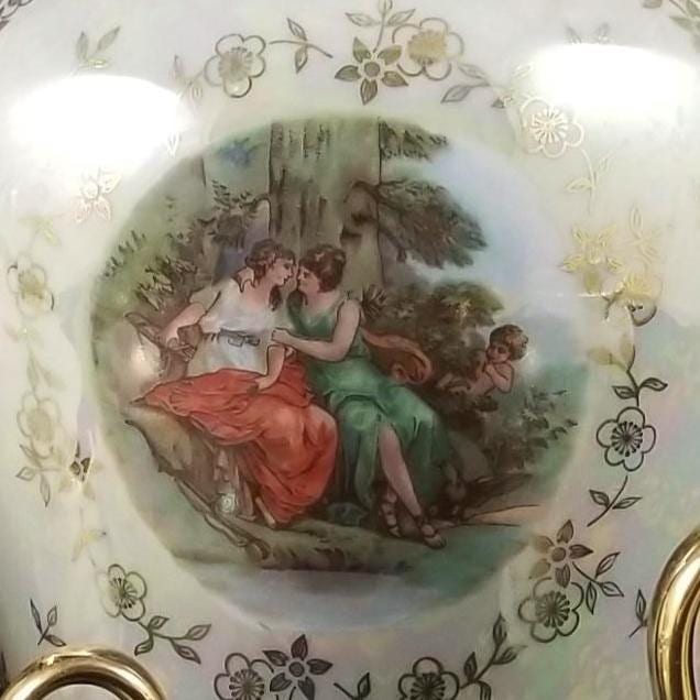 • Decoration: Fragonard inspired romantic scene transfer with gilt accents