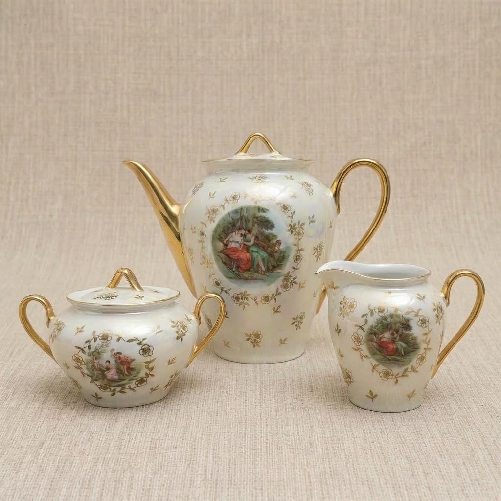 Fragonard Love Story Coffee Teapot Creamer and Sugar Bowl – Fisher China Germany Vintage