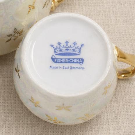 Fisher China Germany produced the No. 025 L’Amour or Love Story pattern from the 1960s–1980s, inspired by Jean Honoré Fragonard’s romantic imagery and valued for its detailed transfers and luminous finish.