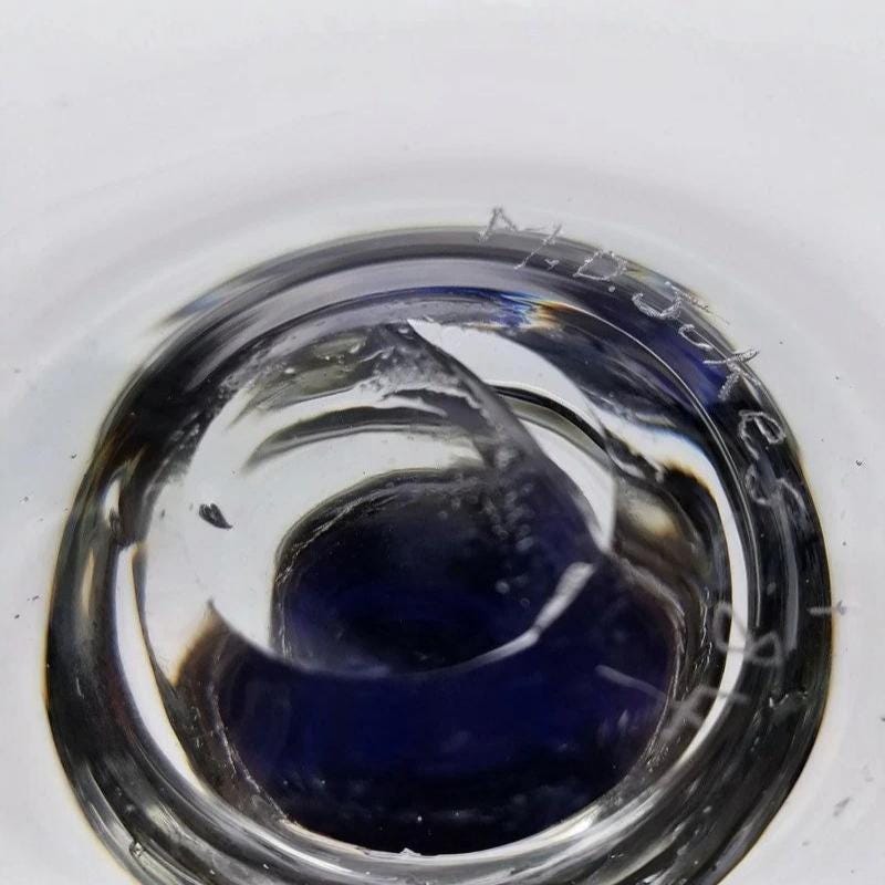 MD Jukes 1984 Signed Canadian Art Glass Goblets Pair Hand Blown Cobalt Blue