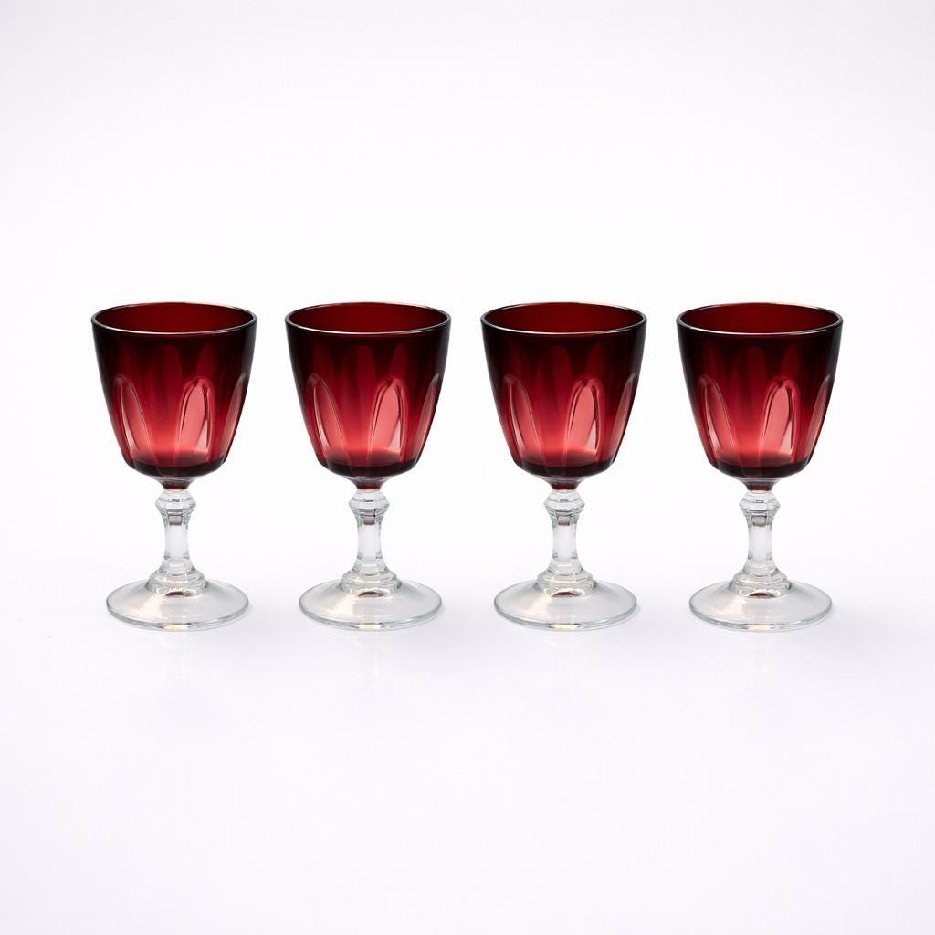 Cristal D'Arques Ruby Gothic Cordial Glasses – Set of 4 Mid Century Barware France
