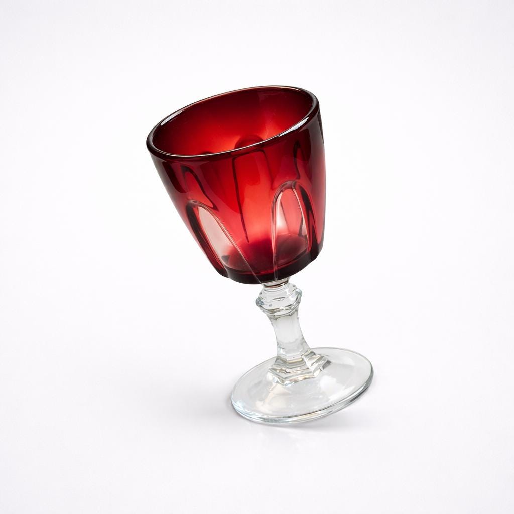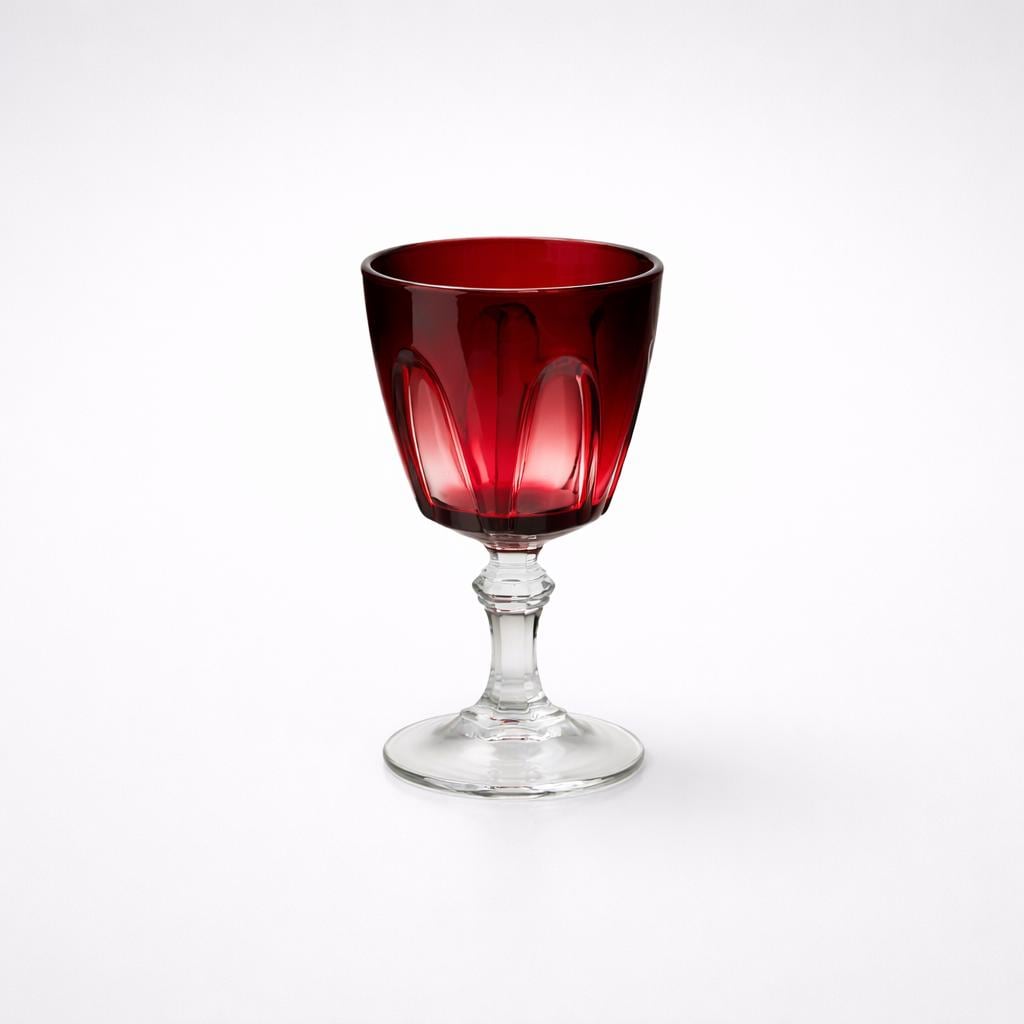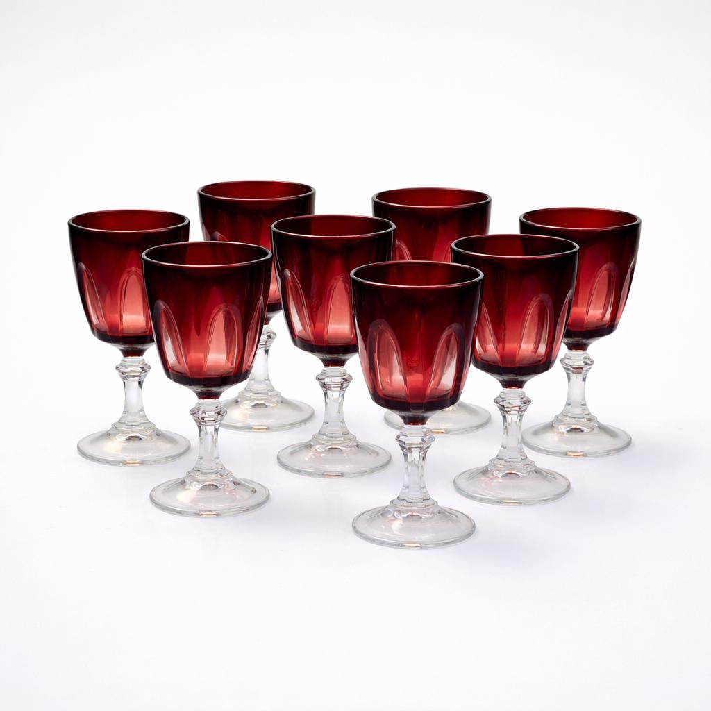 Cristal D’Arques is known for producing high-quality French lead crystal throughout the mid-20th century. The Ruby Gothic pattern remains especially collectible for its dramatic faceting, saturated color, and balance of decorative presence with functional tableware use.