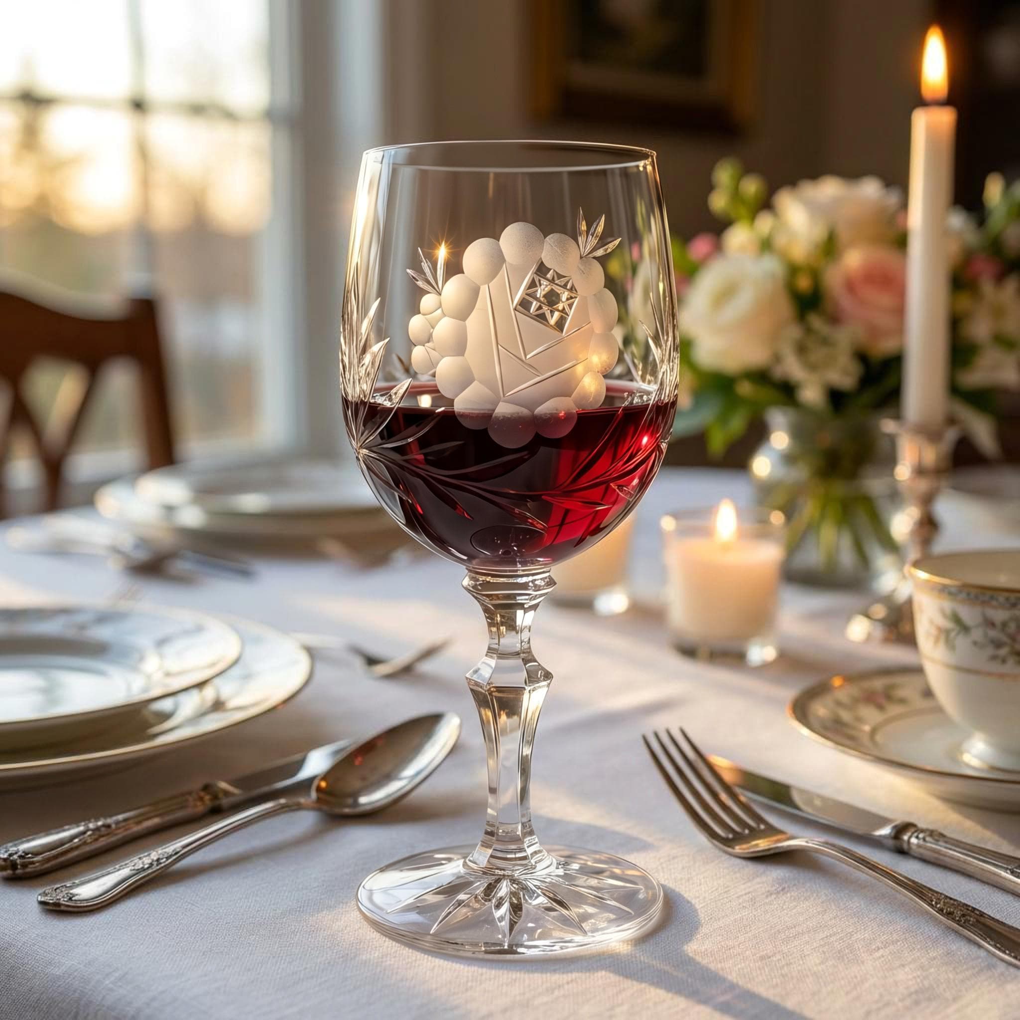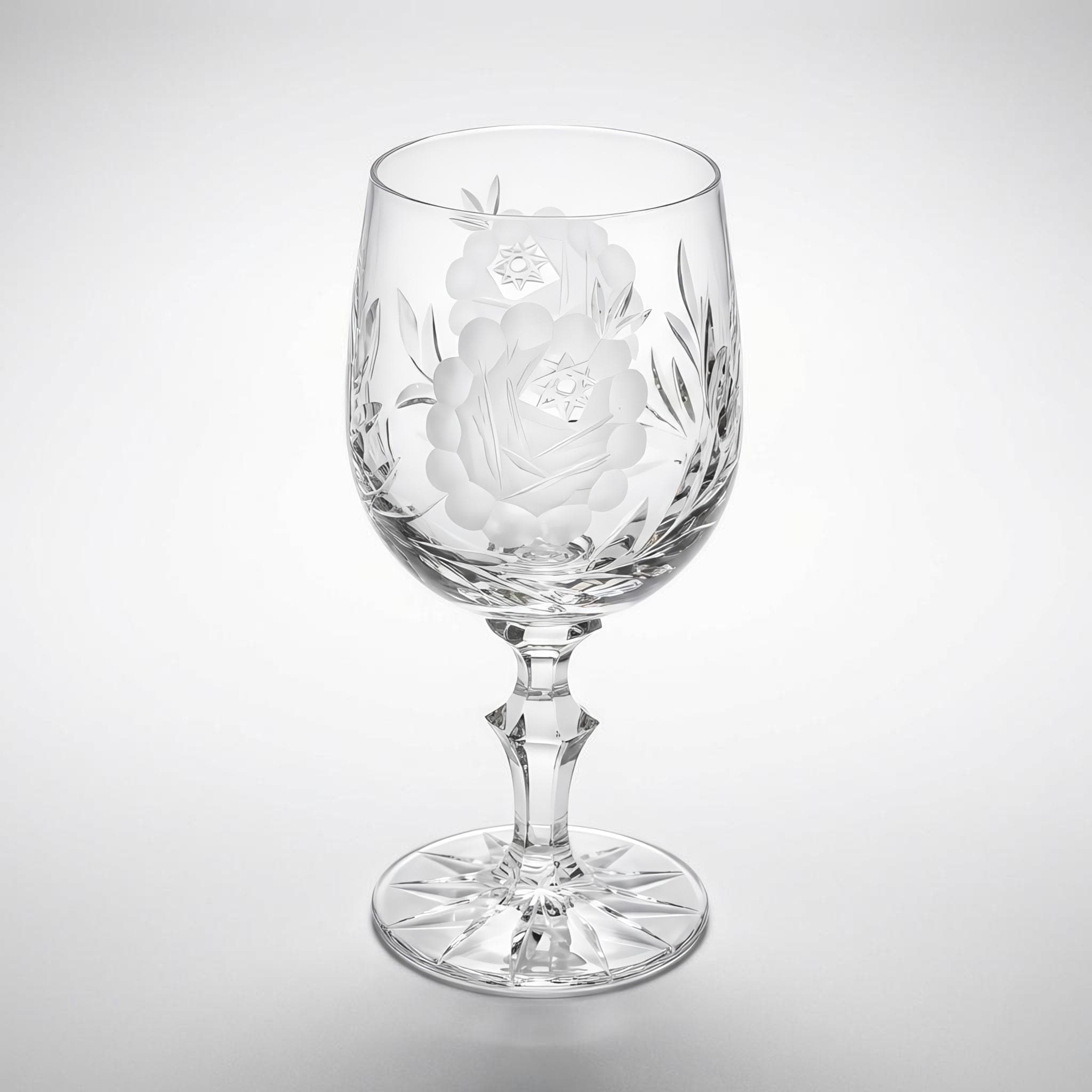 Vintage Beyer Crystal Etched Wine Glass – Hand Cut Floral Goblet Czechoslovakia