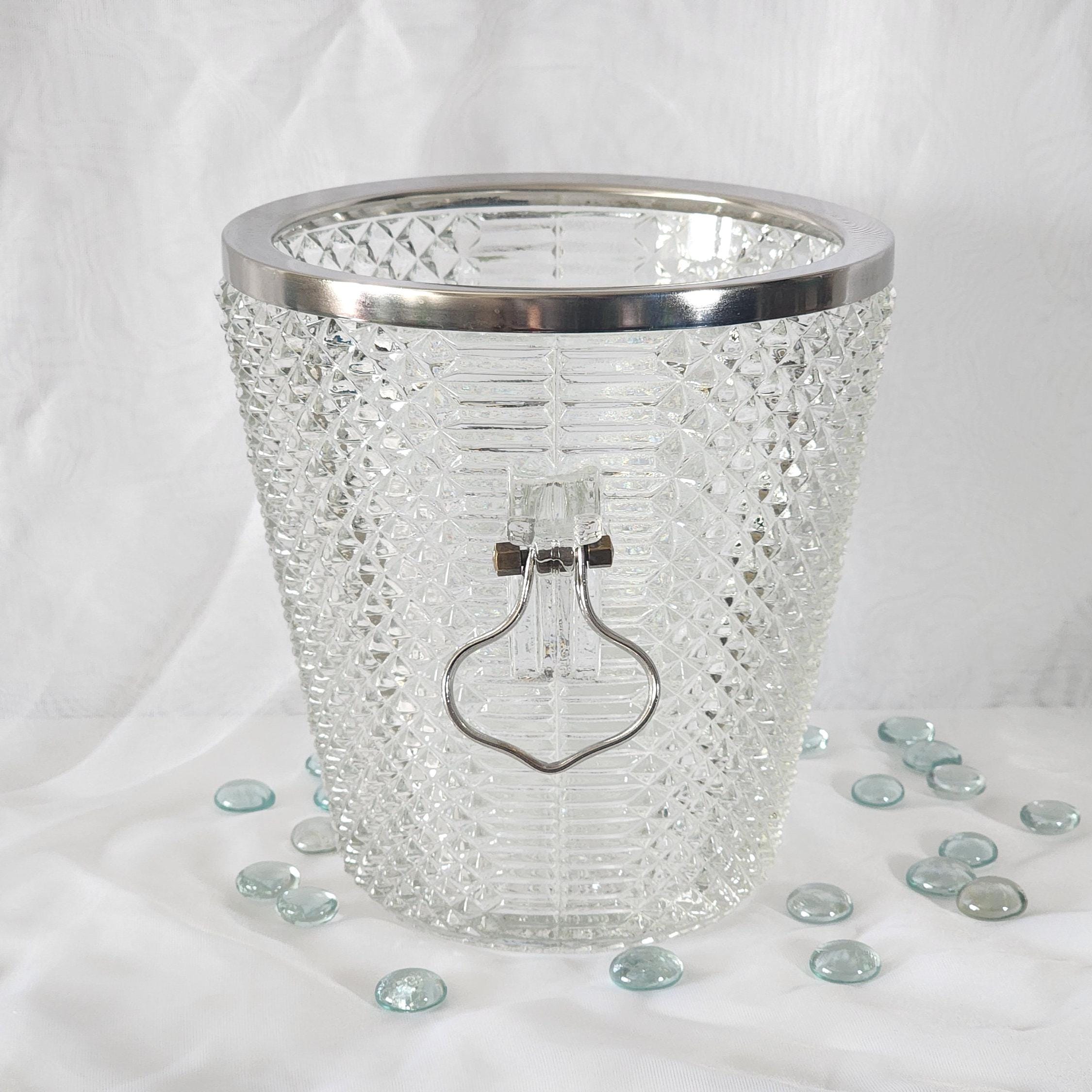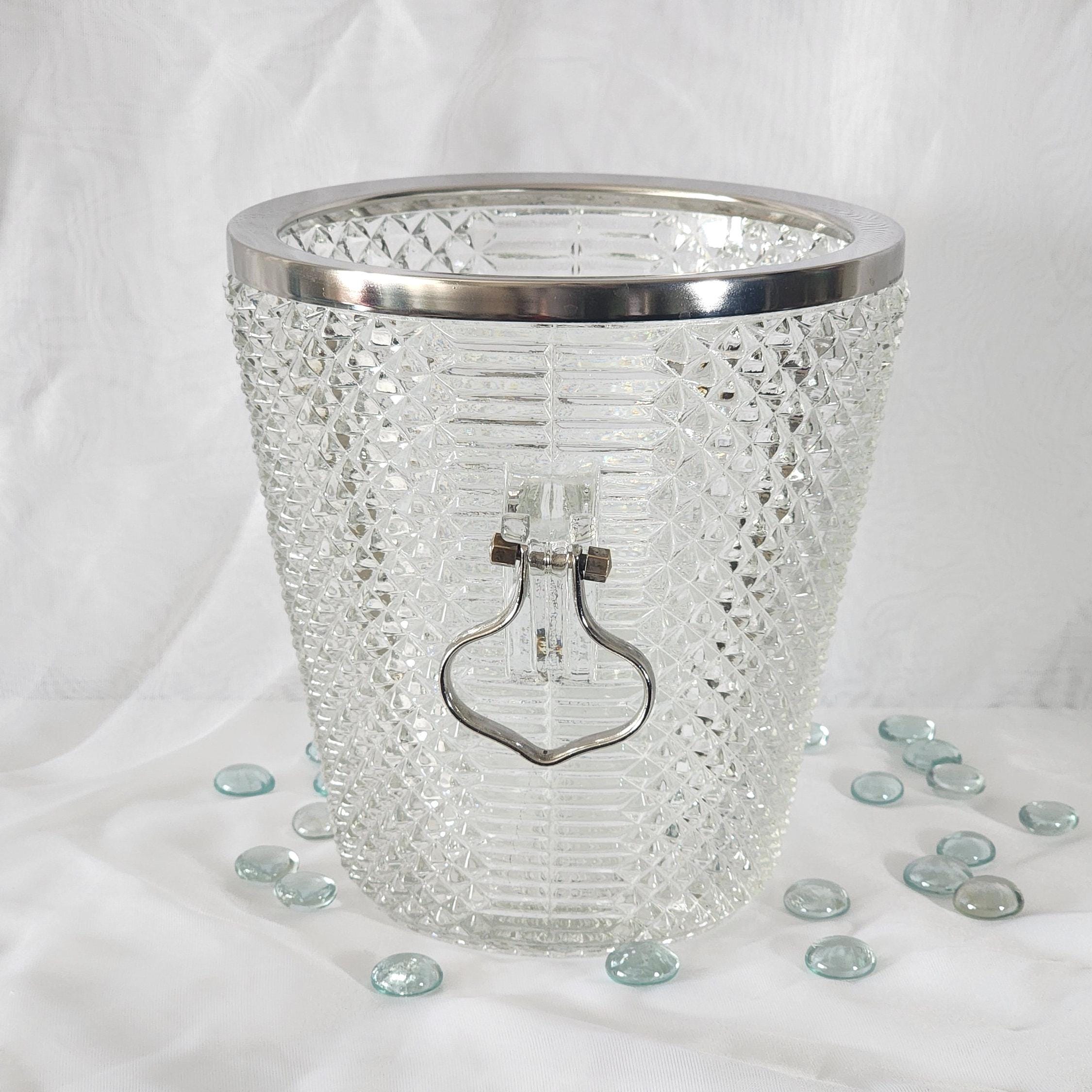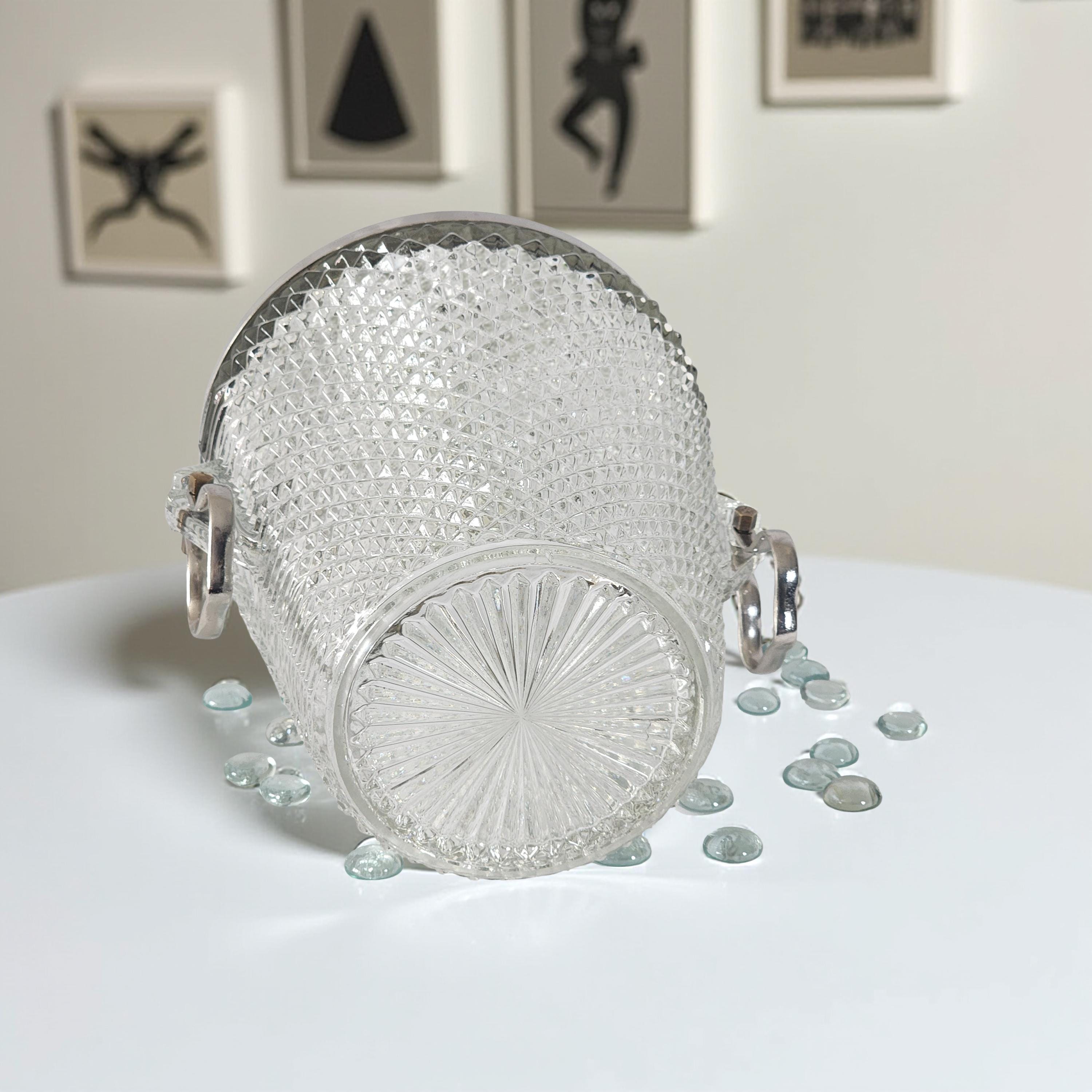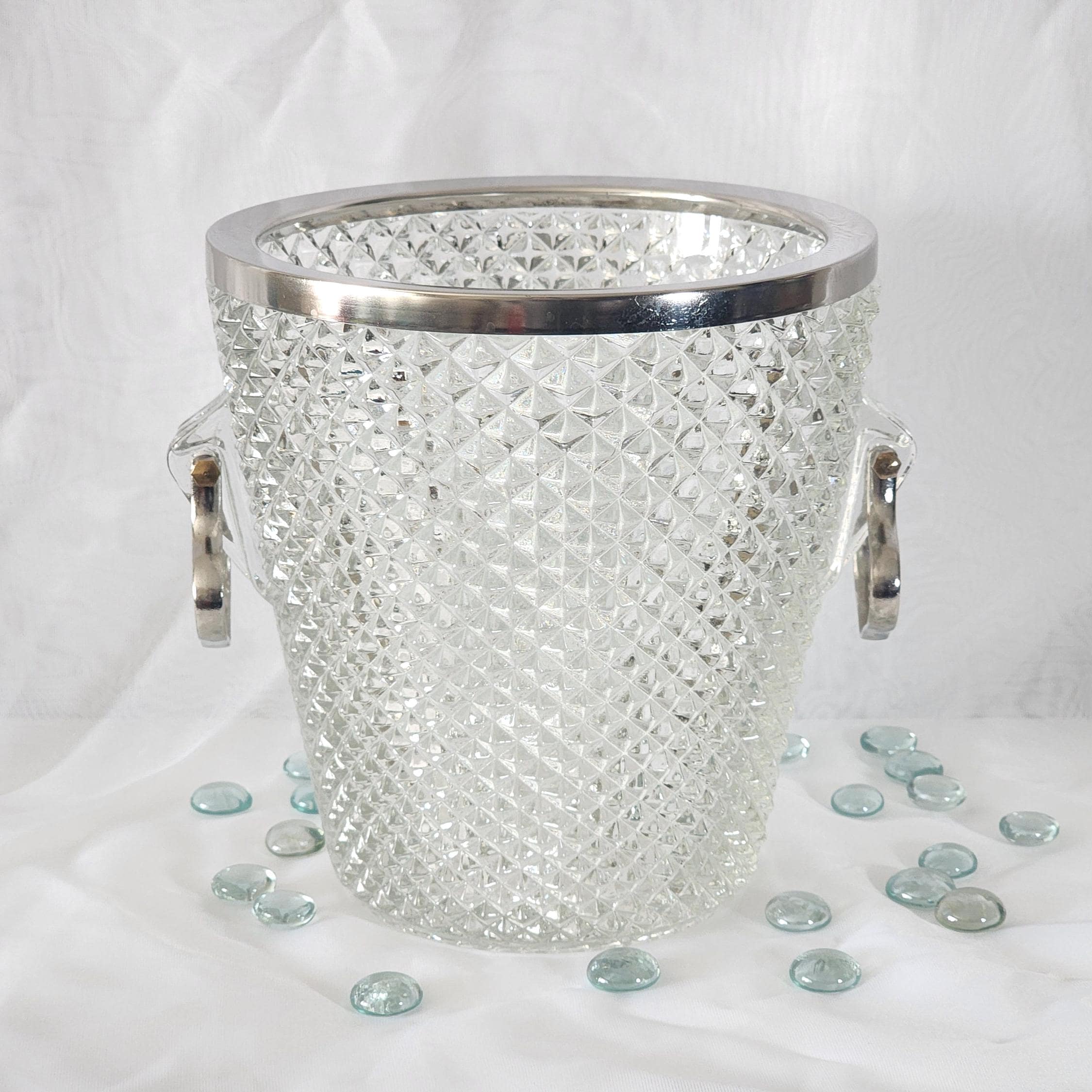 Mid Century Diamond Point Lead Crystal Ice Bucket with Silver Plate Handle – Falstaff England