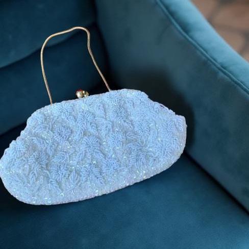 A coordinated pair of vintage hand beaded evening bags ideal for weddings, cocktail events, and elegant formal styling.