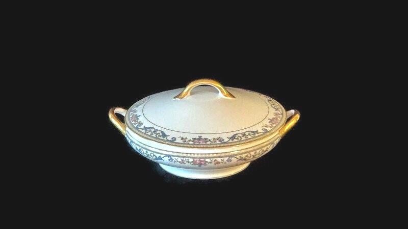 Noritake Chanlake Covered Vegetable Bowl with Gold Handles – Floral Scrolls Vintage Japan