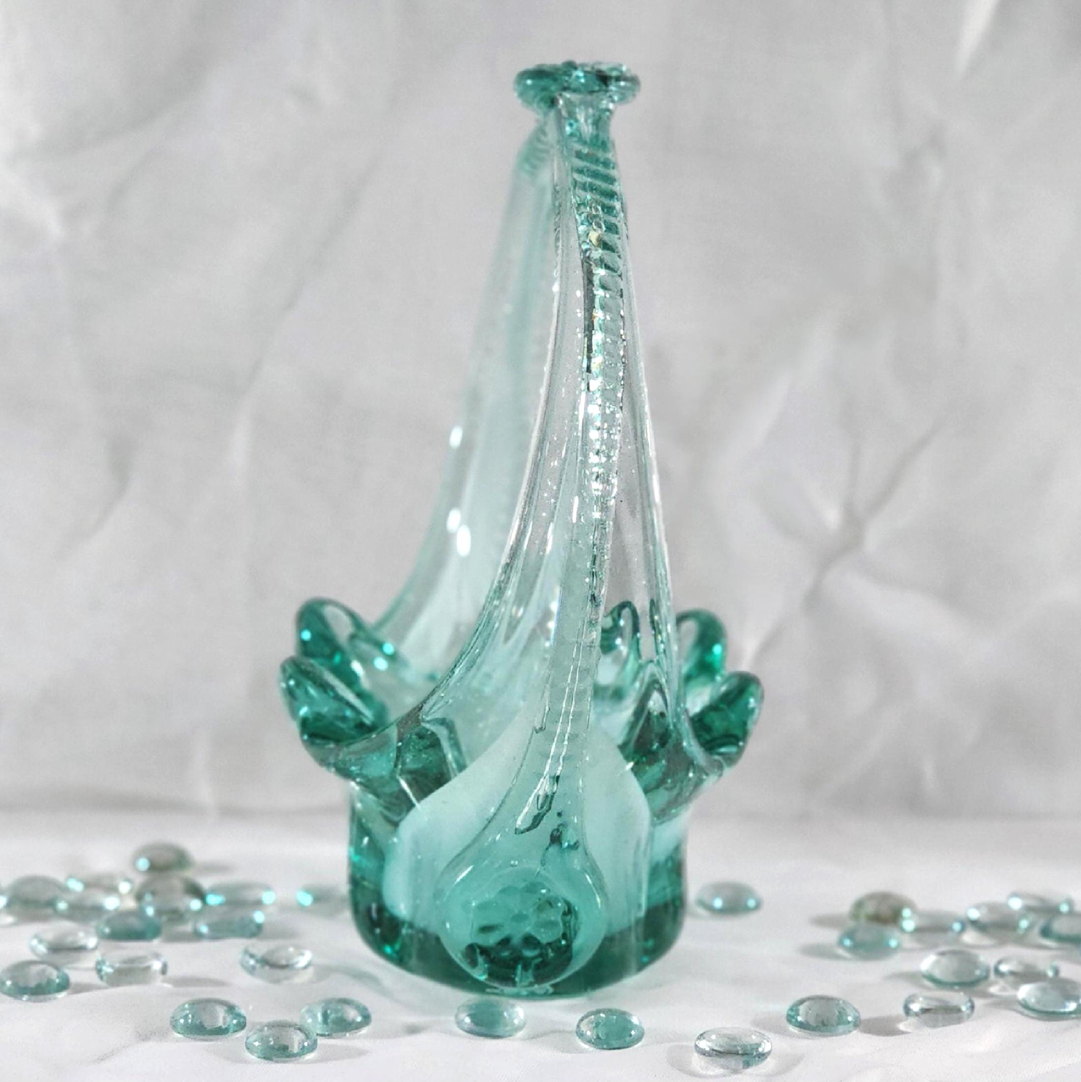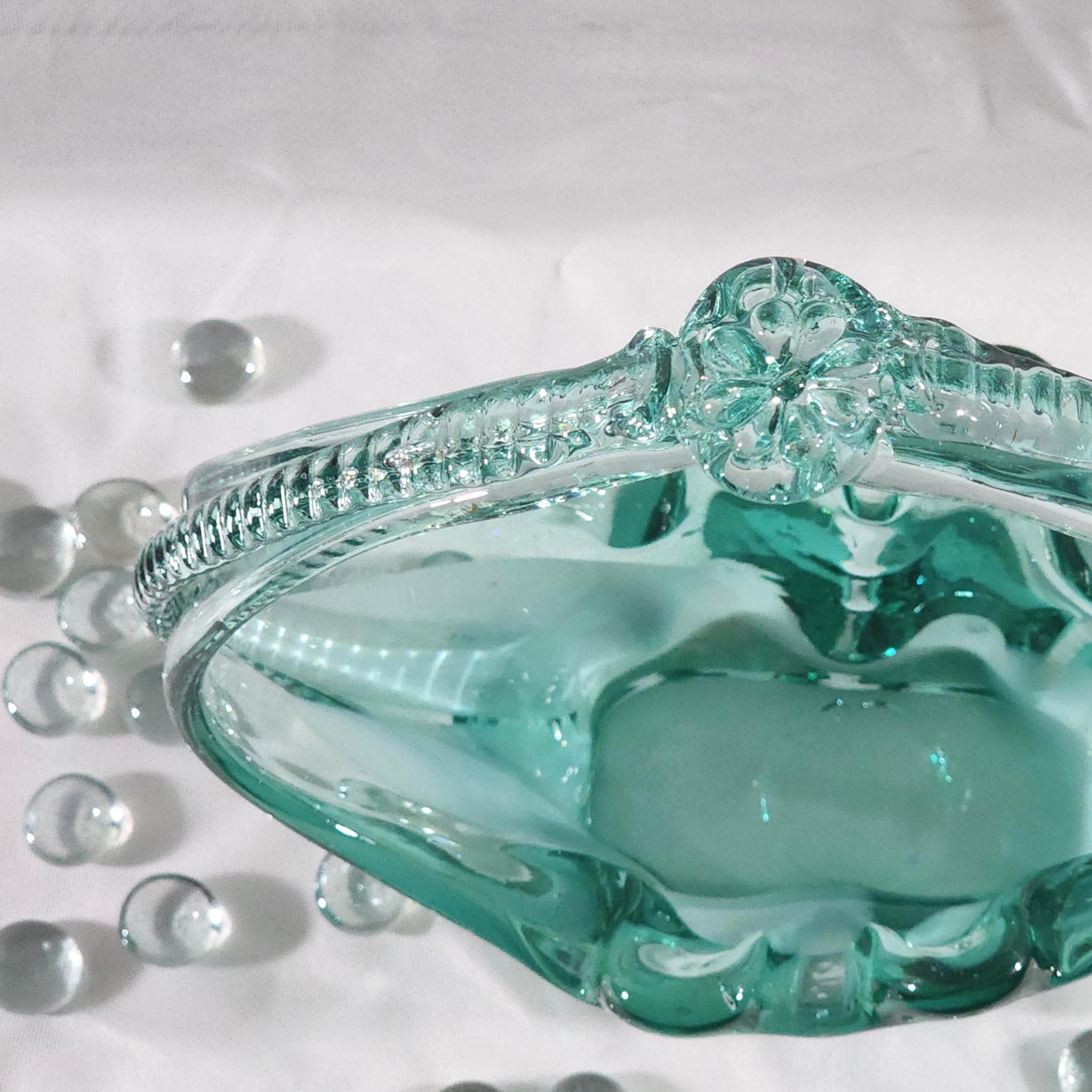 • Material and Colour: Translucent teal green glass with subtle opaque accents