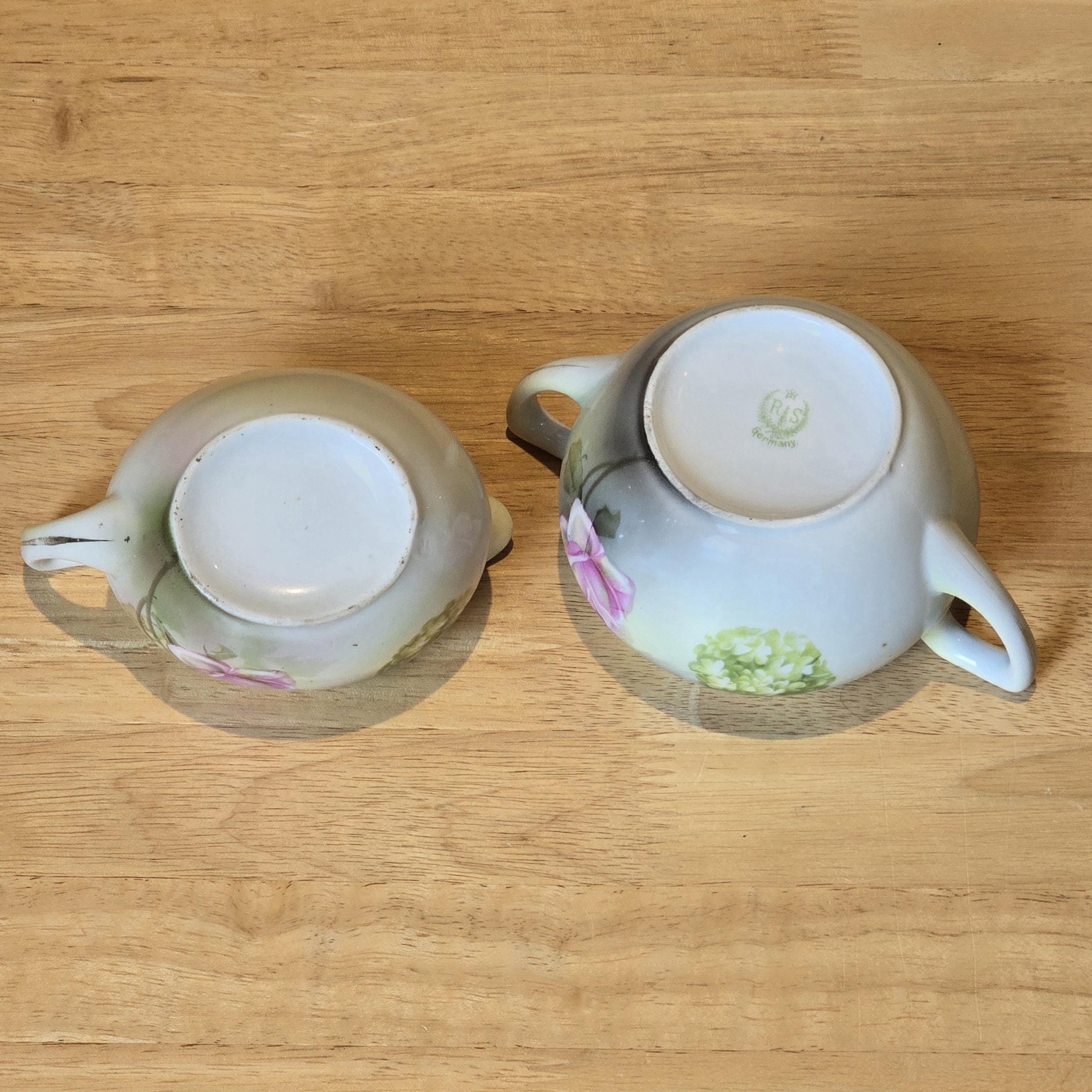 Vintage RS Germany Creamer and Sugar Set Hand Painted Porcelain Green Mark