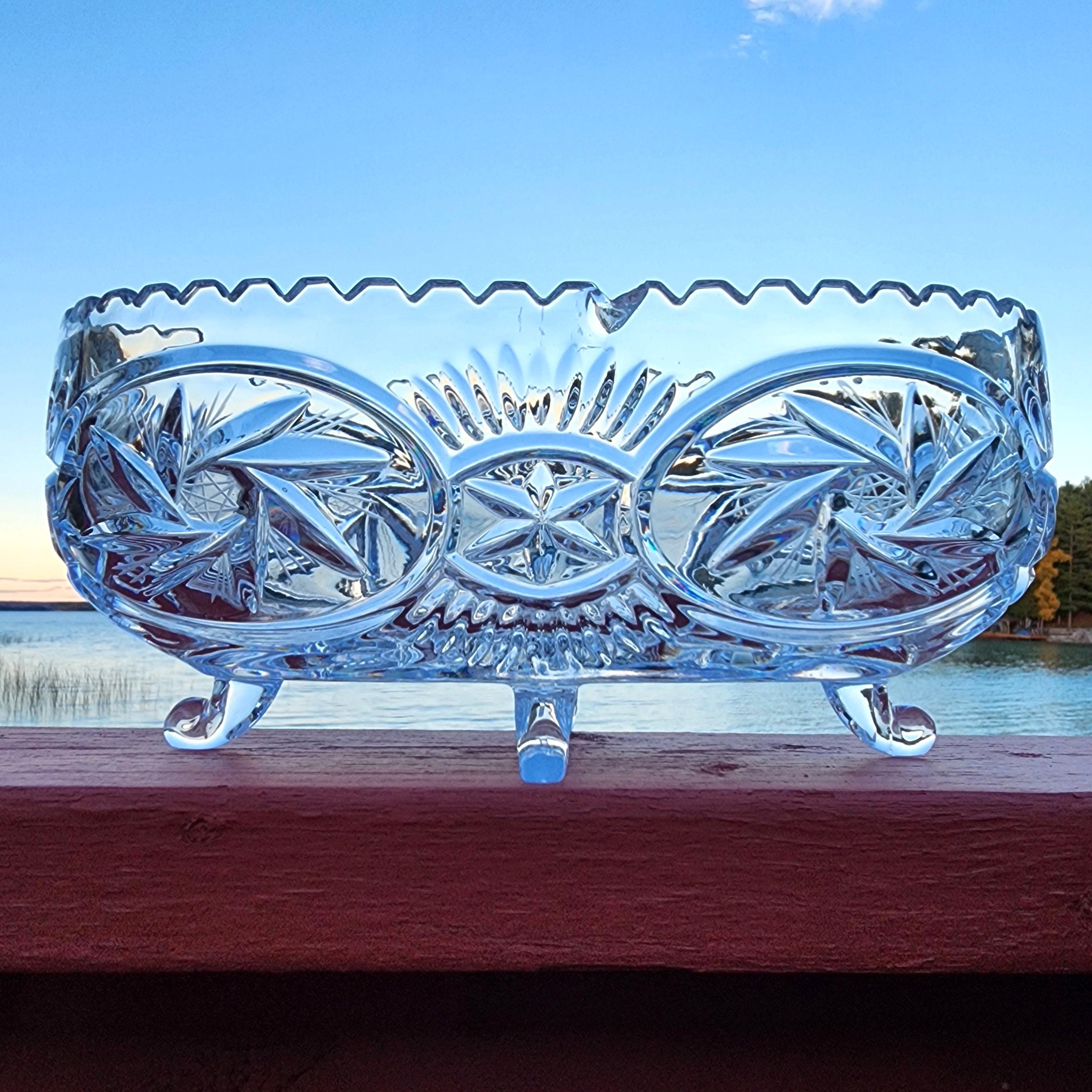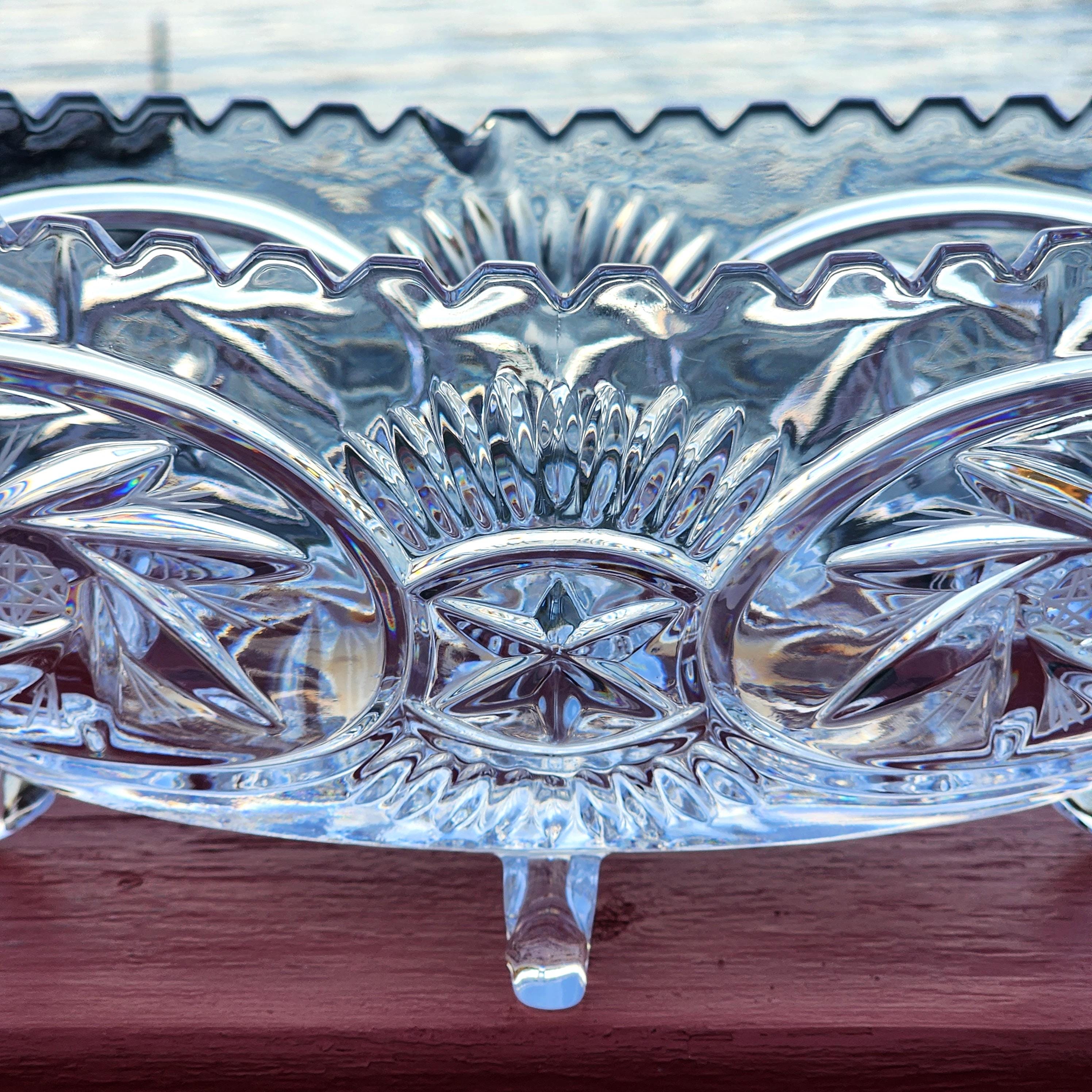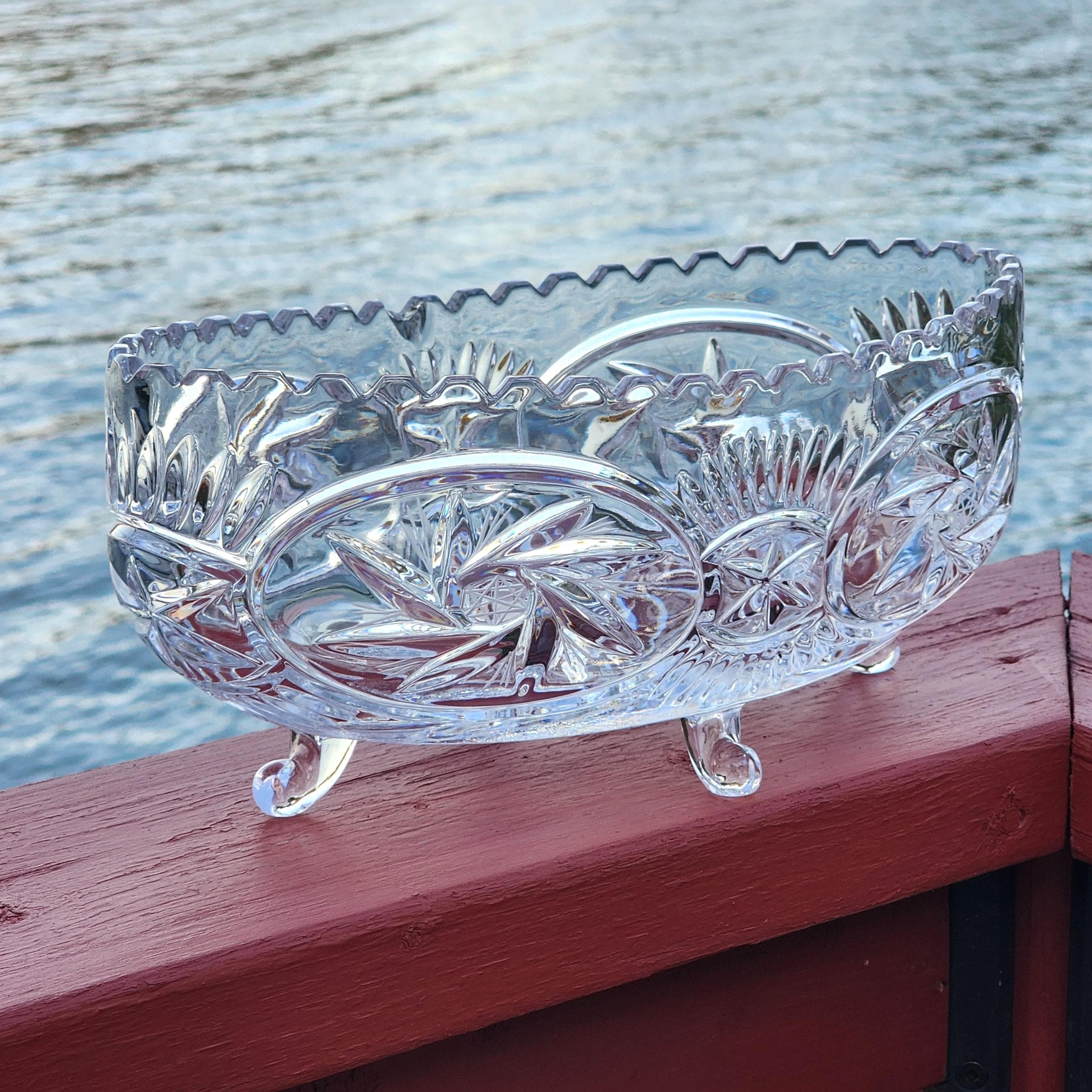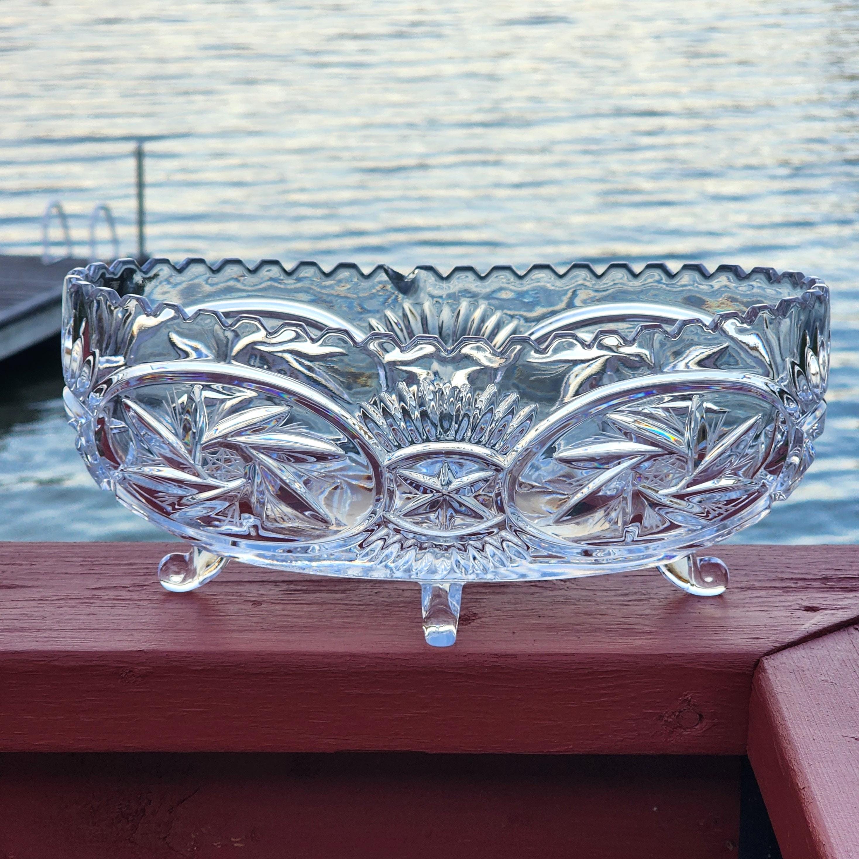 Zaječar Footed Centerpiece Bowl Vase – 24 Percent Lead Crystal Cut Glass Yugoslavia Serbia