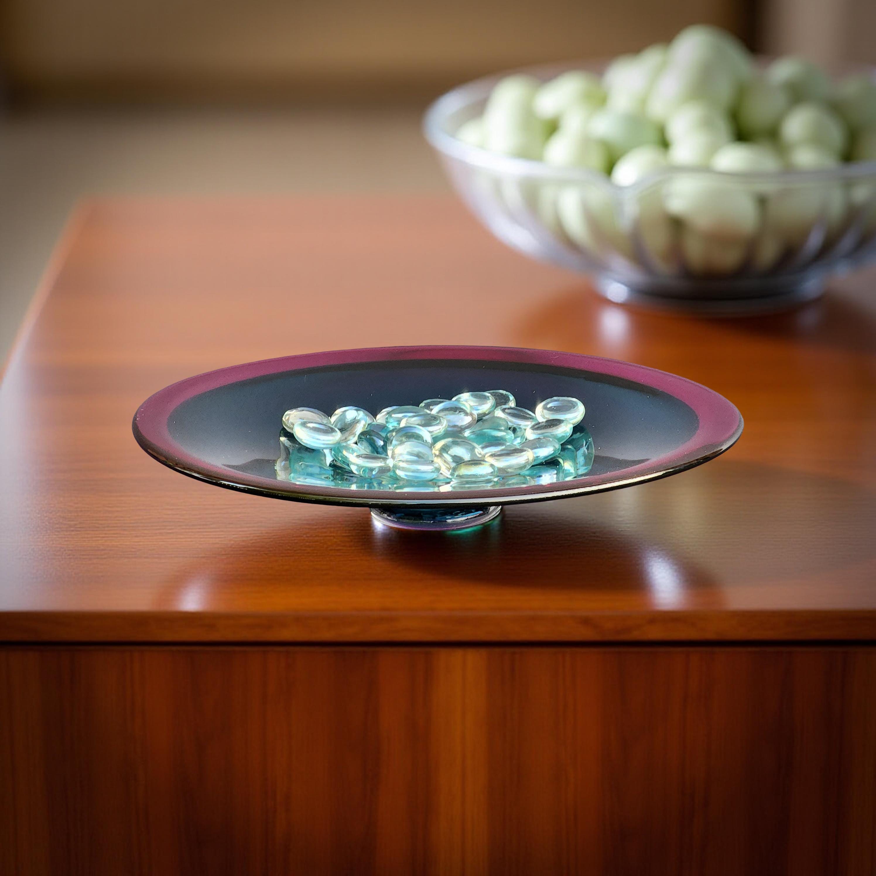 Cheryl Takacs Signed Studio Art Glass Minimalist Decor – Cobalt Blue and Fuchsia Centerpiece Dish