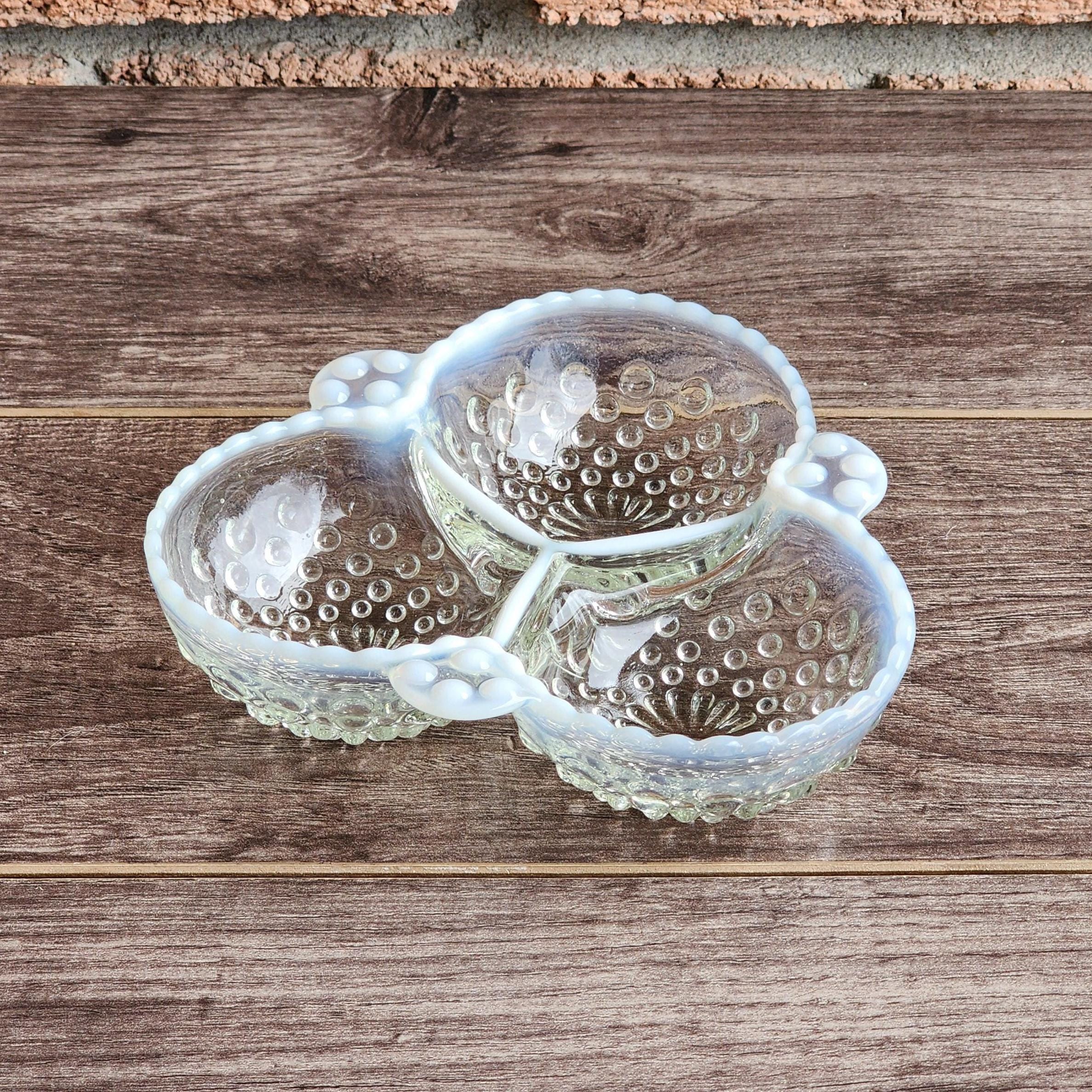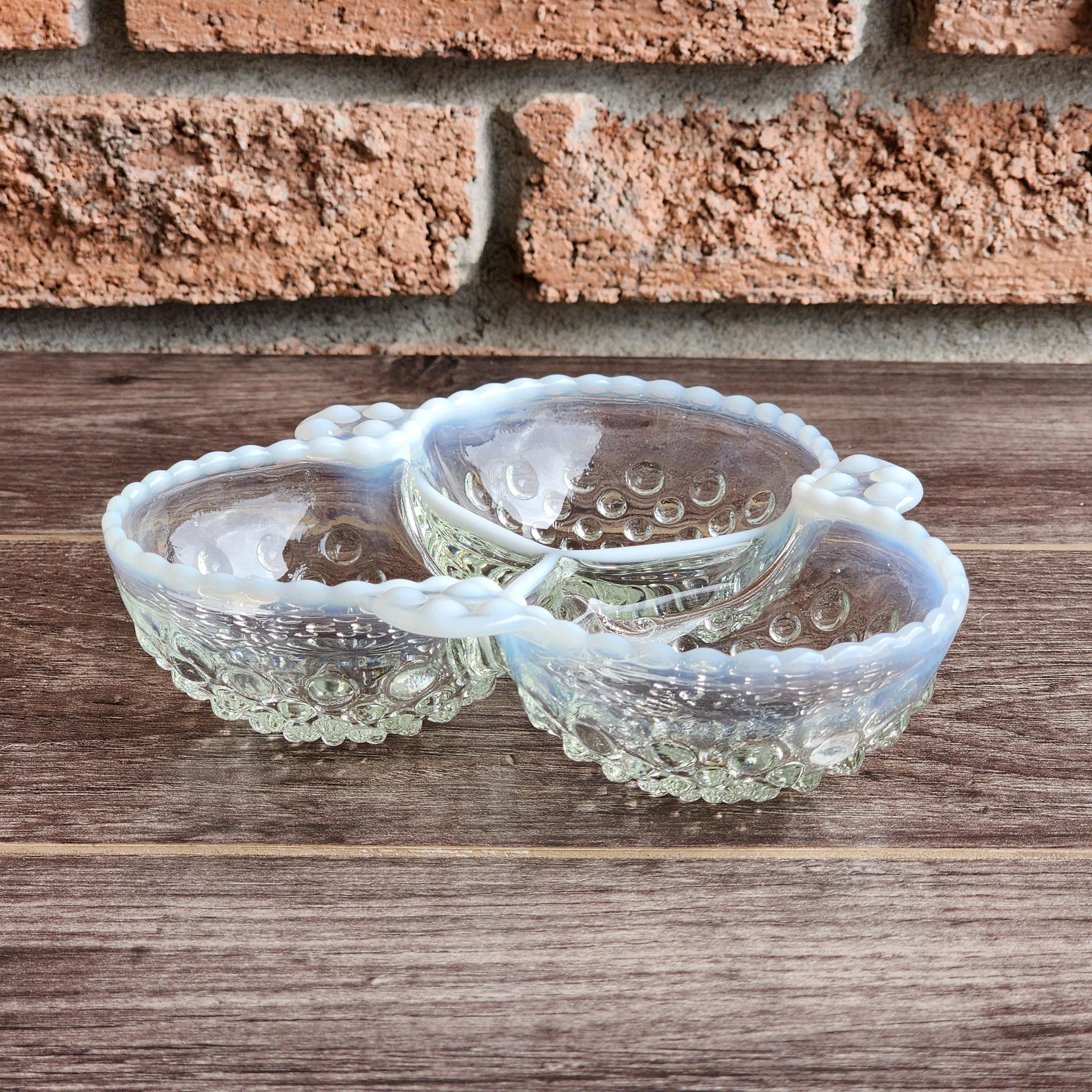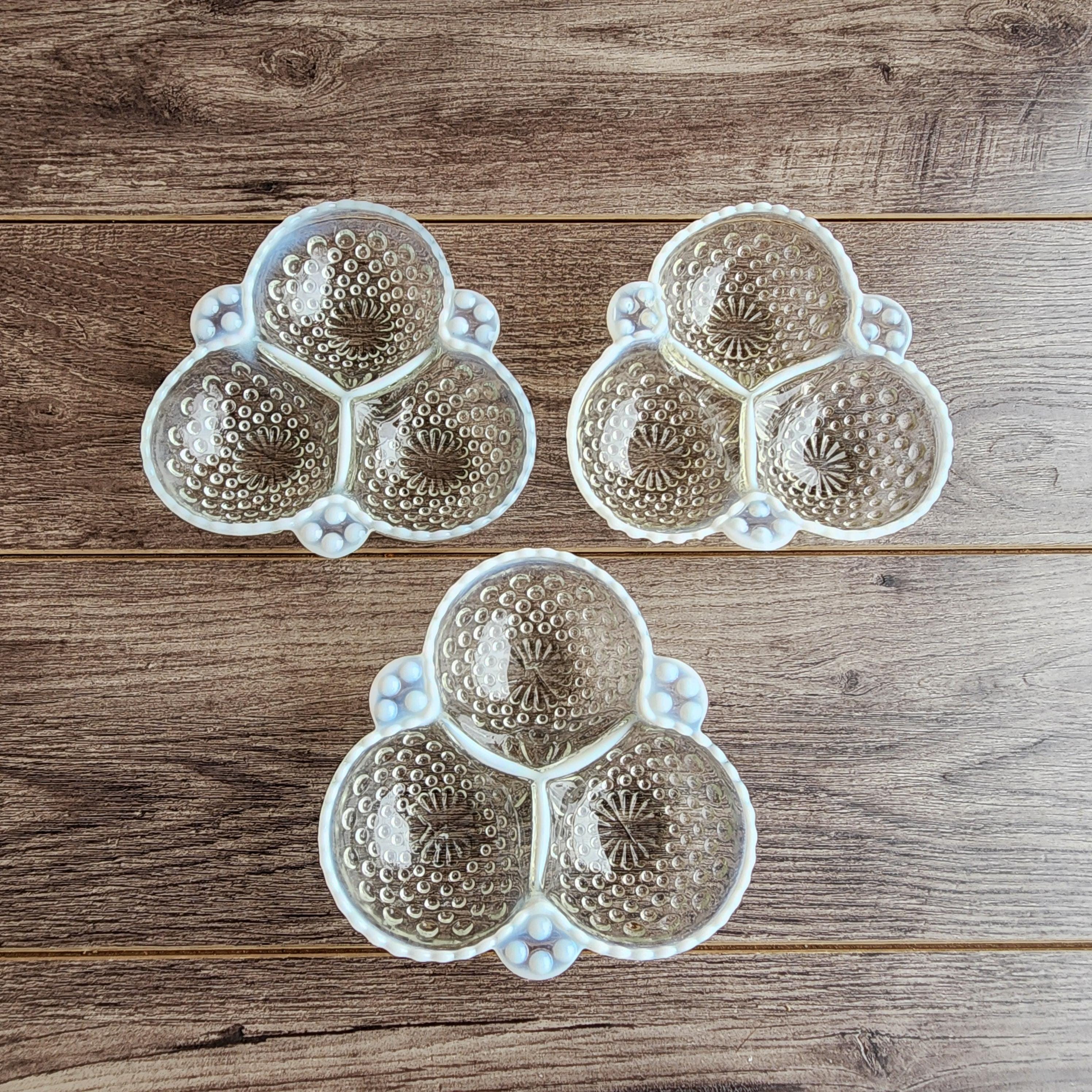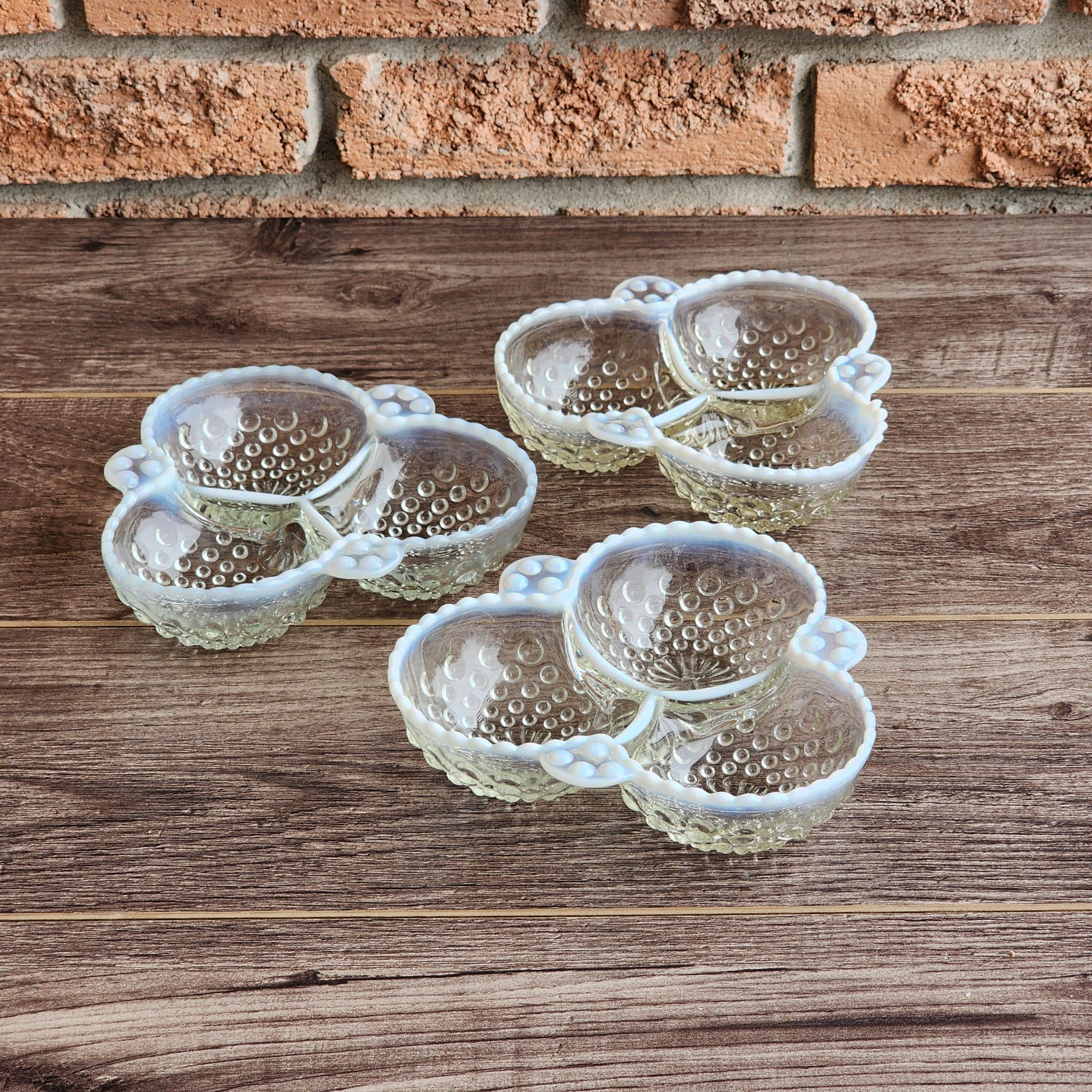 Fenton Style French Opalescent Hobnail Cloverleaf Relish Dishes – Mid Century Set of 3 USA