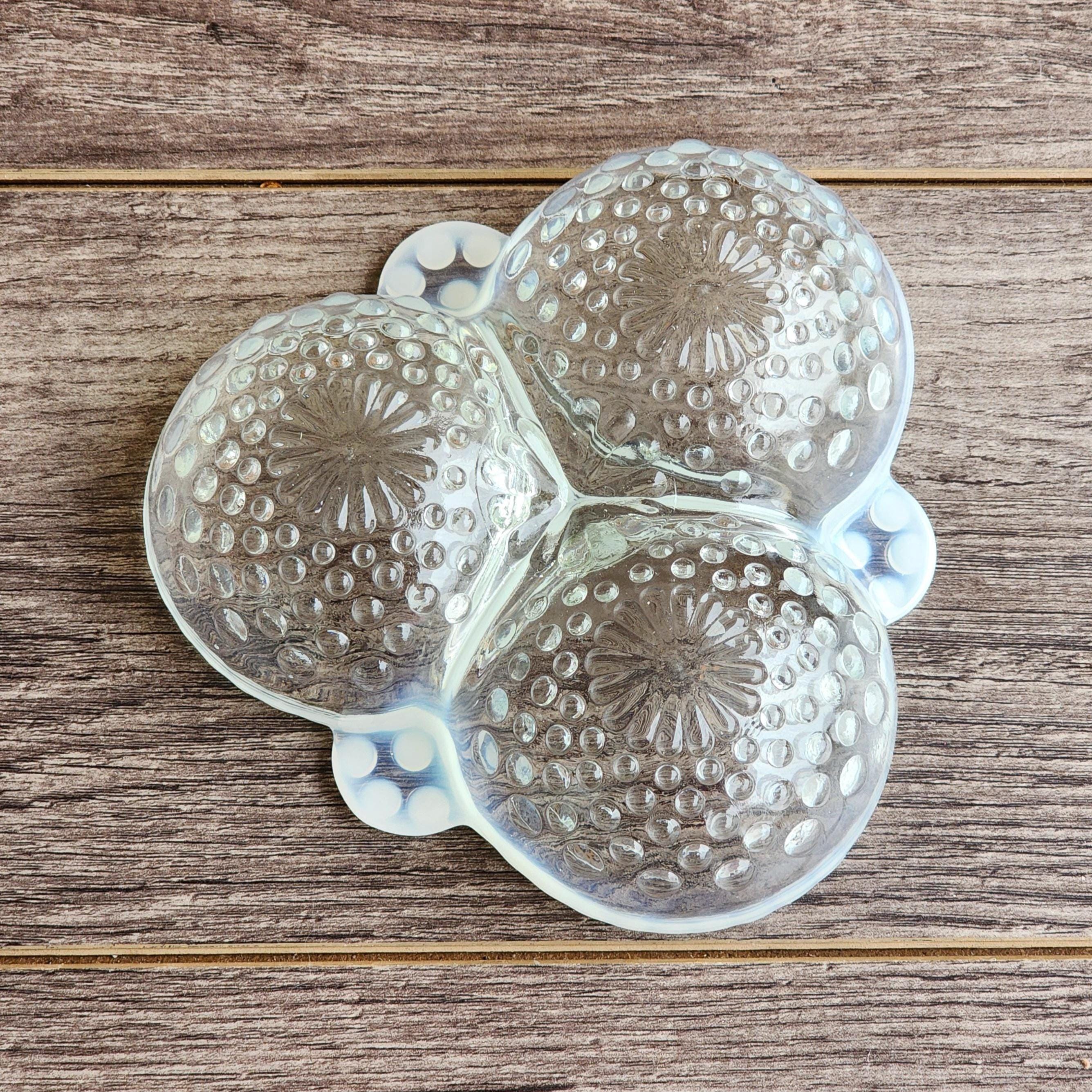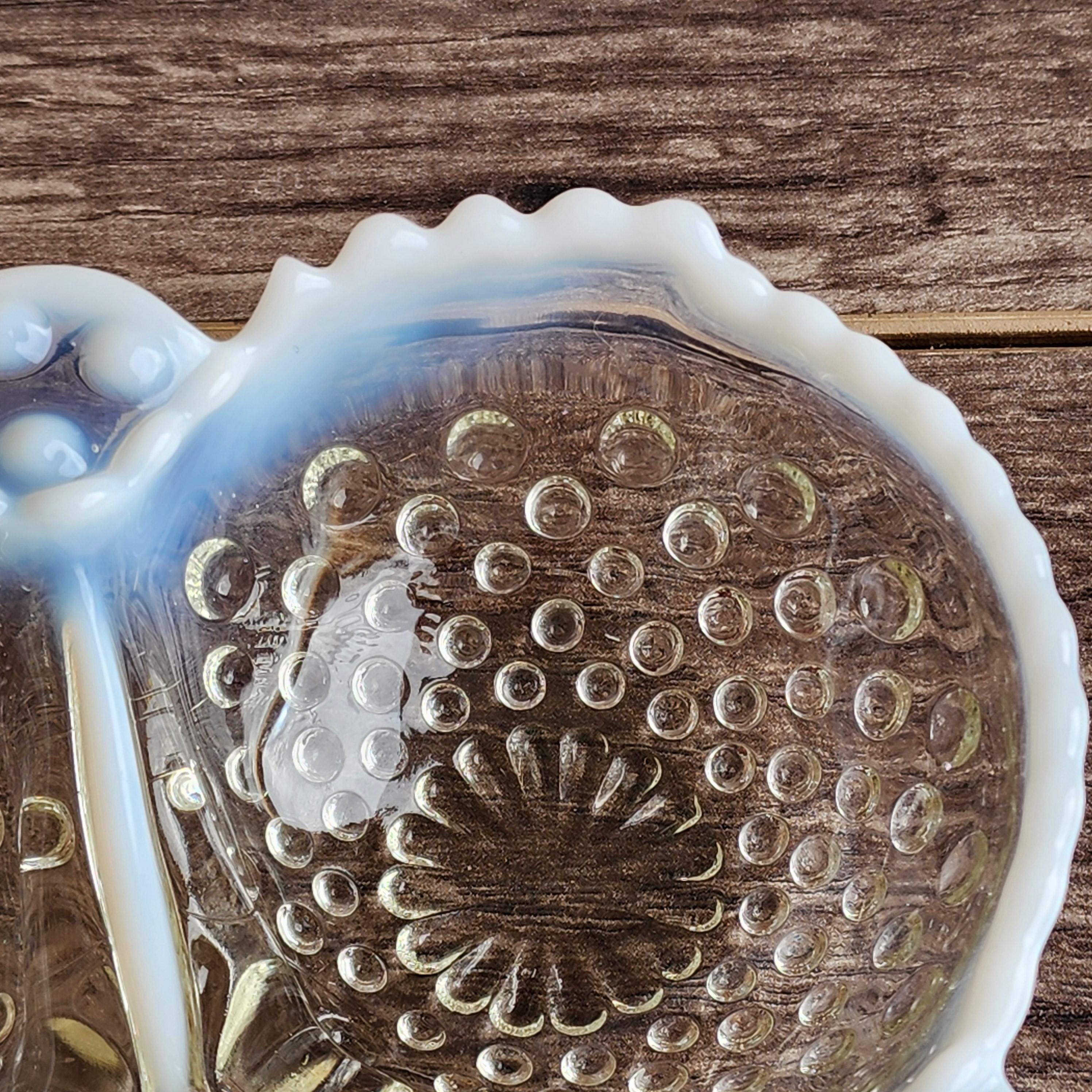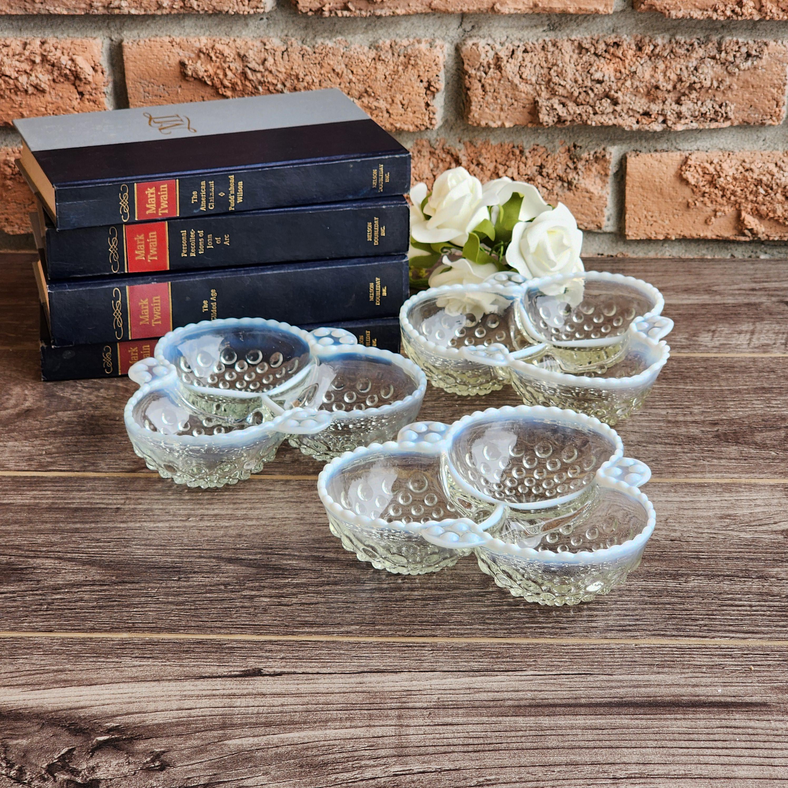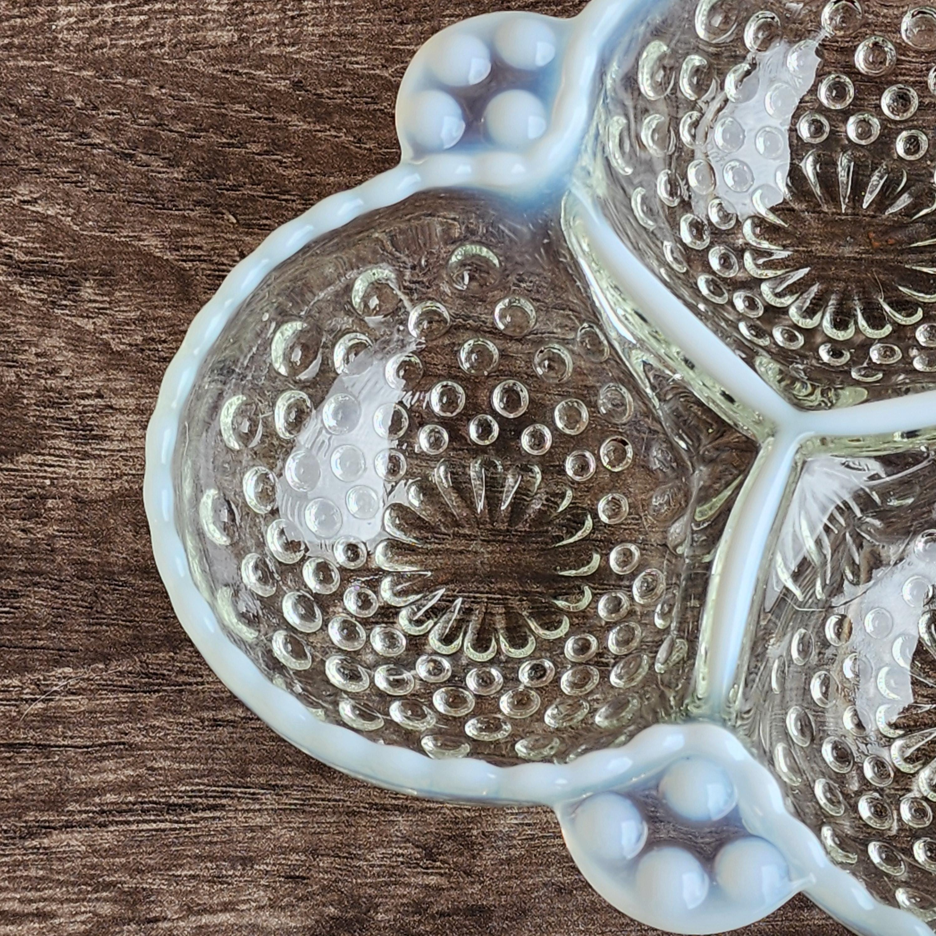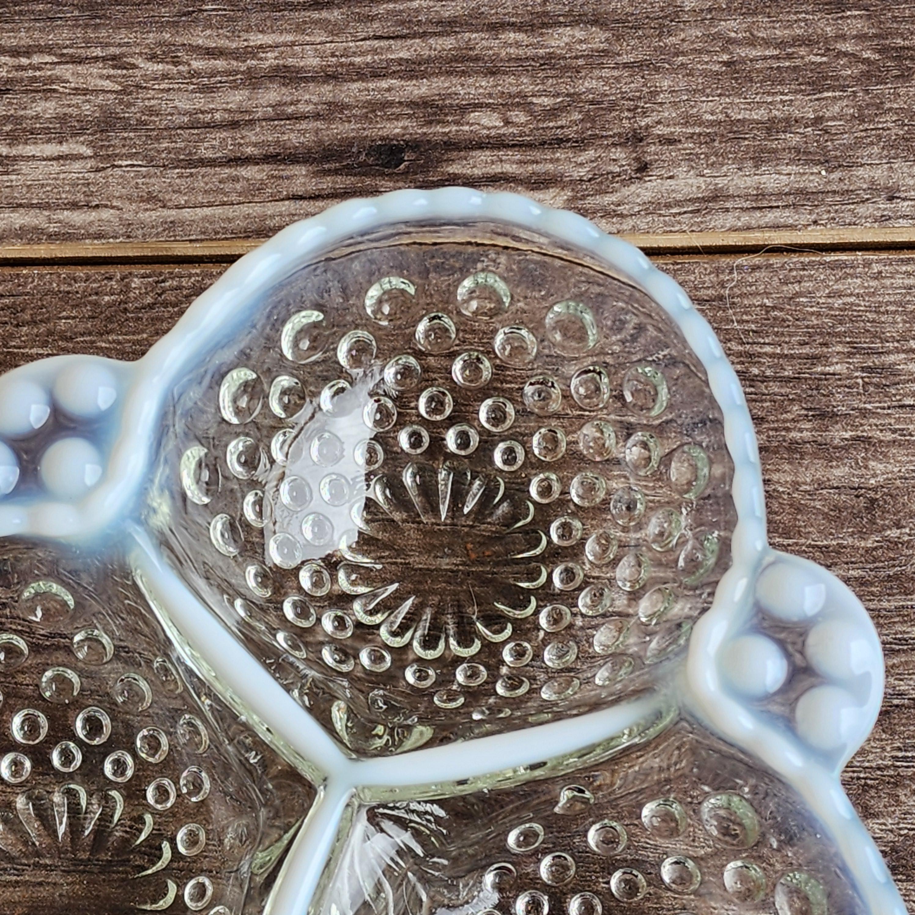 Fenton Style French Opalescent Hobnail Cloverleaf Relish Dishes – Mid Century Set of 3 USA