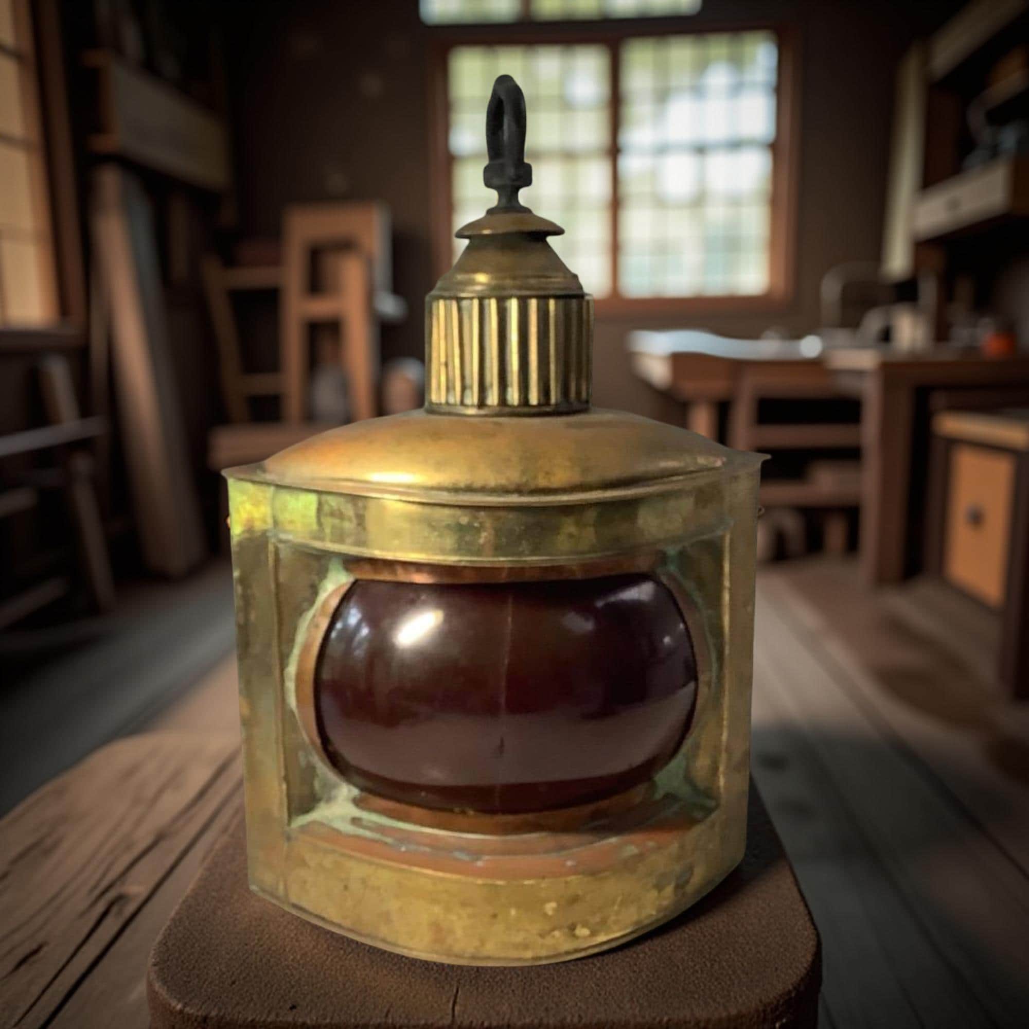 Antique Brass Red Ship Lantern – Maritime Port Light Nautical Decor