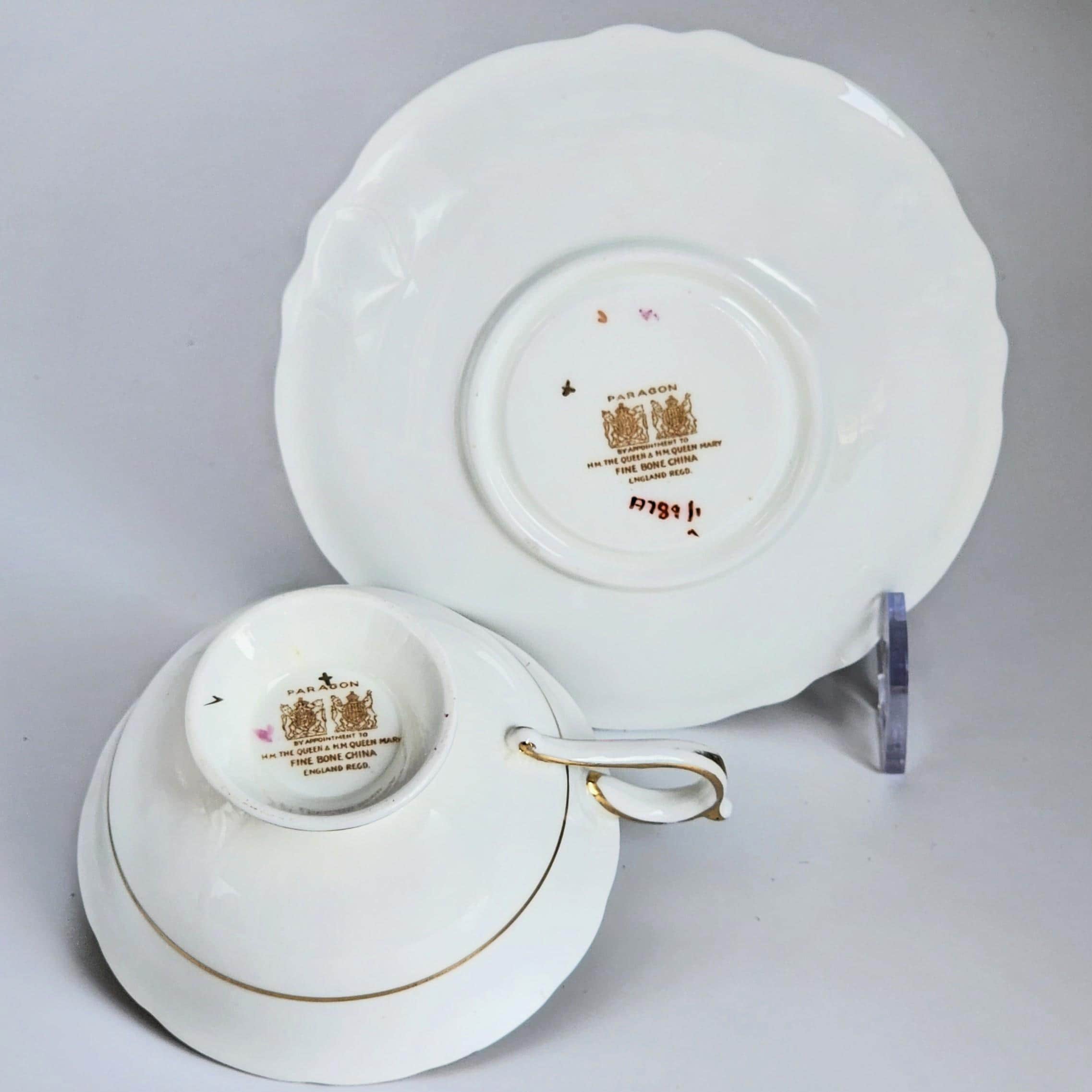 Mid-century Paragon bone china teacup and saucer — ideal for shabby chic tea tables, cottage-style displays, or elegant vintage gatherings.