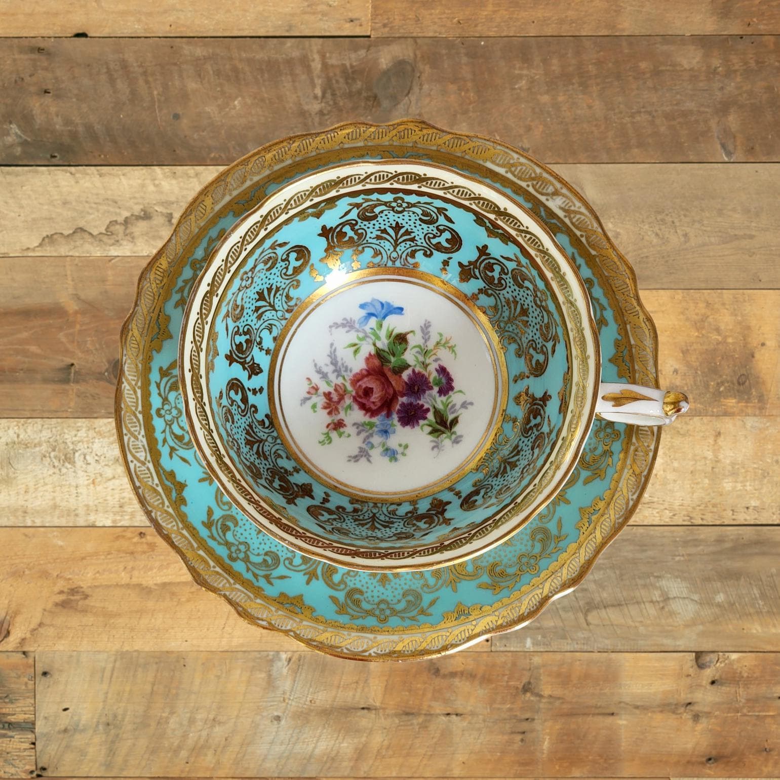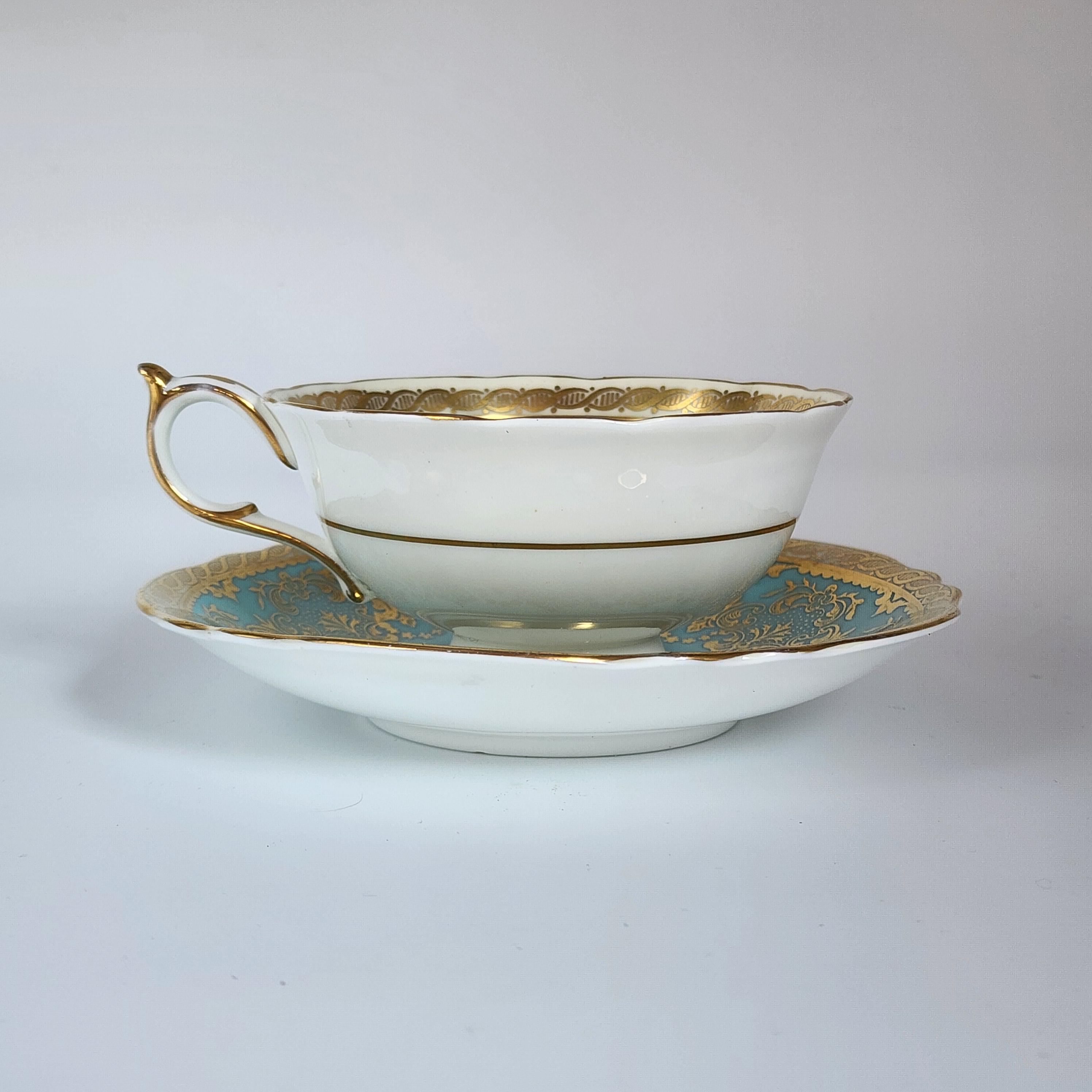 Paragon Turquoise and Gold Cup and Saucer – Mid Century Fine Bone China England