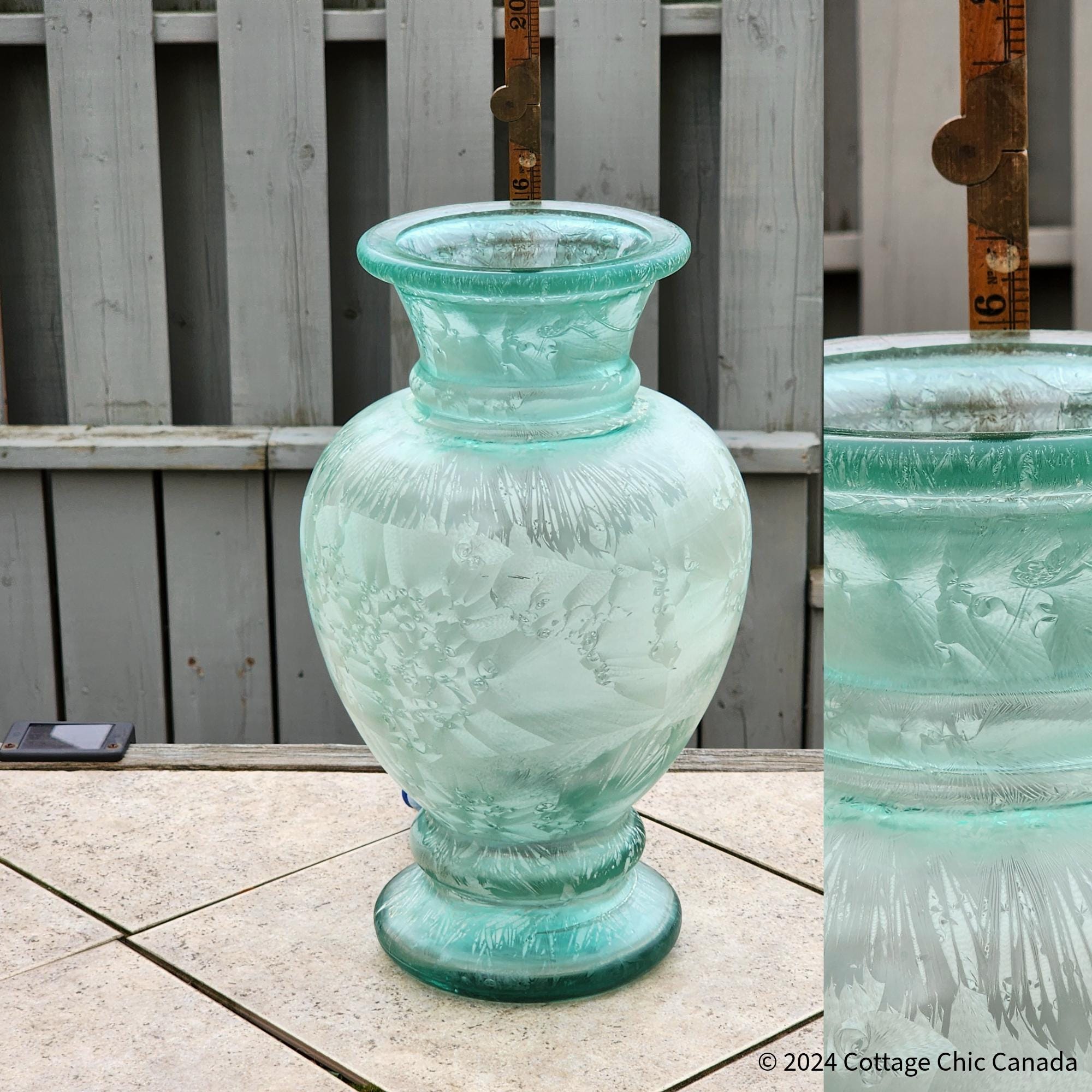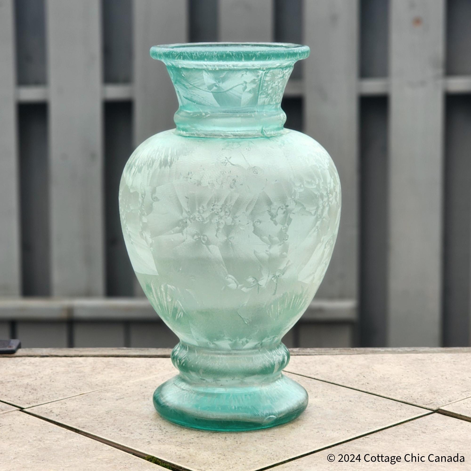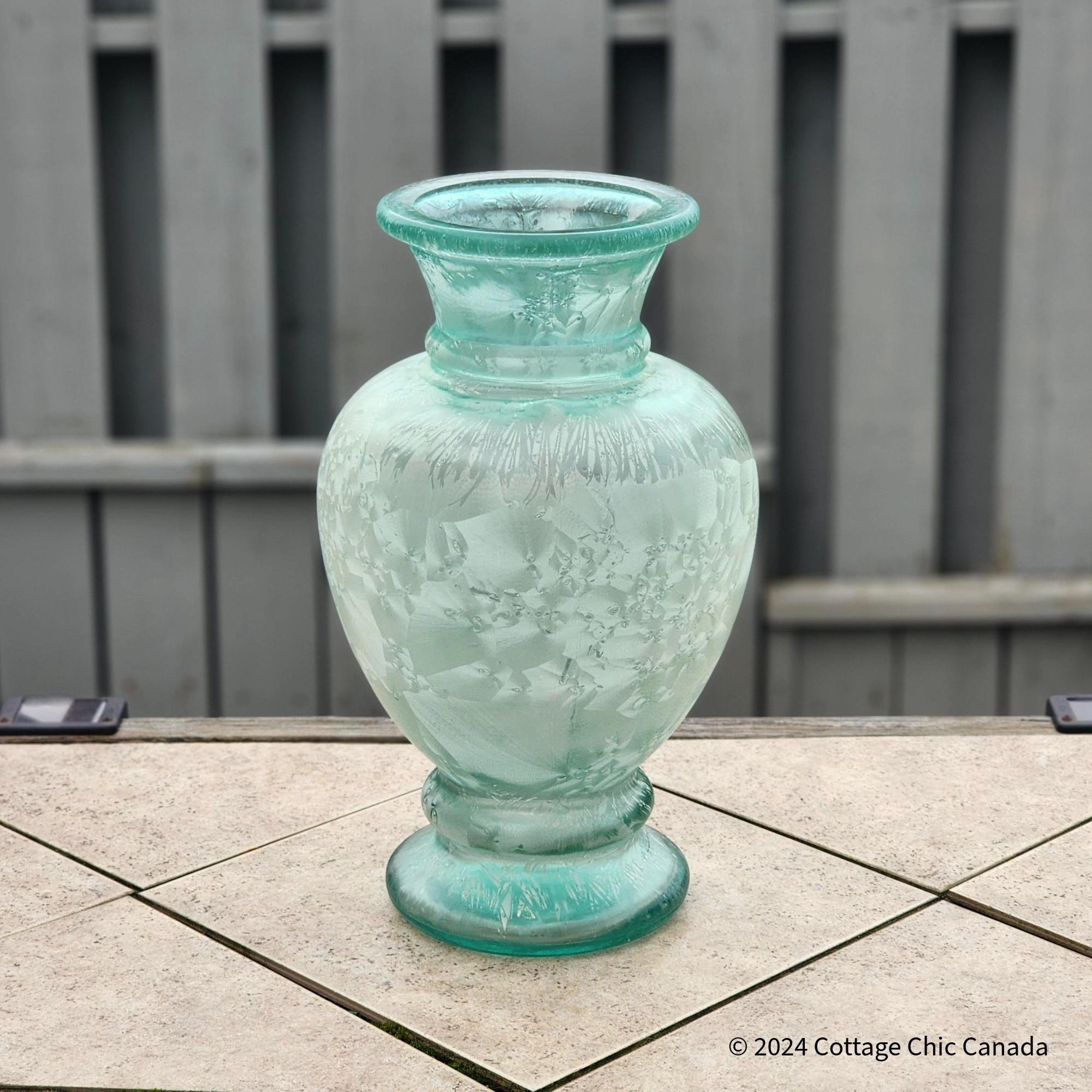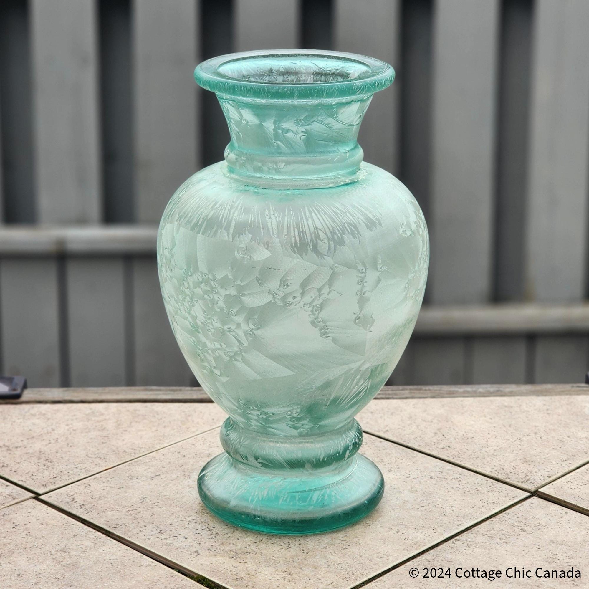 Large Recycled Art Glass Vase – Handblown Frosted Seafoam Green Coastal Decor Spain 40.6 cm