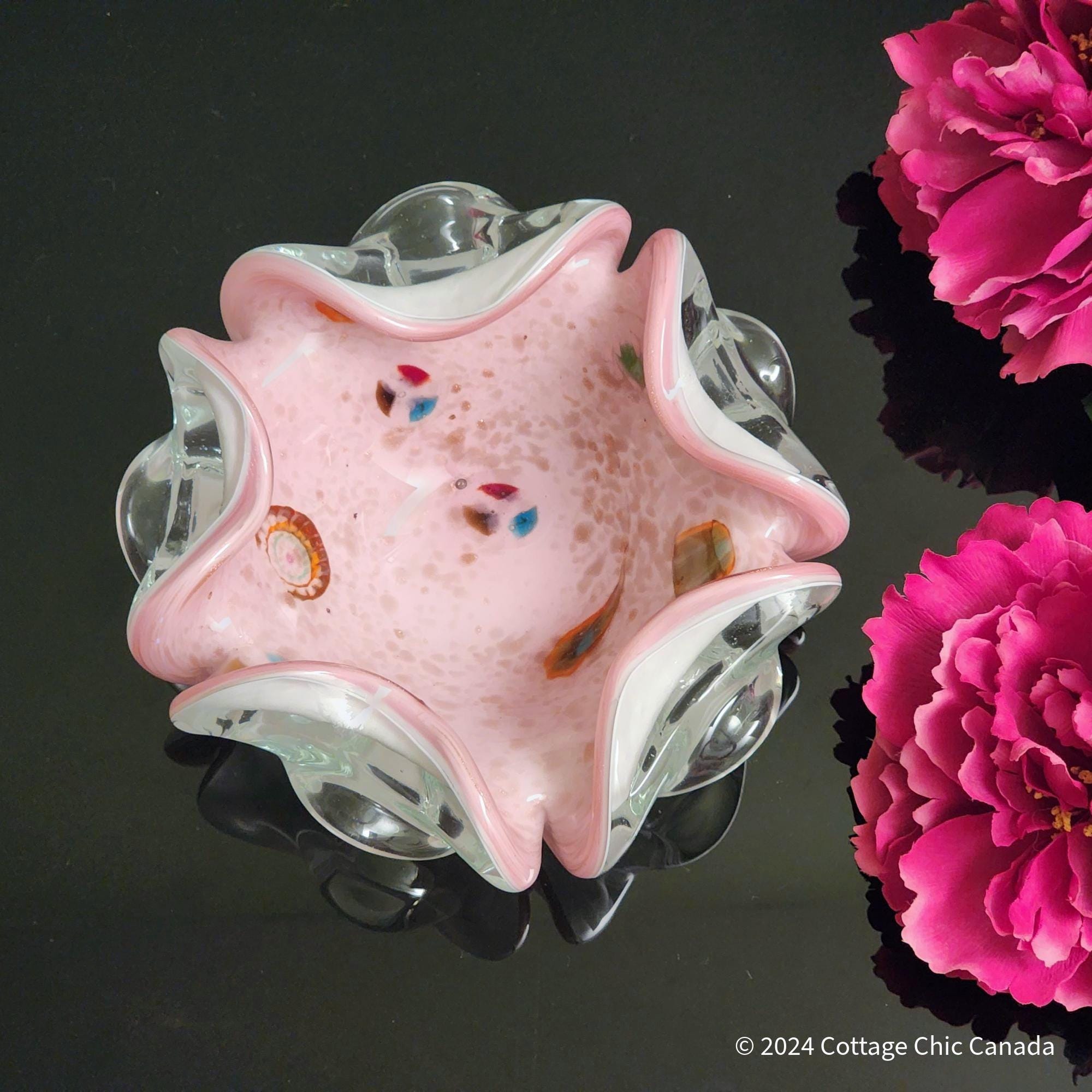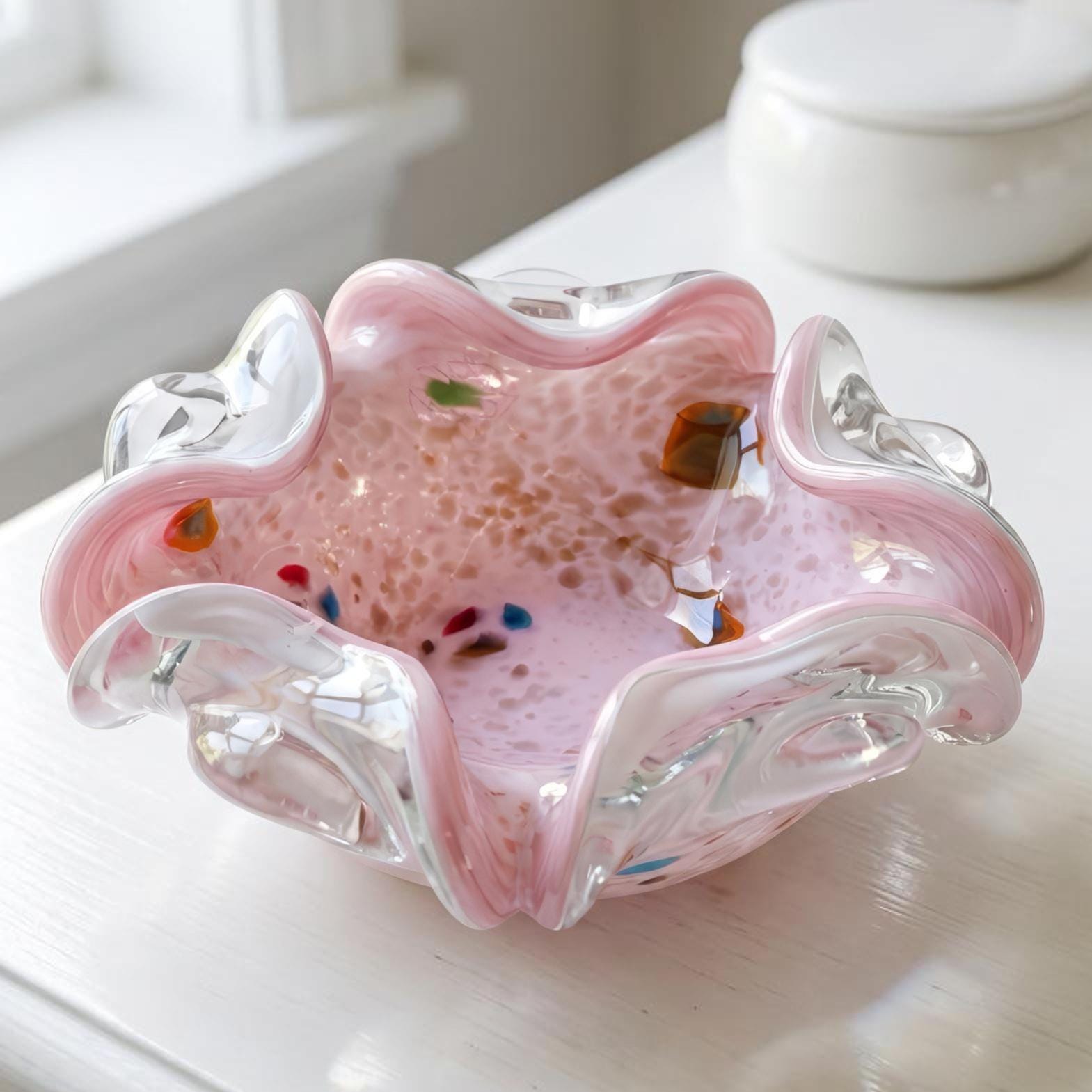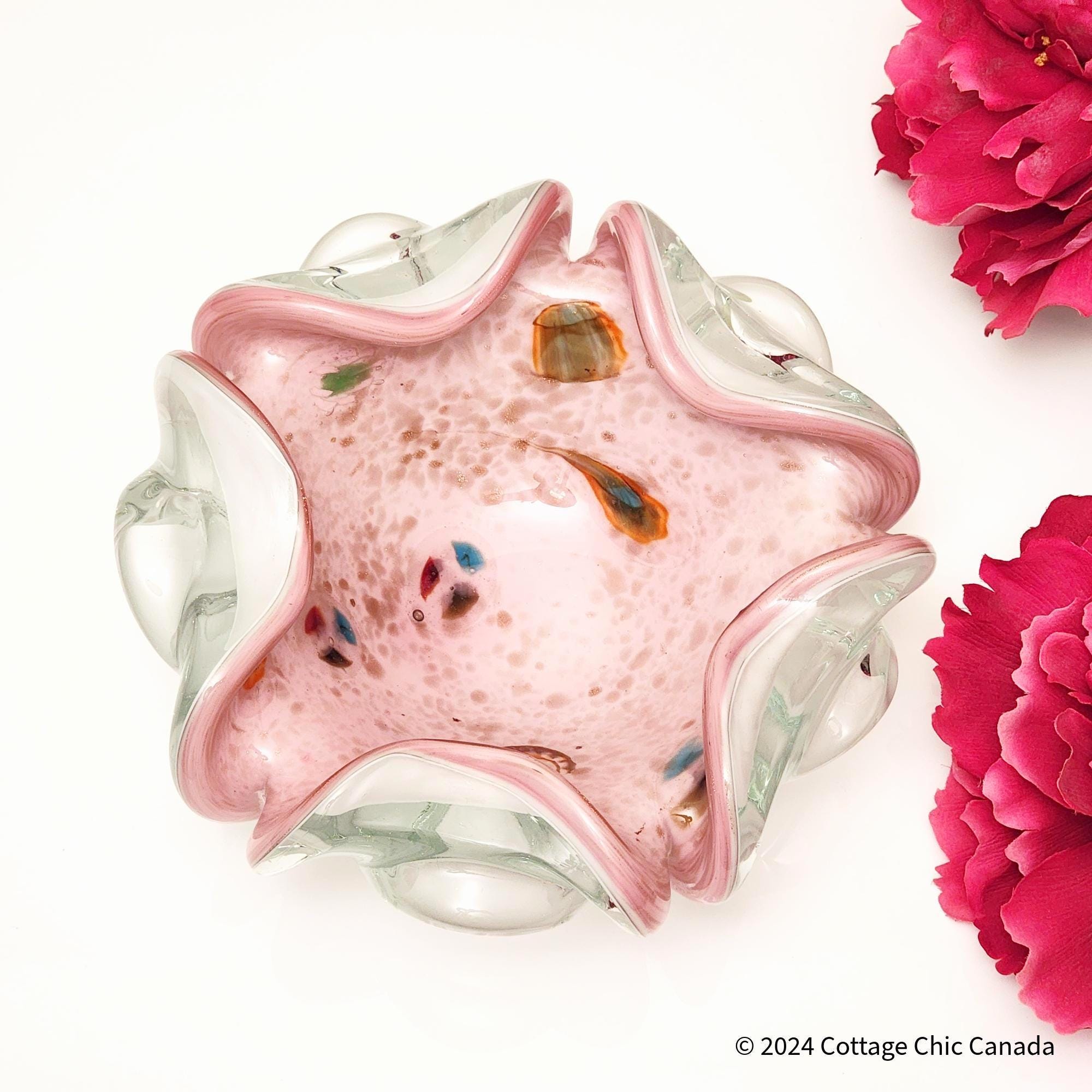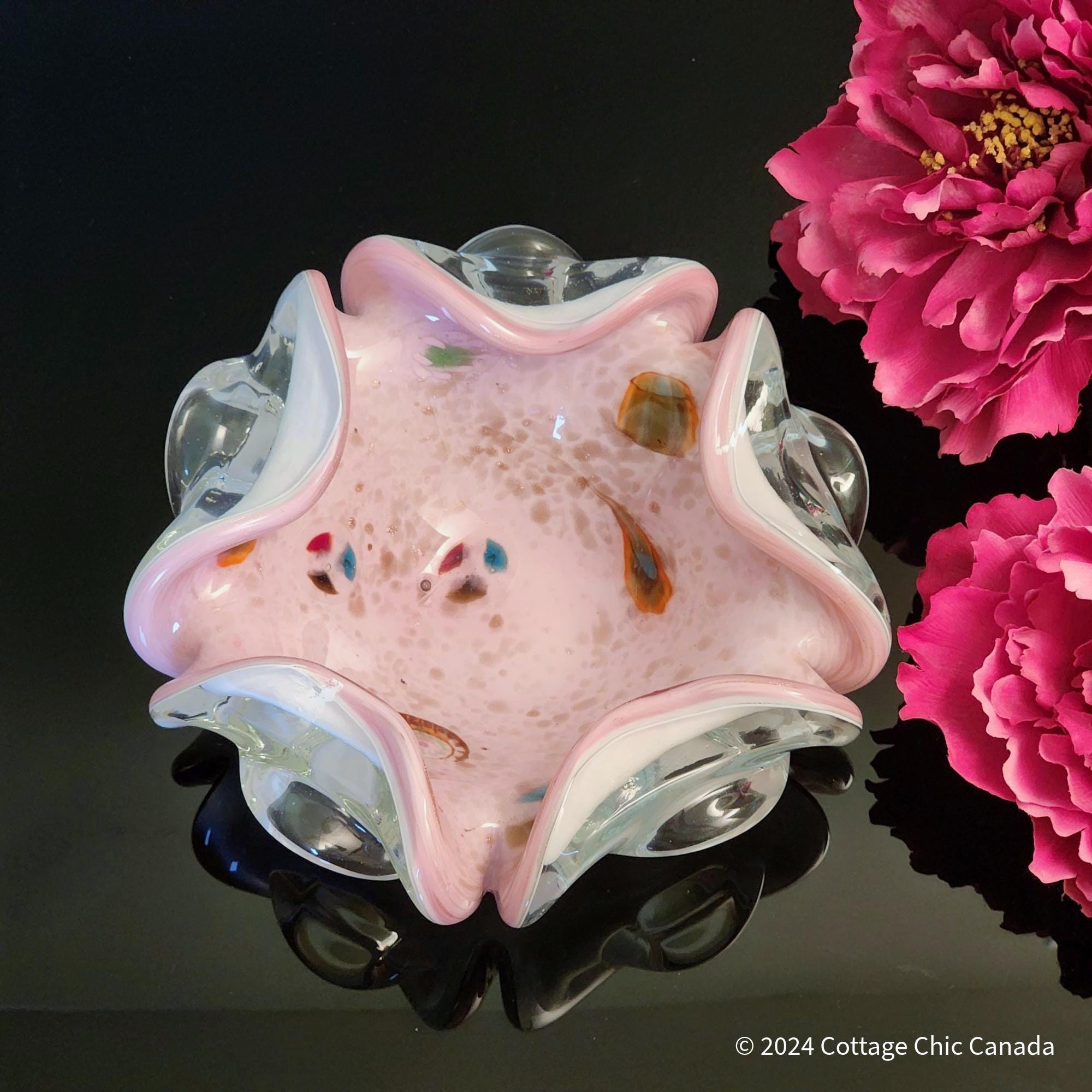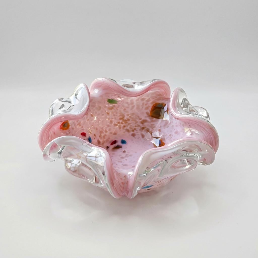 Tutti Frutti Pastel Pink Vintage Murano Spatter Glass Bowl – Attributed to Dino Martens Italy