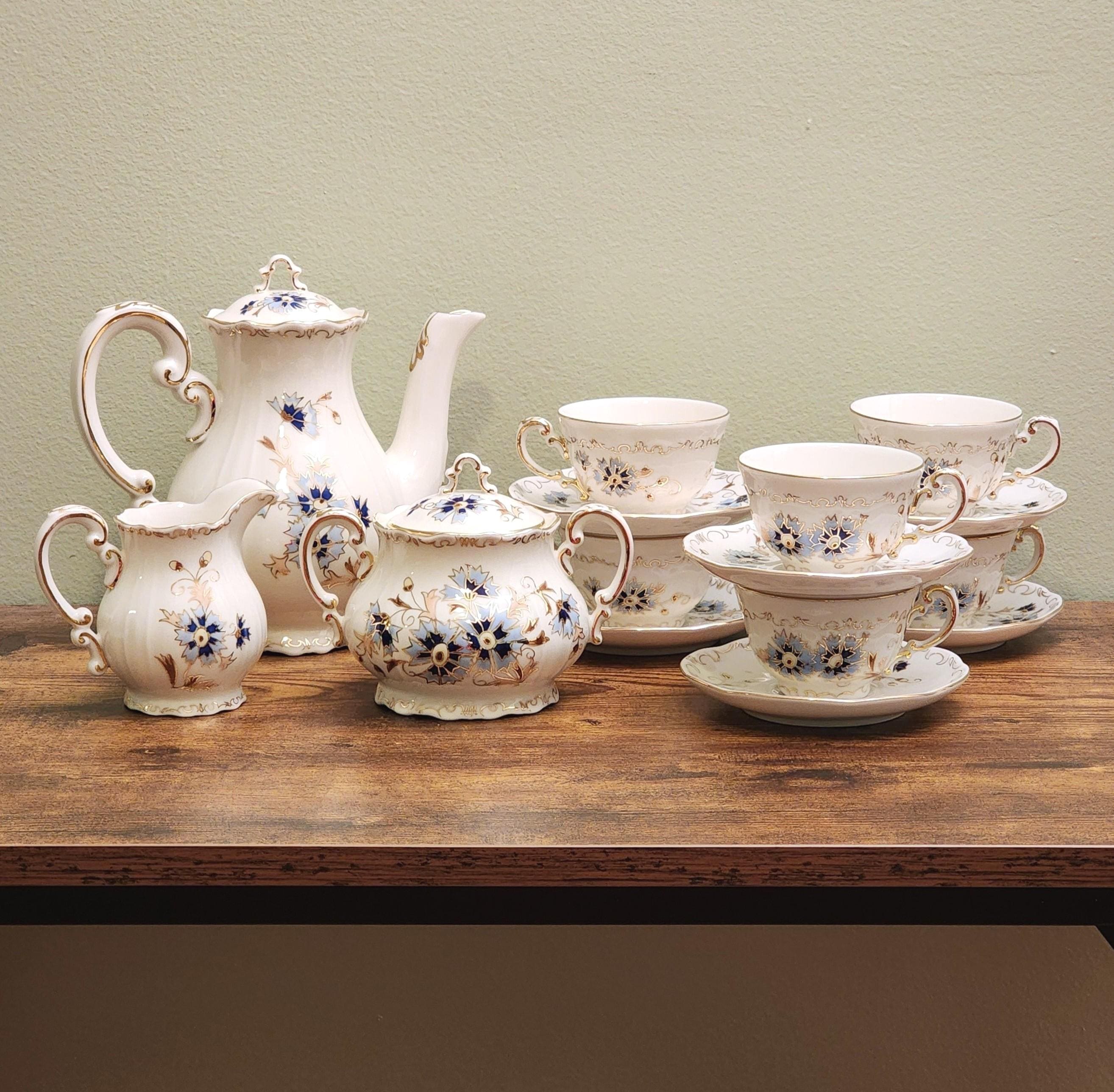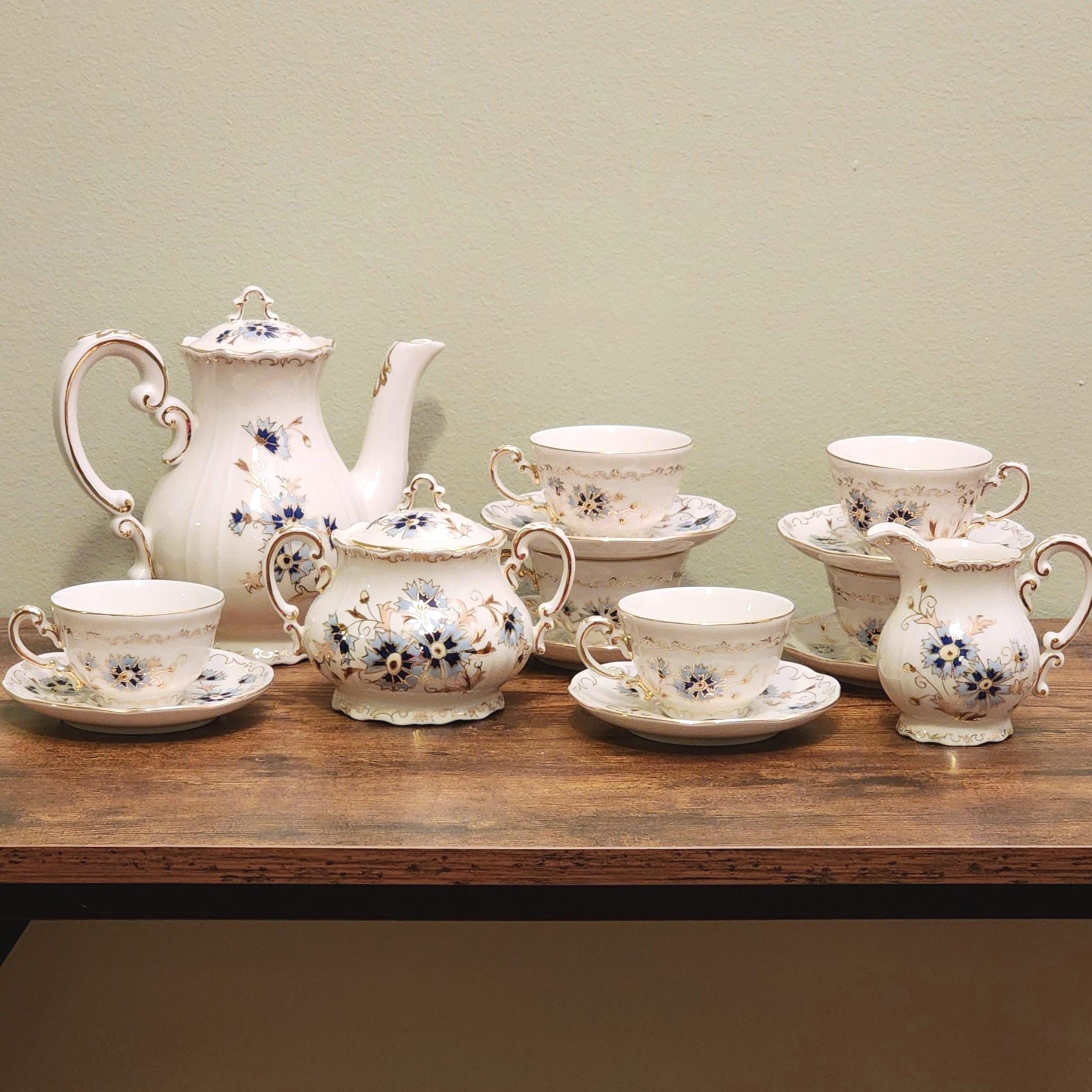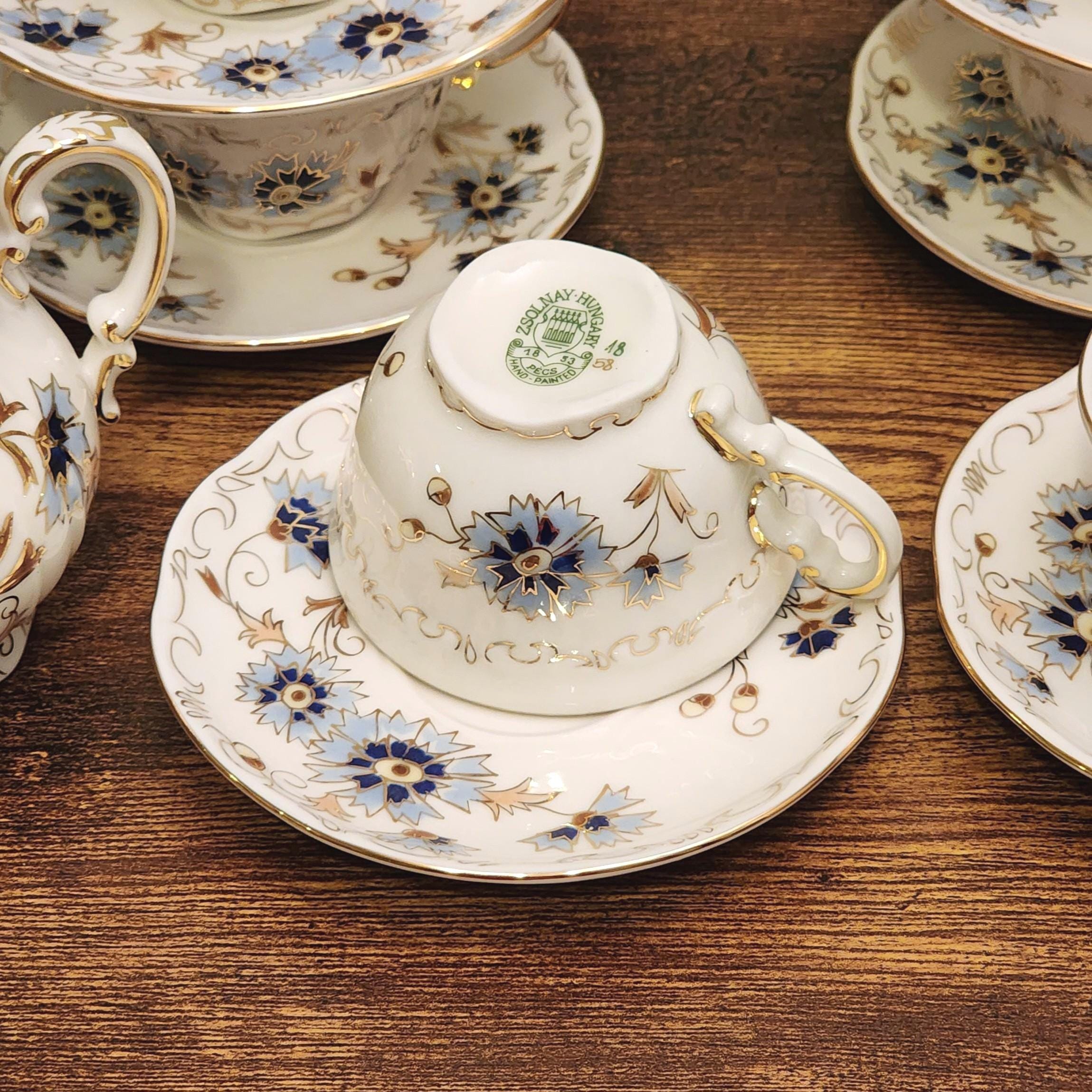 Zsolnay Demitasse Coffee Service for 6 – Hand Painted Floral Porcelain Hungary