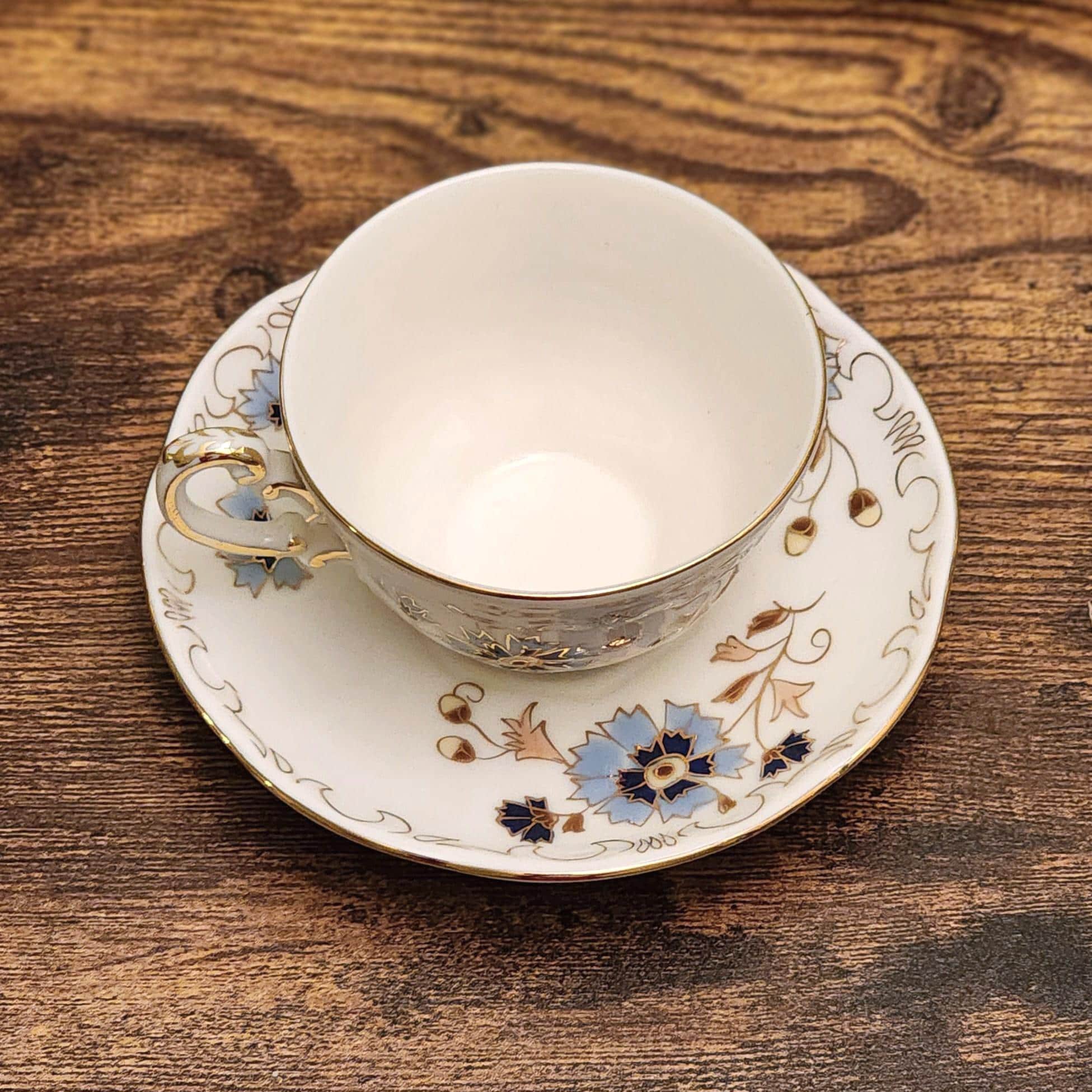 A vintage hand painted porcelain demitasse service by Zsolnay Hungary, designed for intimate after dinner coffee and refined small format entertaining. This coordinated set reflects the studio’s mid century craftsmanship, combining delicate floral decoration, balanced proportions, and elegant gilt accents.