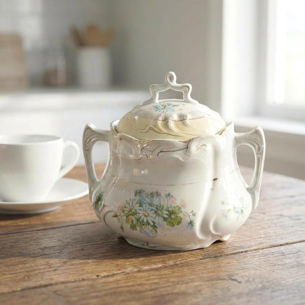 • Decoration: Hand-painted daisies with raised relief and gilt accents