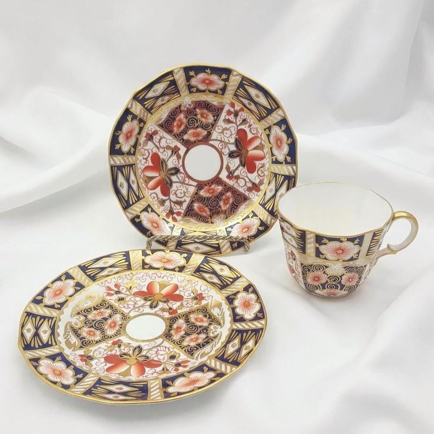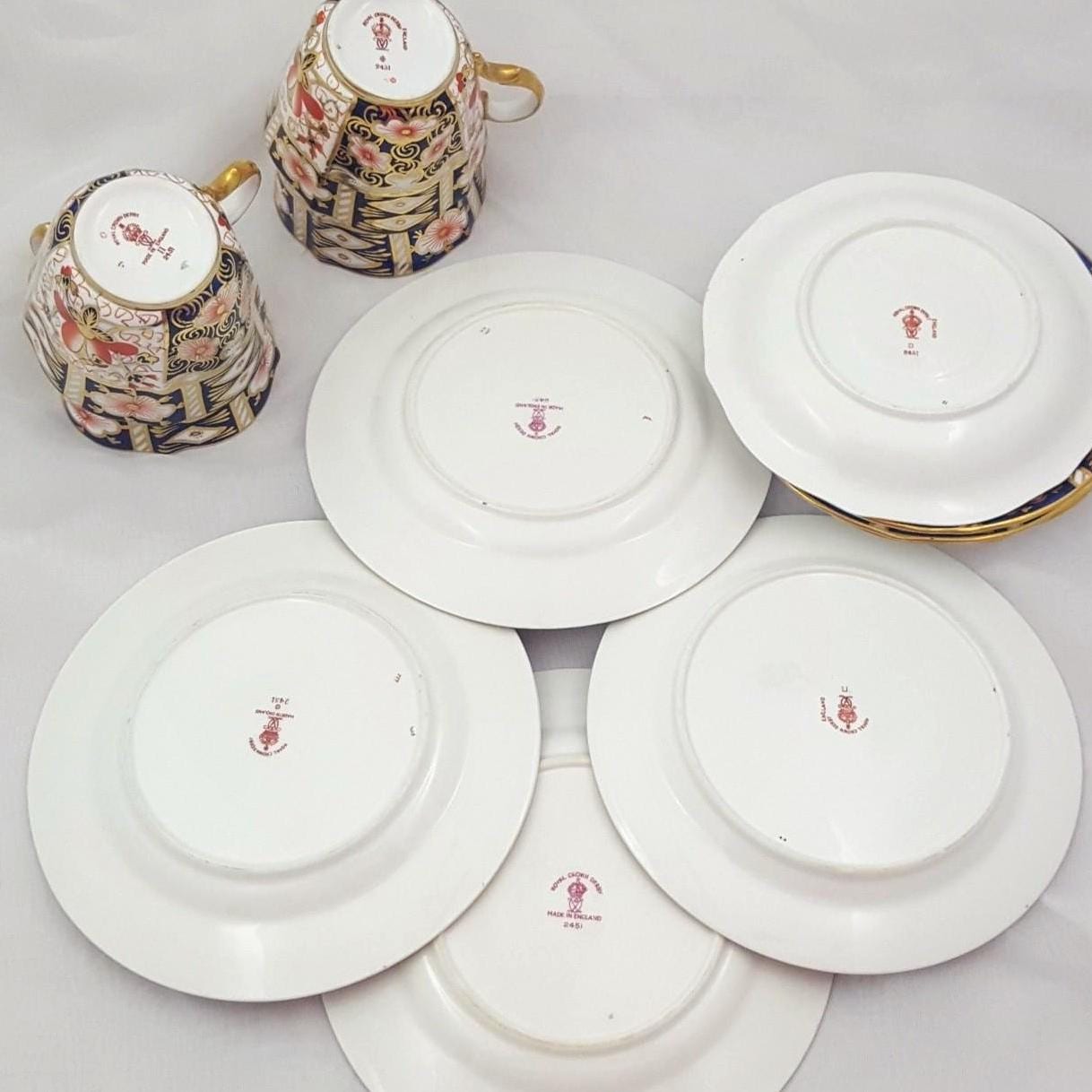 Royal Crown Derby of England has produced fine bone china since the eighteenth century and is internationally recognized for its mastery of the Imari palette. Pattern 2451 remains one of the most iconic and enduring designs, prized for its symmetry and gilding. Early twentieth century backstamps confirm authentic period production.