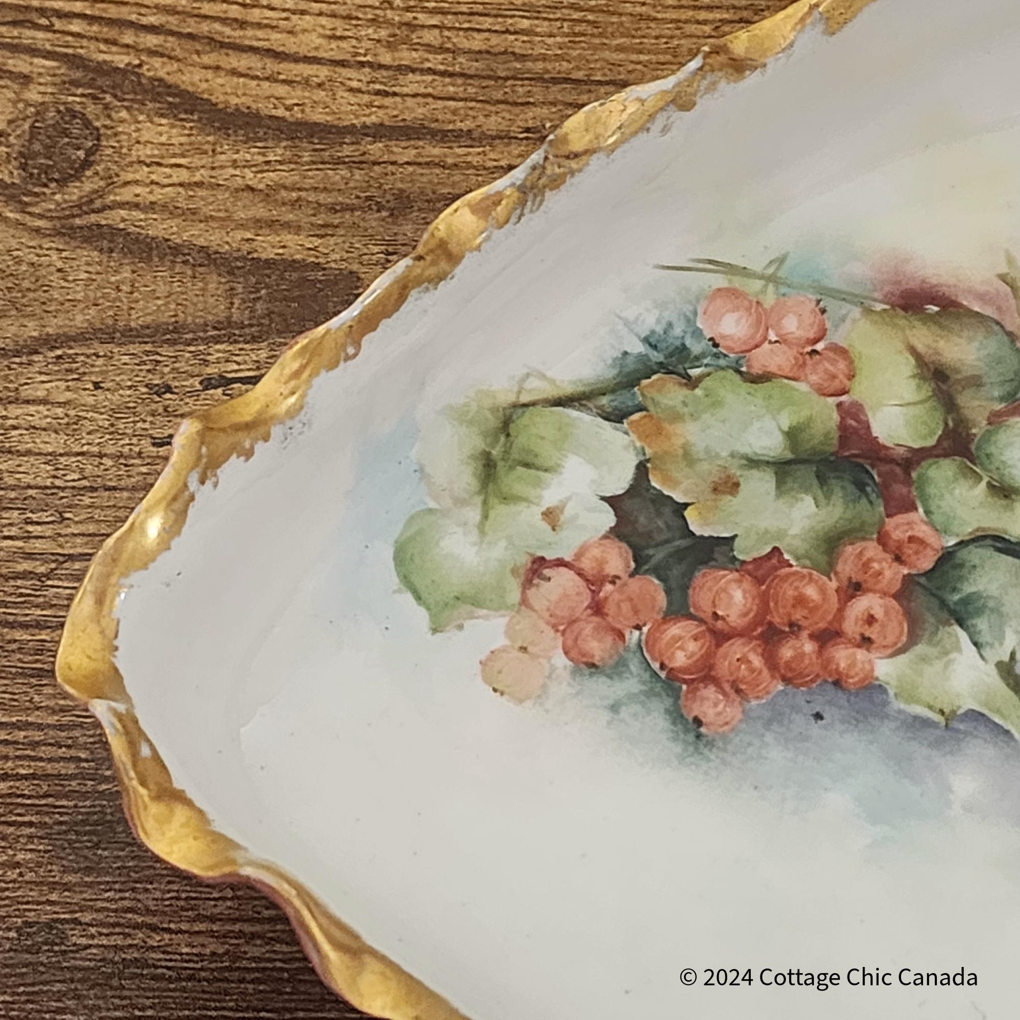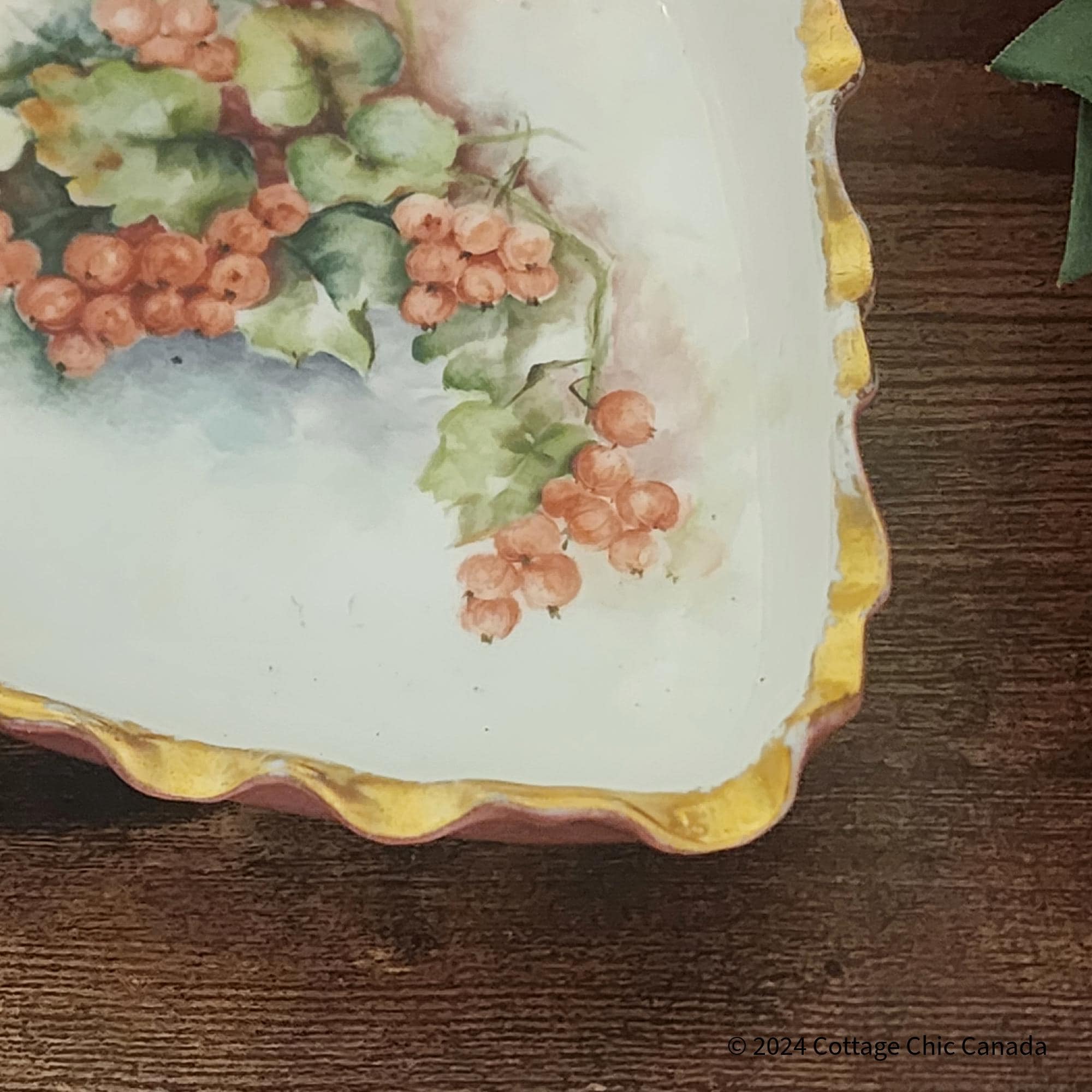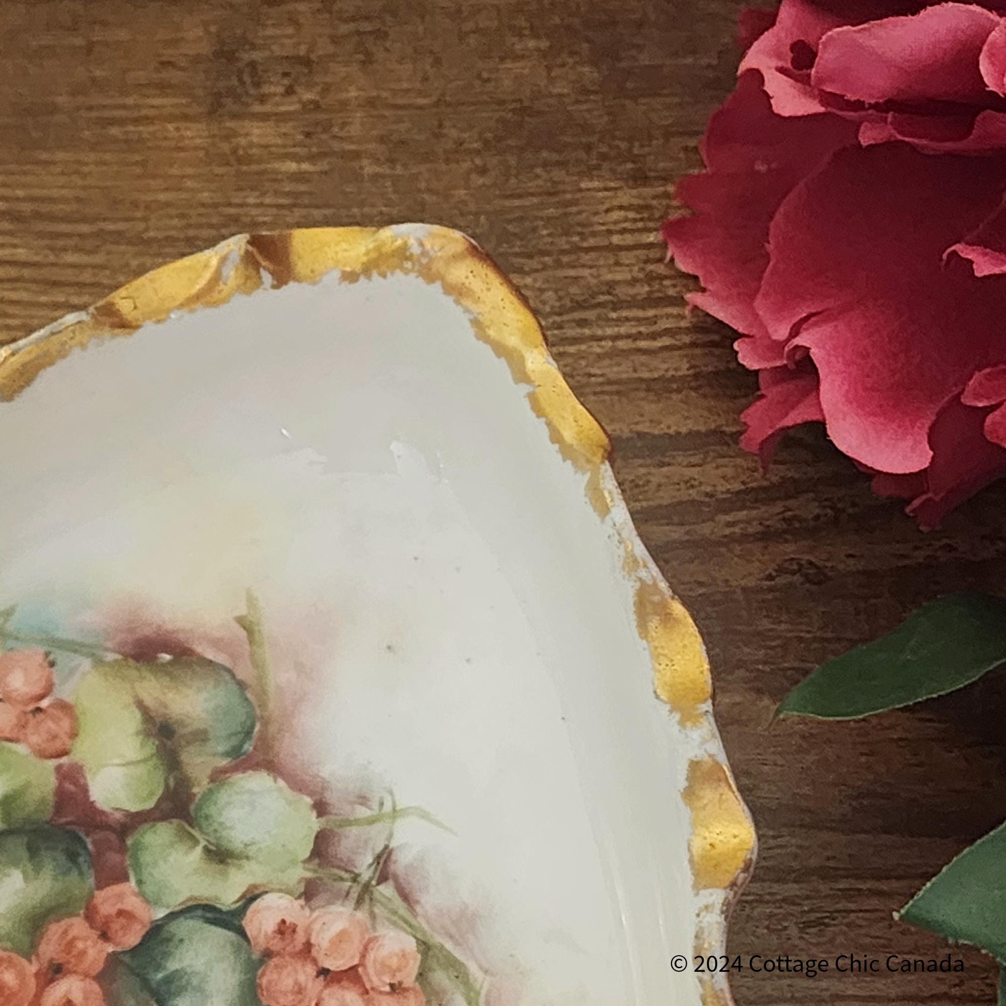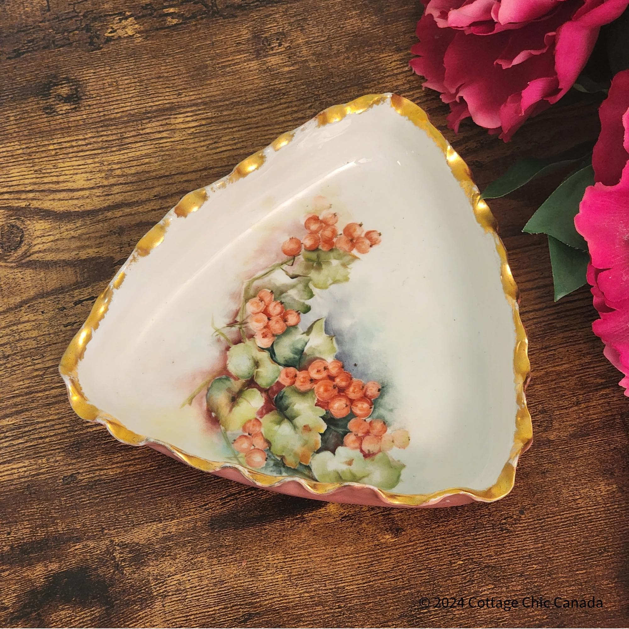Syracuse China O.P.Co. Triangular Dish – Vintage Hand Painted Berries & Gold Trim, 1930s–1940s