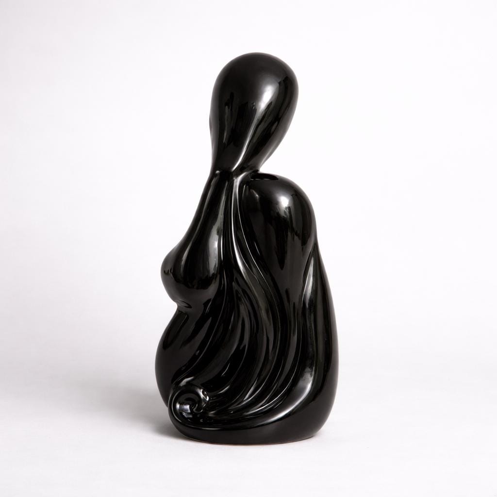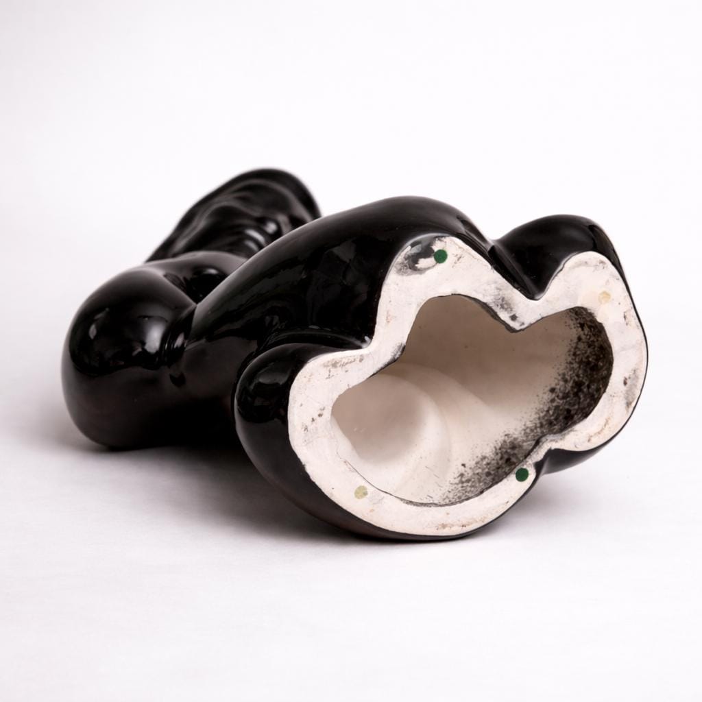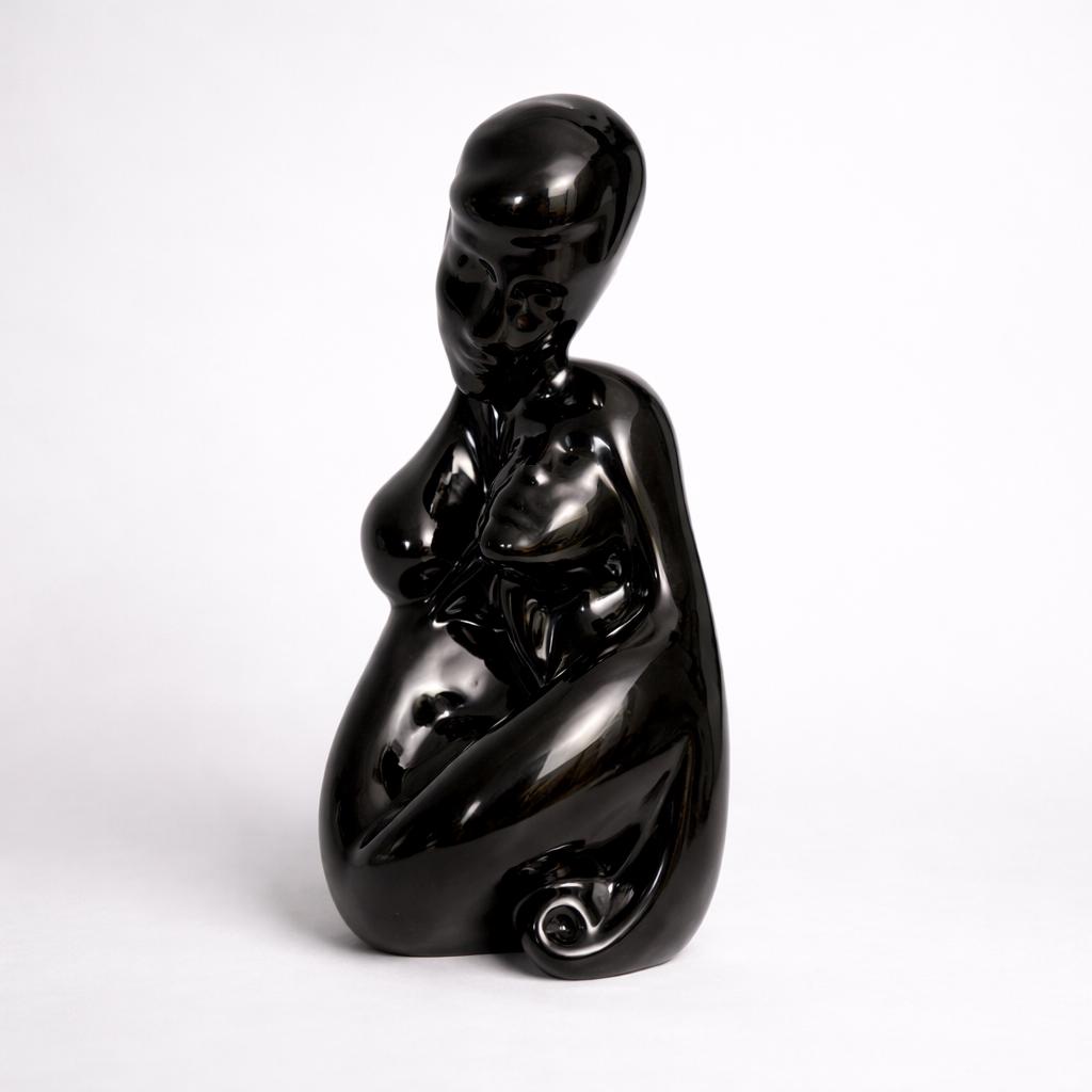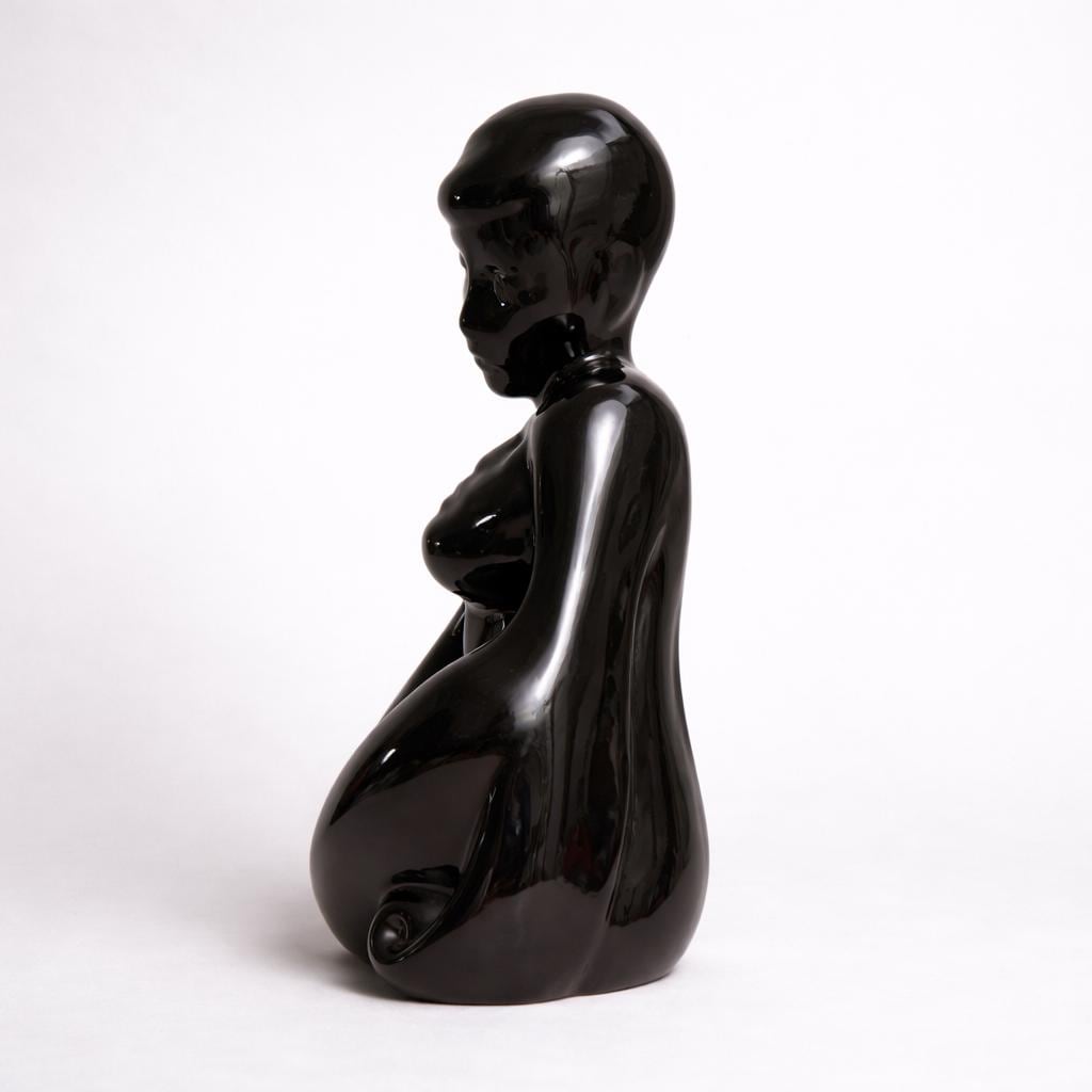 Attributed to Bluz Designs, a California studio active in the 1990s, this sculpture reflects the era’s high gloss monochrome figurative trend. The studio became known for fluid black silhouettes that bridged late modernist restraint with postmodern expressiveness, emphasizing contour and emotional abstraction.