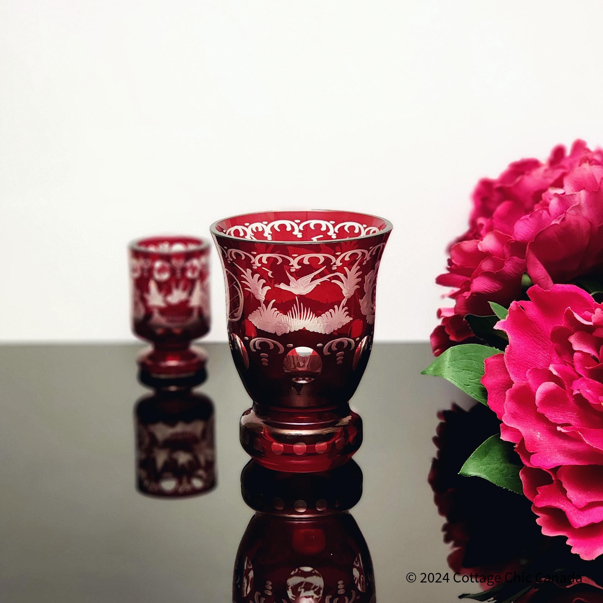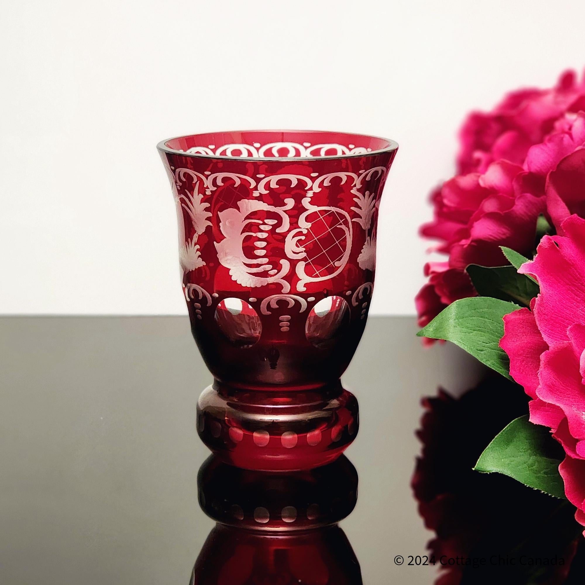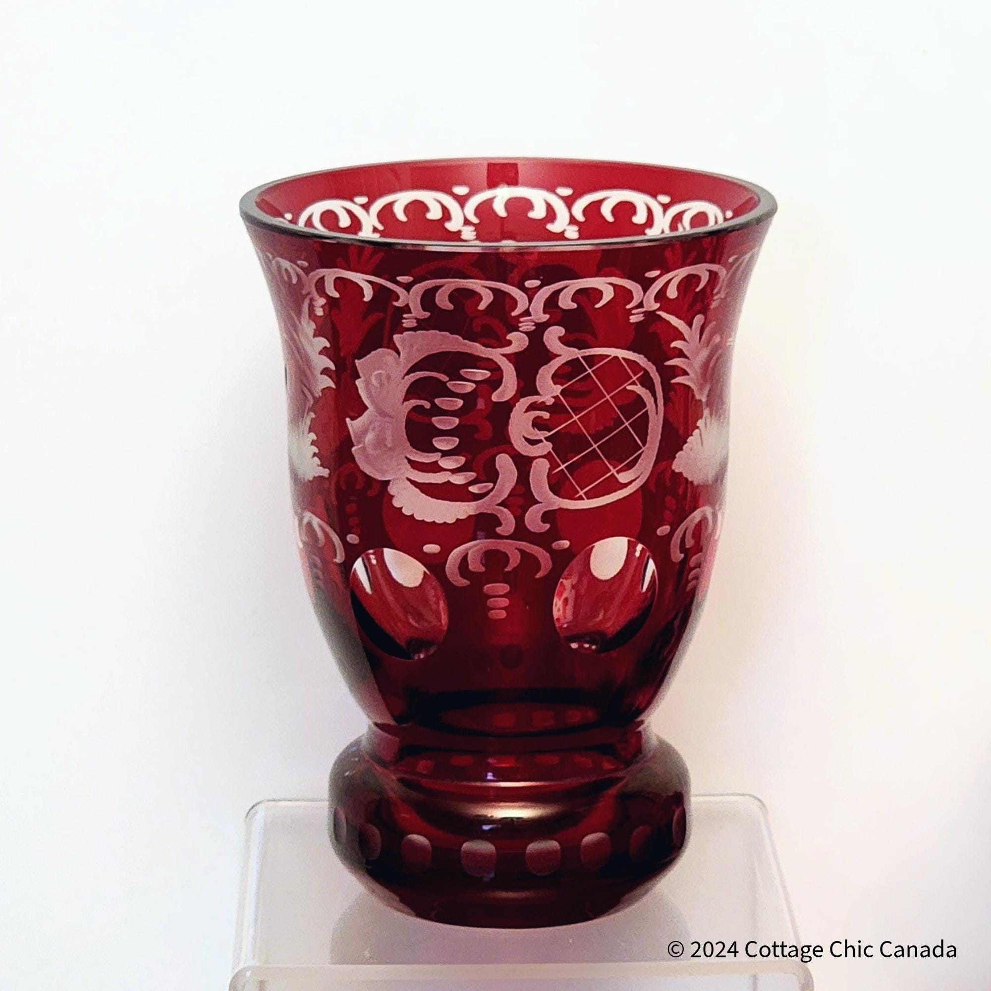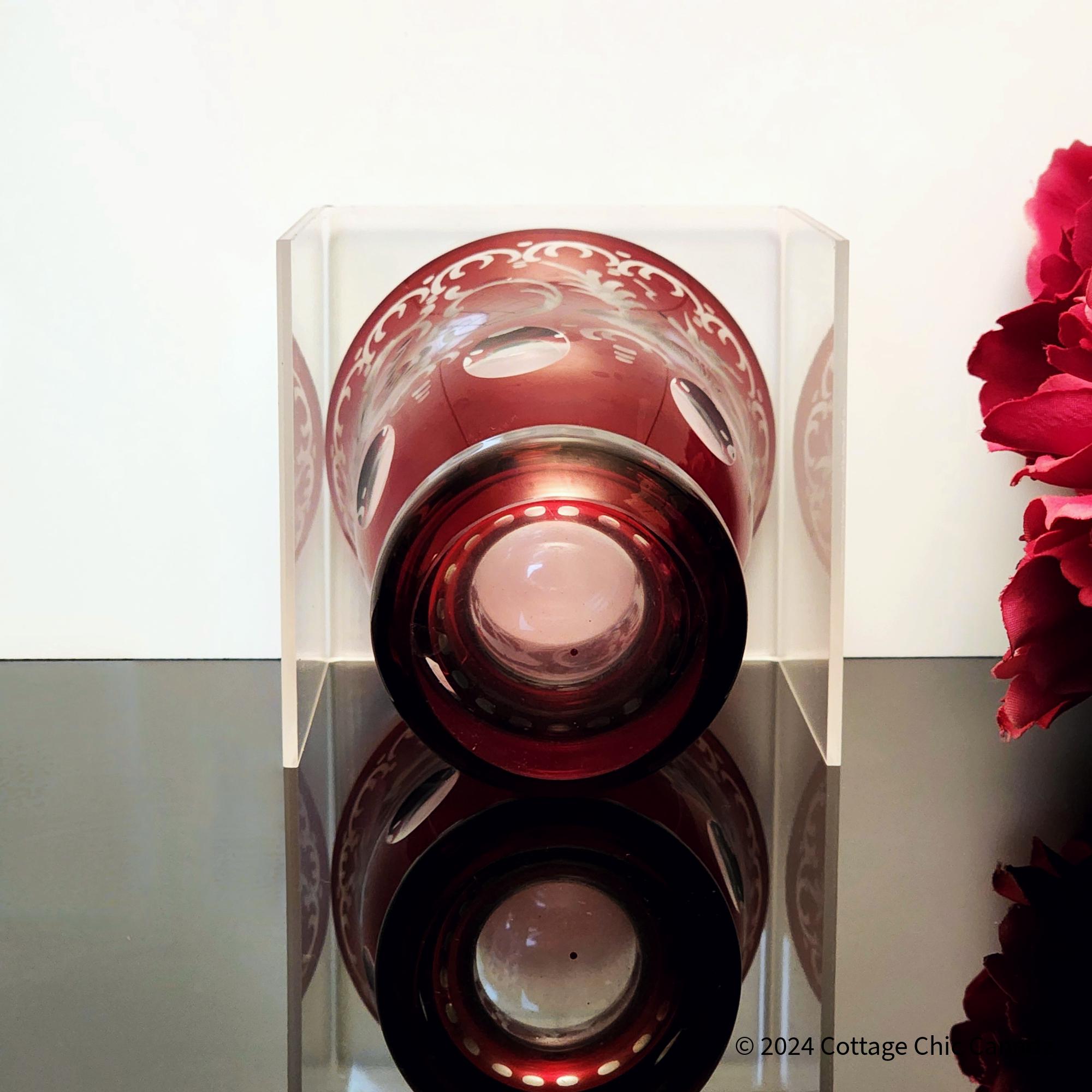 Bohemian Wittwe Kristall Ruby Red Cut-to-Clear Crystal Beaker Vase – Mid Century Czech