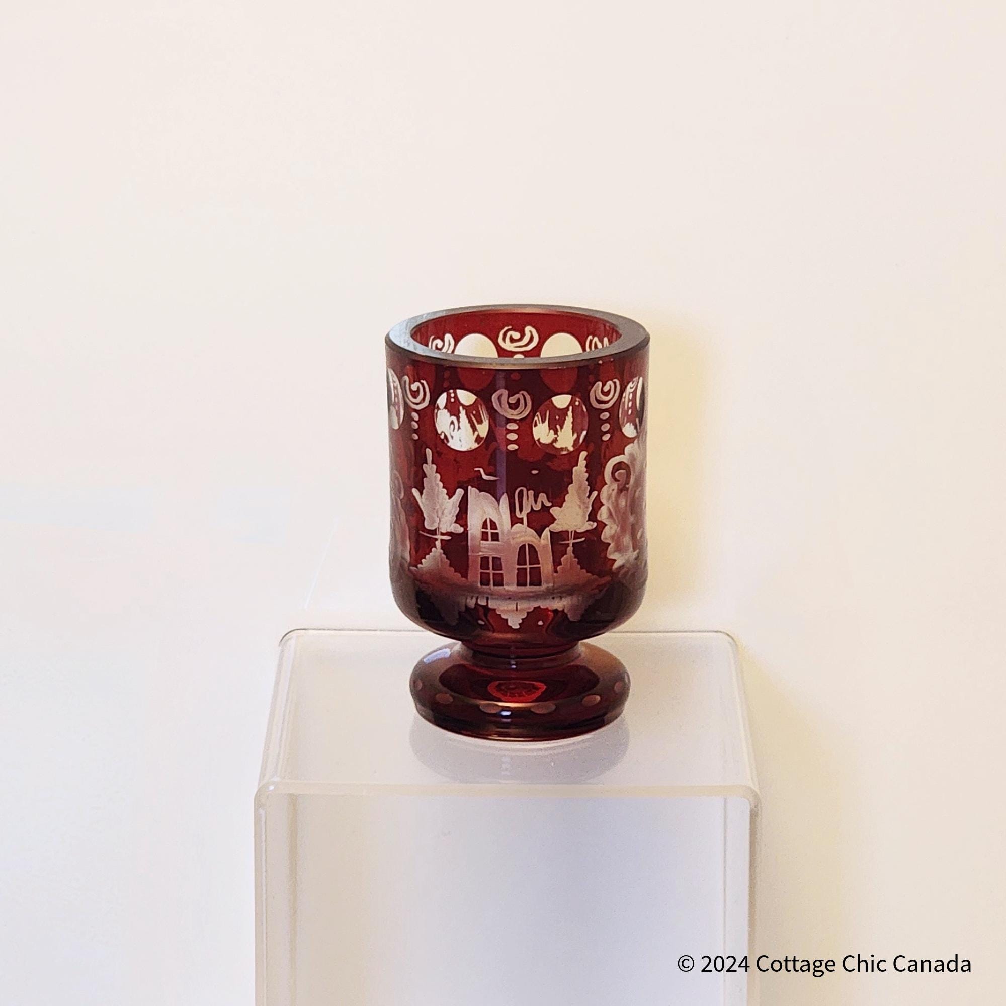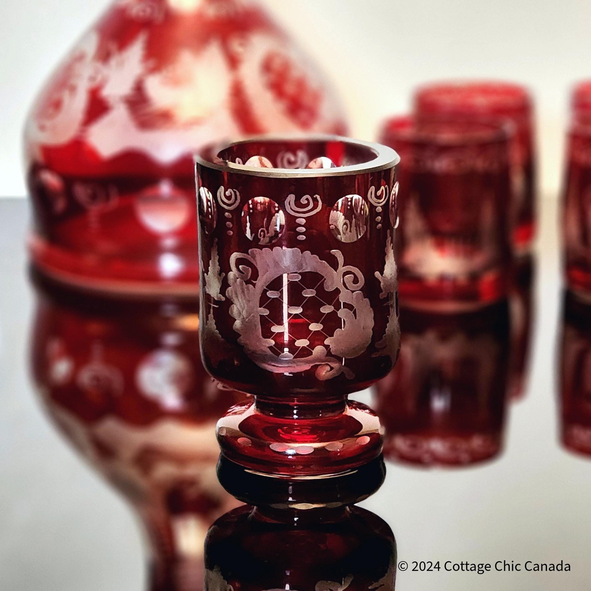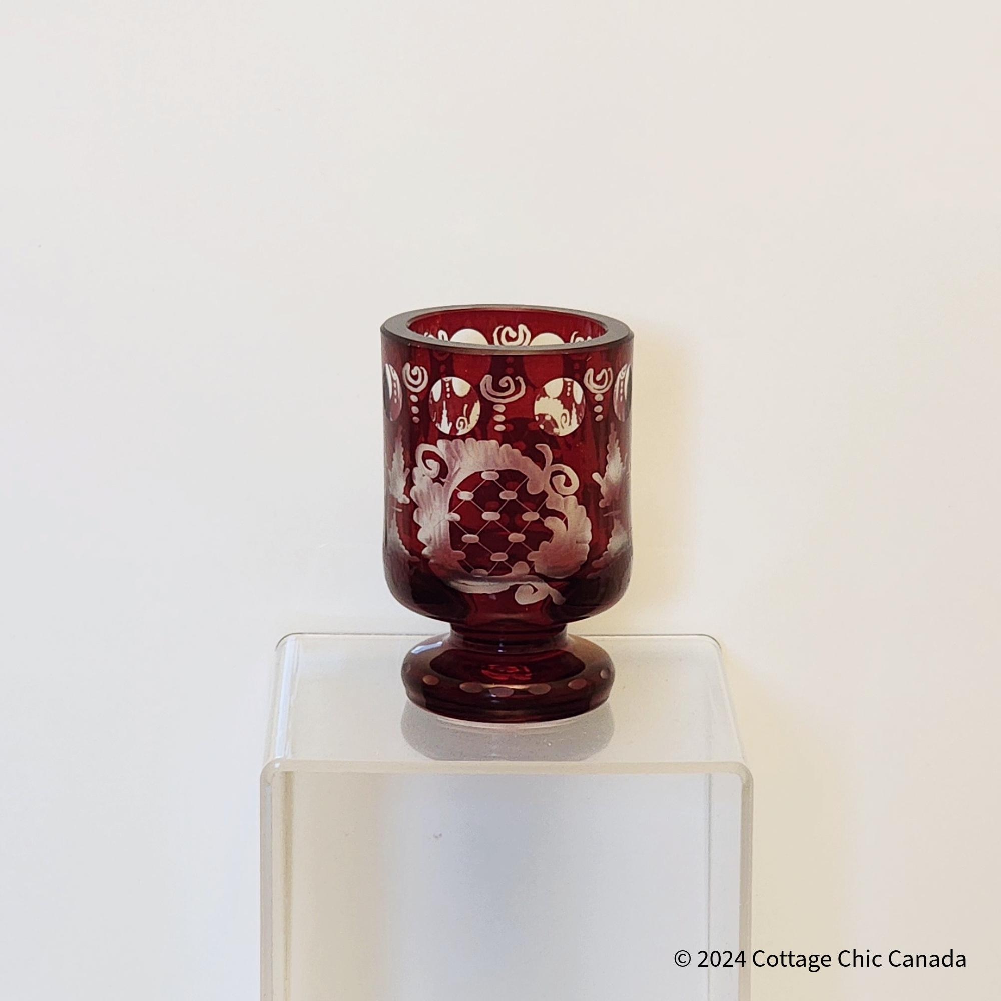 Bohemian Egermann Ruby Red Cut-to-Clear Crystal Cordial Glass – Vintage Mid Century Czech
