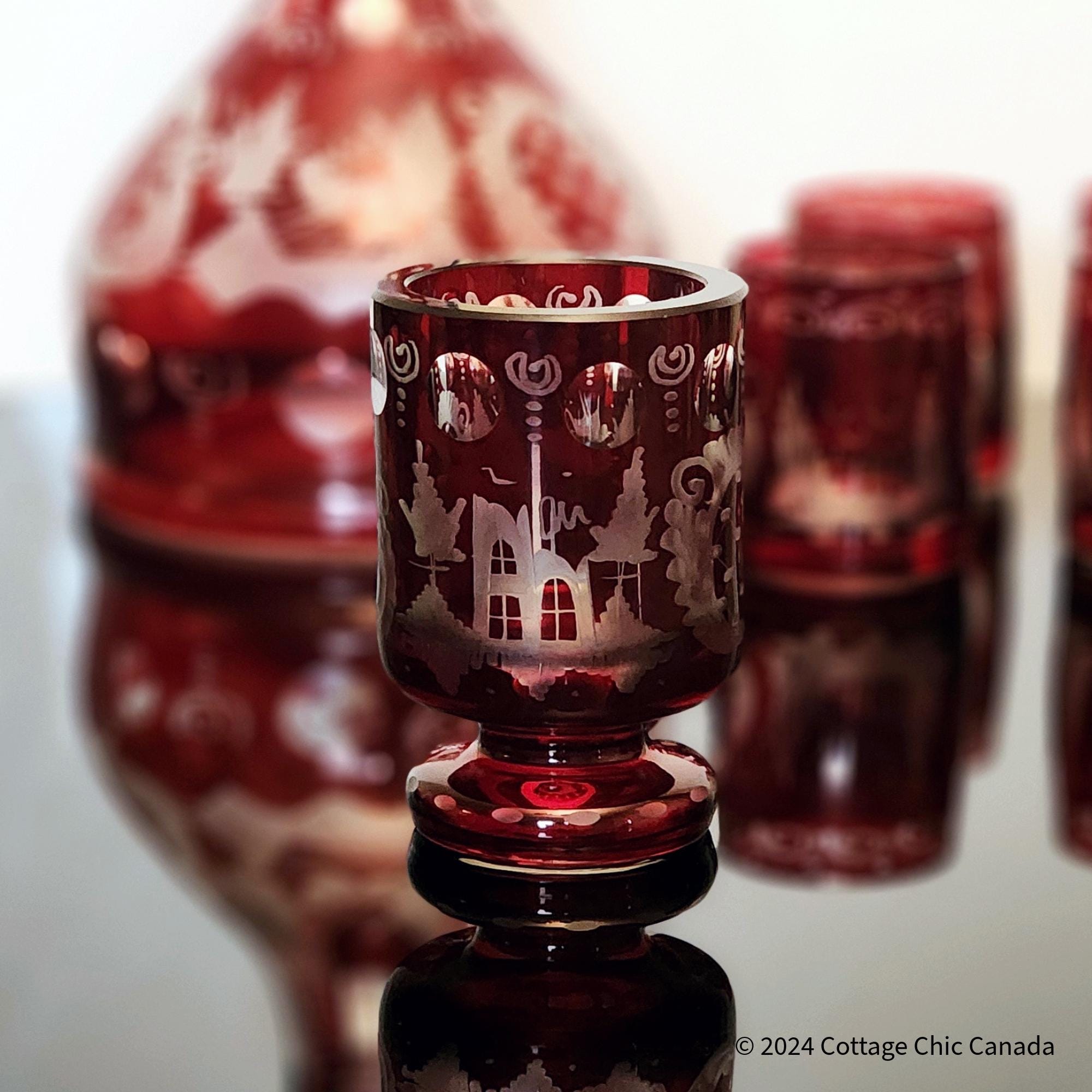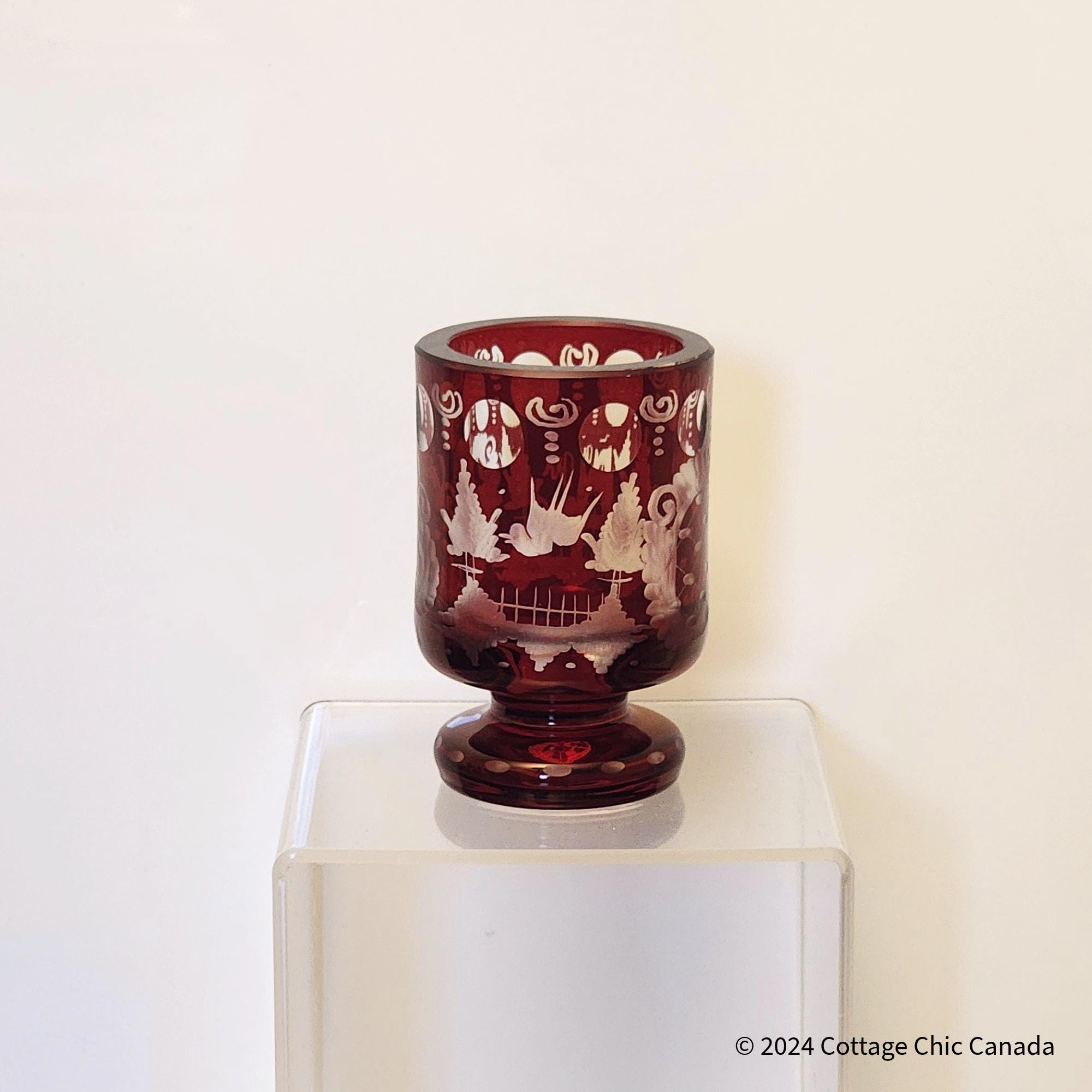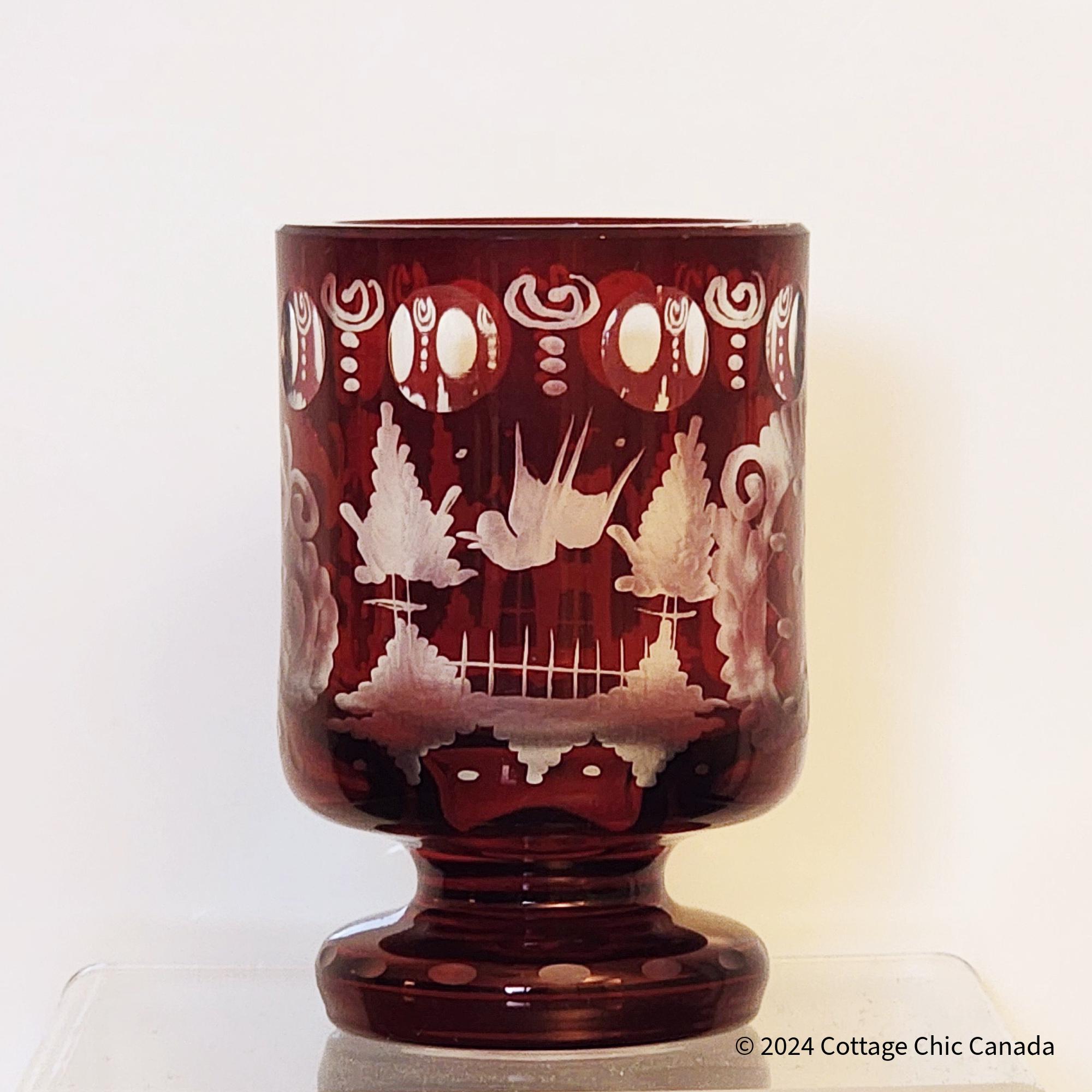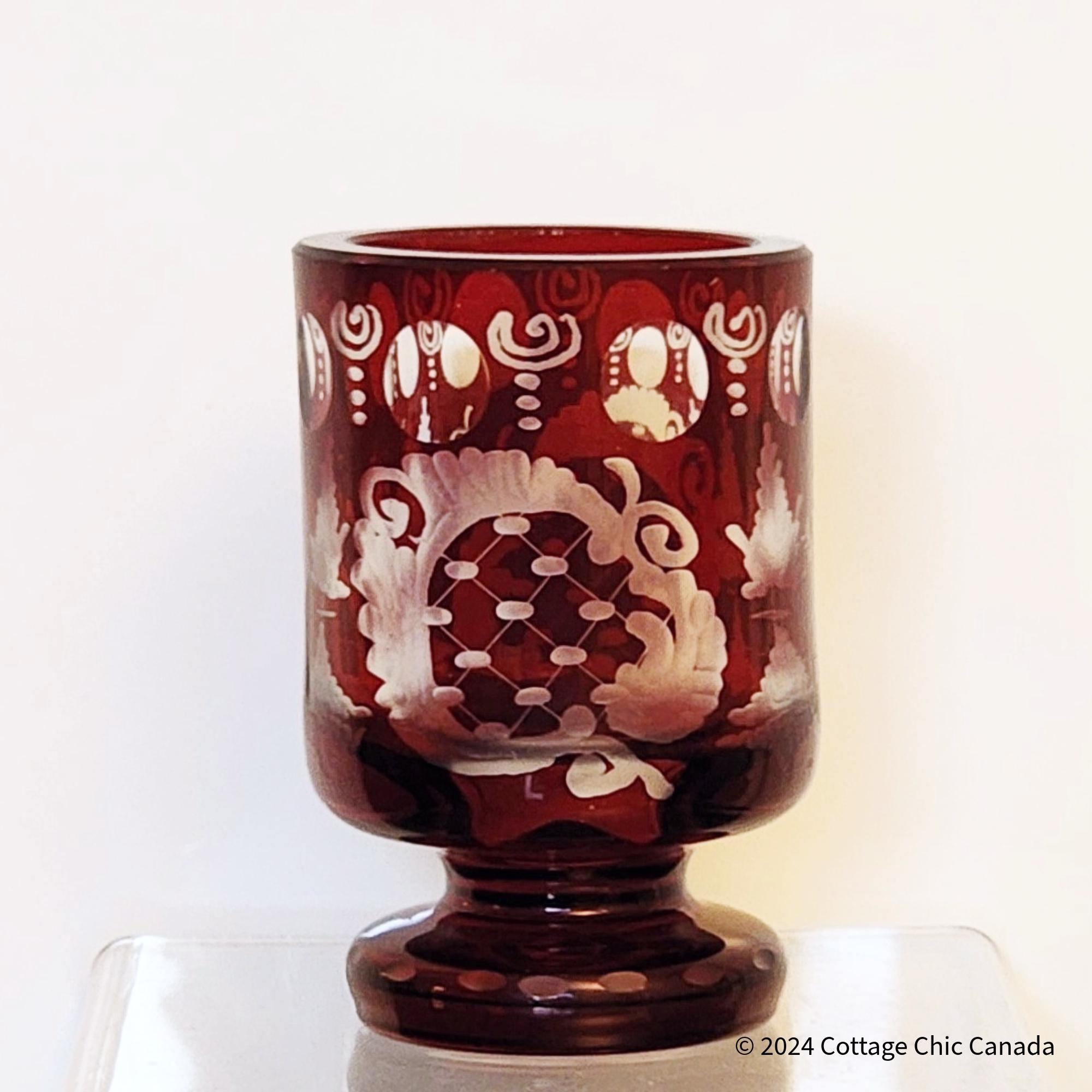 Bohemian Egermann Ruby Red Cut-to-Clear Crystal Cordial Glass – Vintage Mid Century Czech