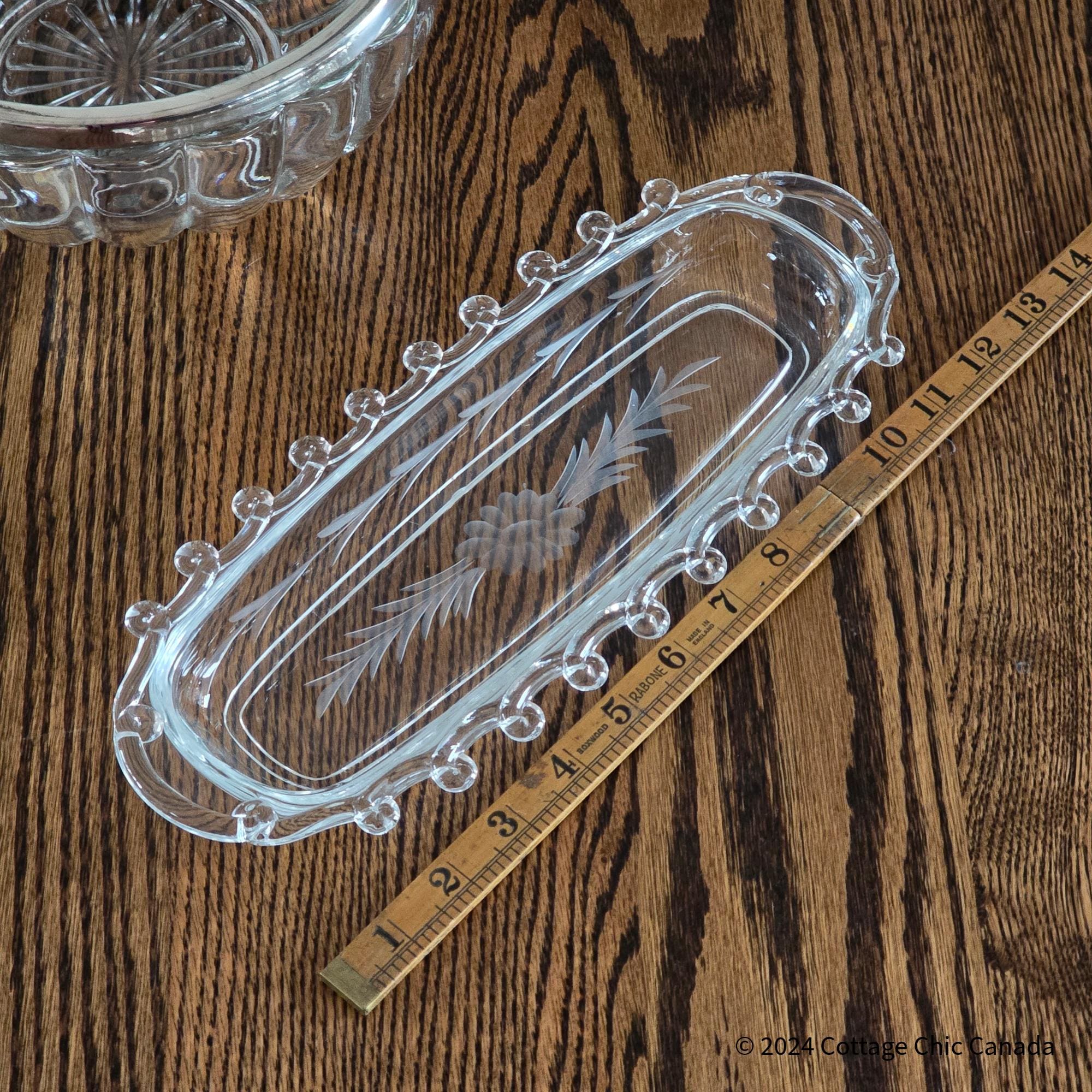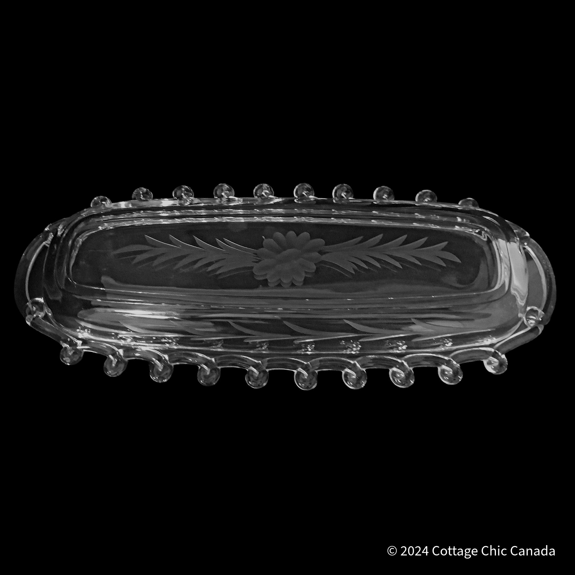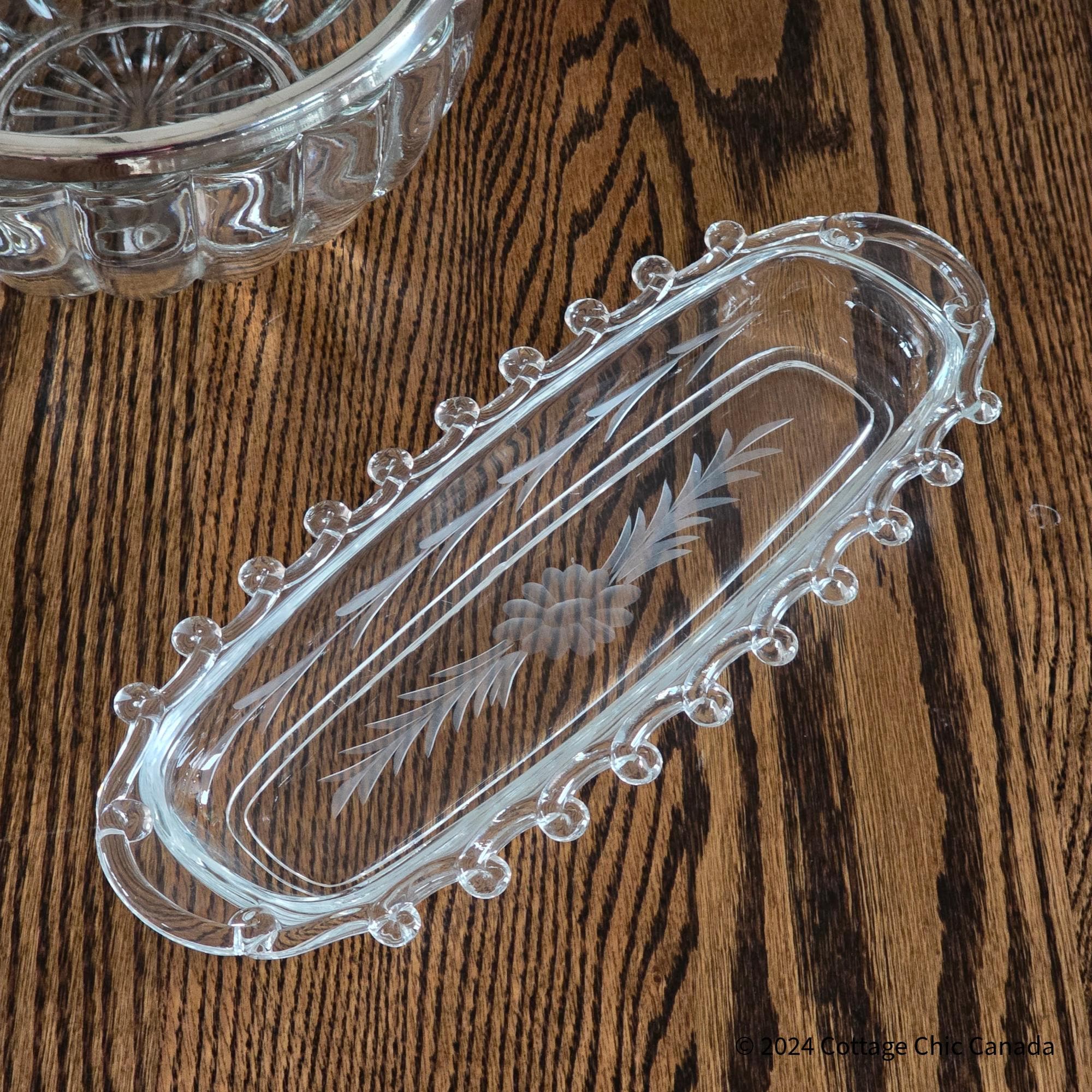 Heisey Lariat Daisy Etch Celery Dish – Vintage Mid Century Crystal Oval Serving Tray USA