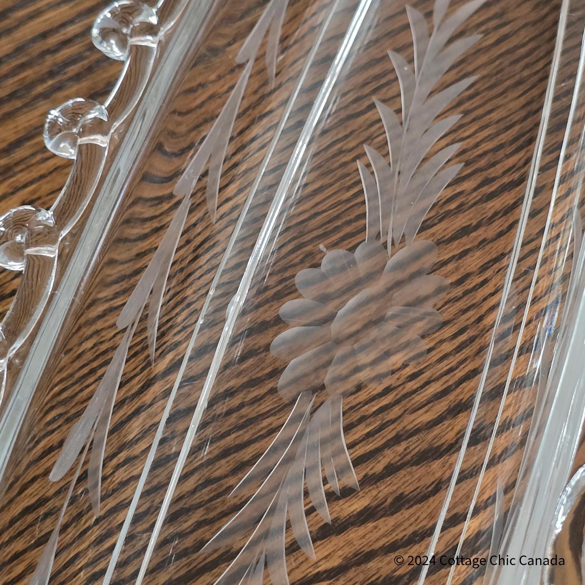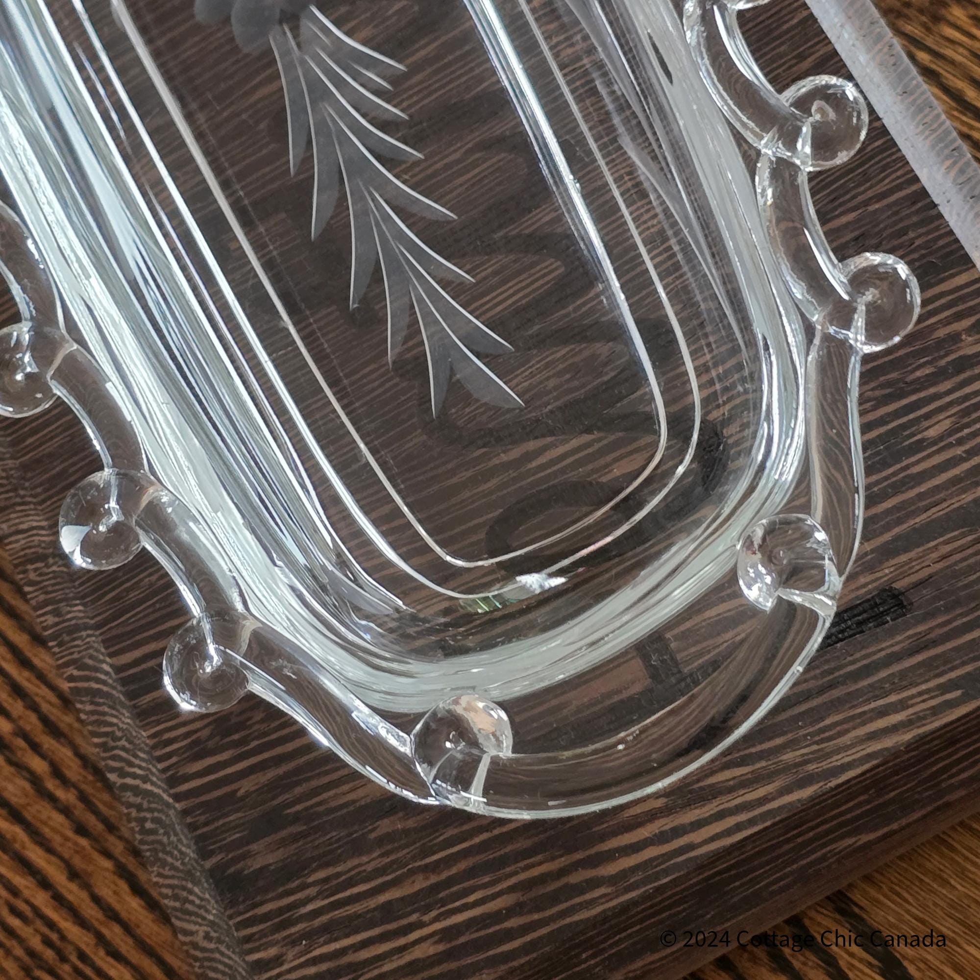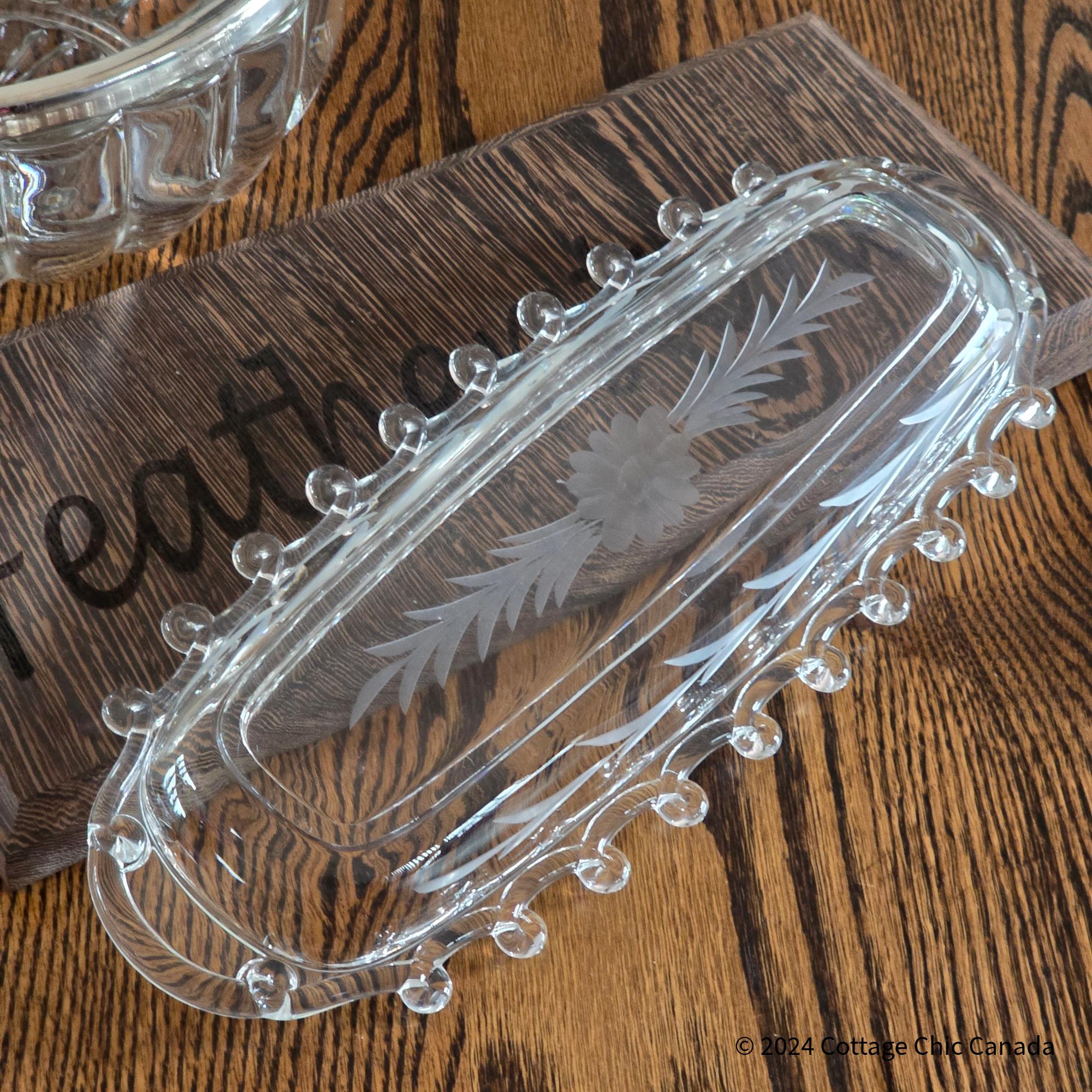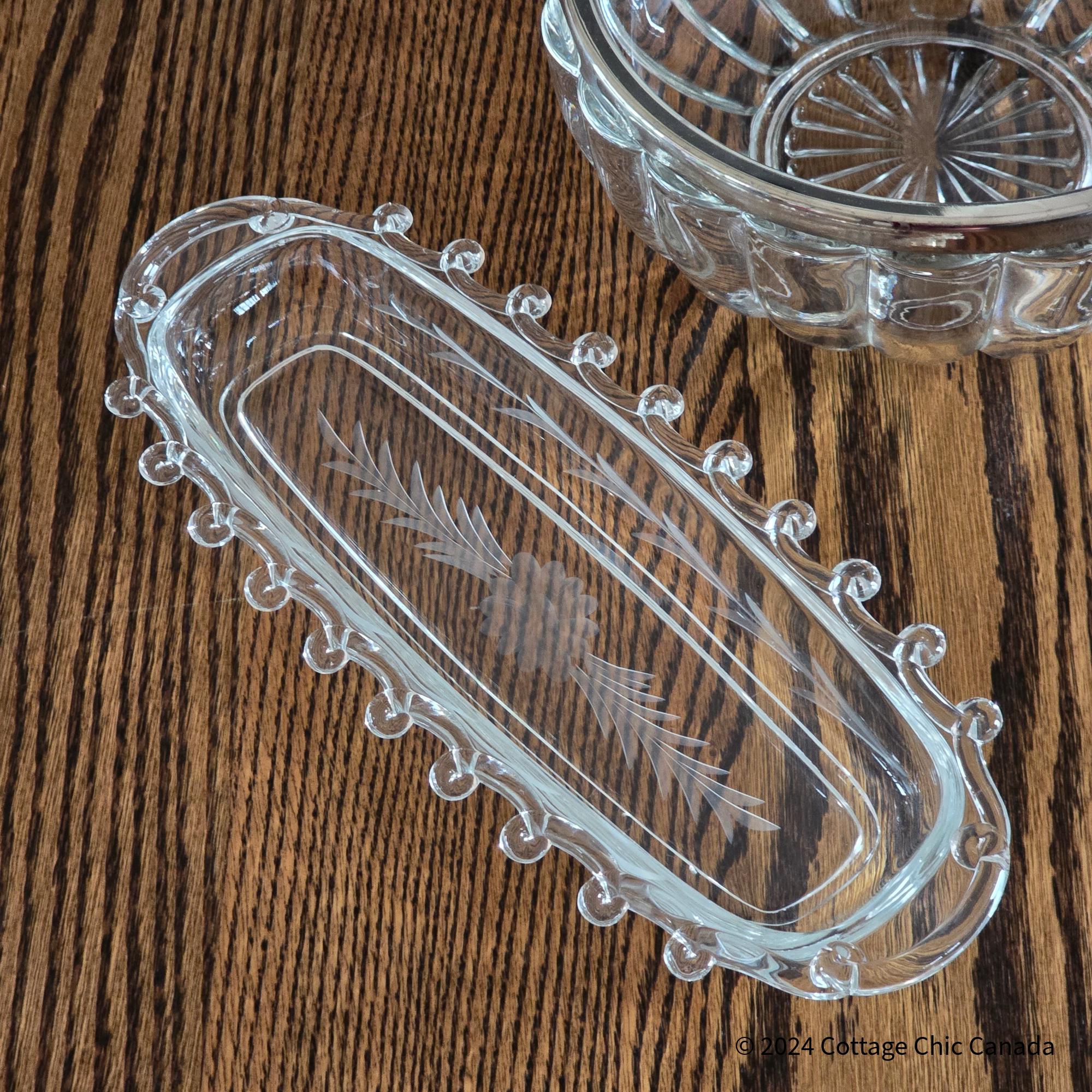 Heisey Lariat Daisy Etch Celery Dish – Vintage Mid Century Crystal Oval Serving Tray USA