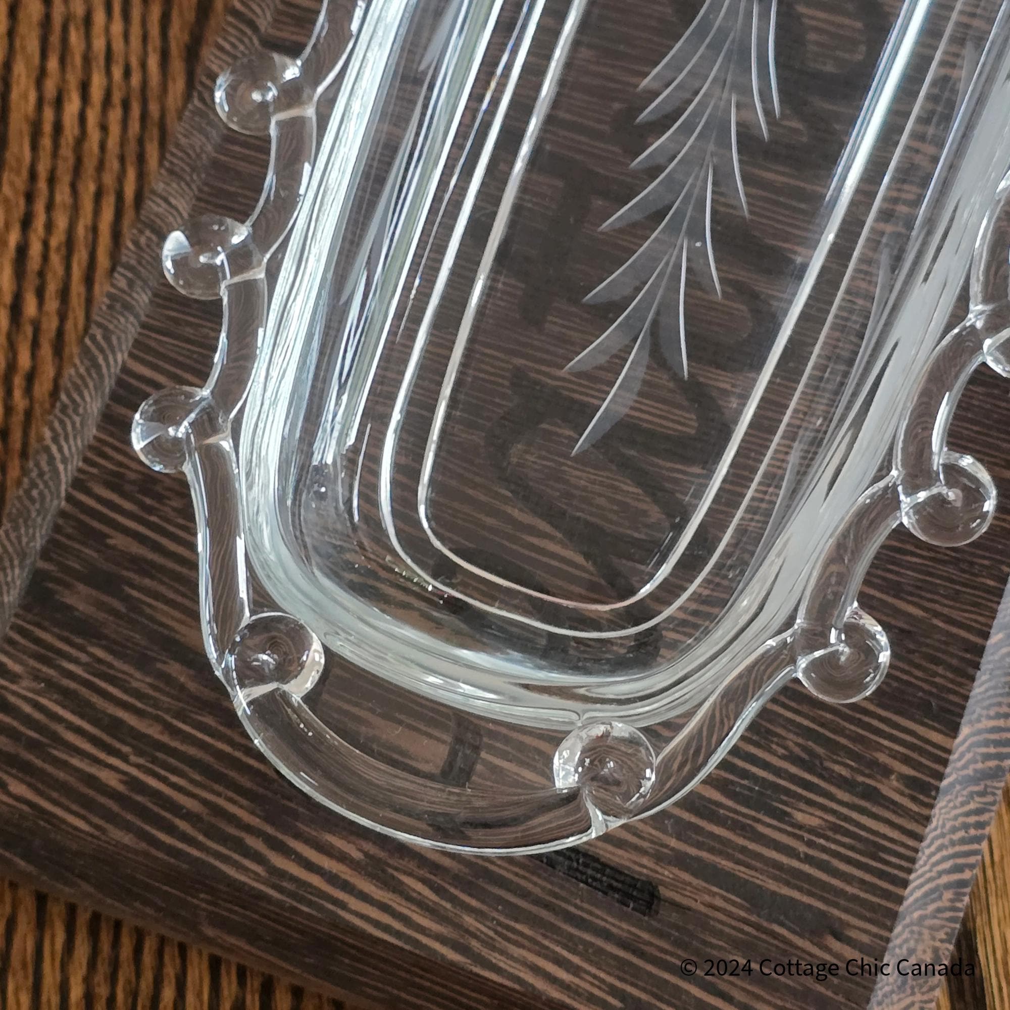 • Material: Pressed crystal glass with factory-applied Daisy etch