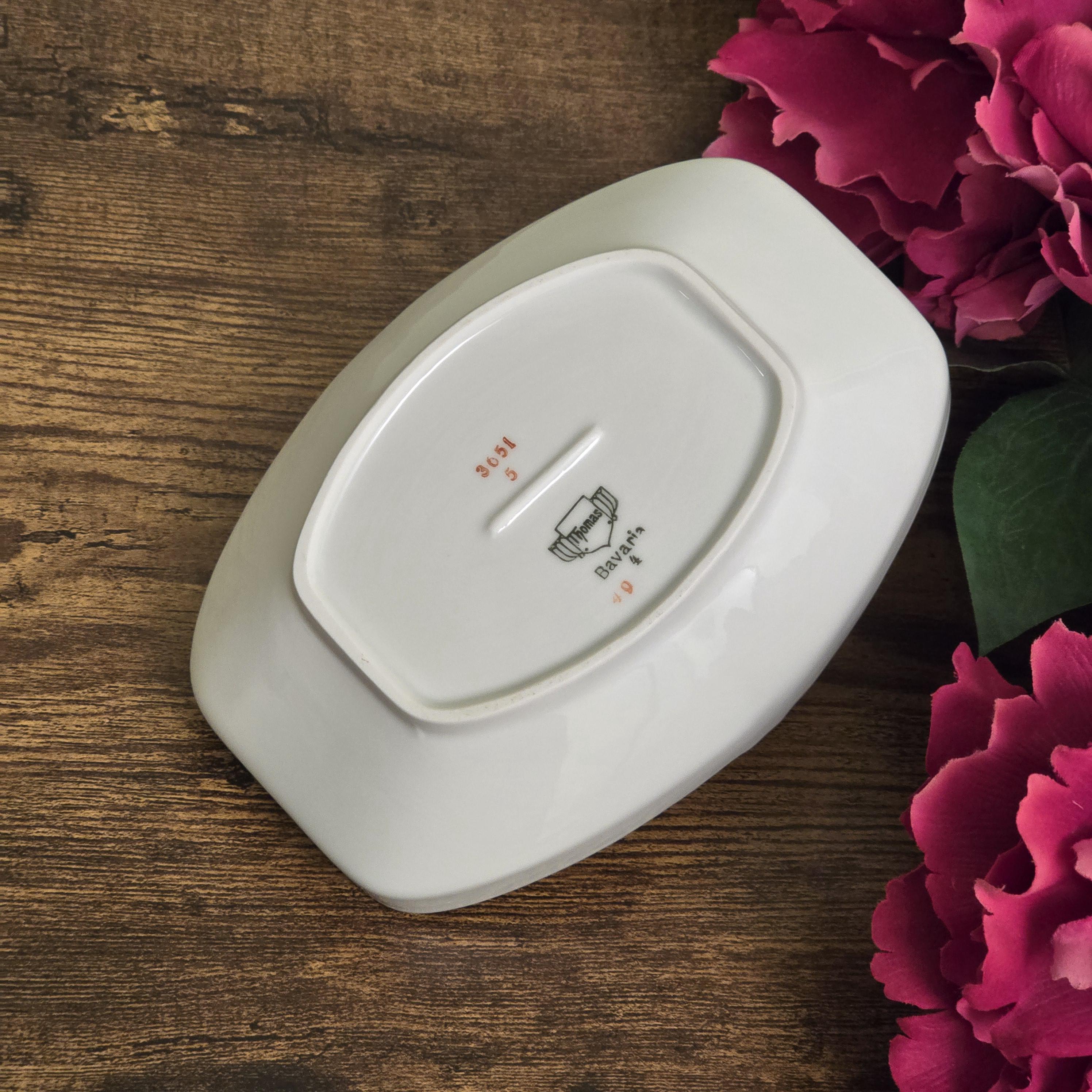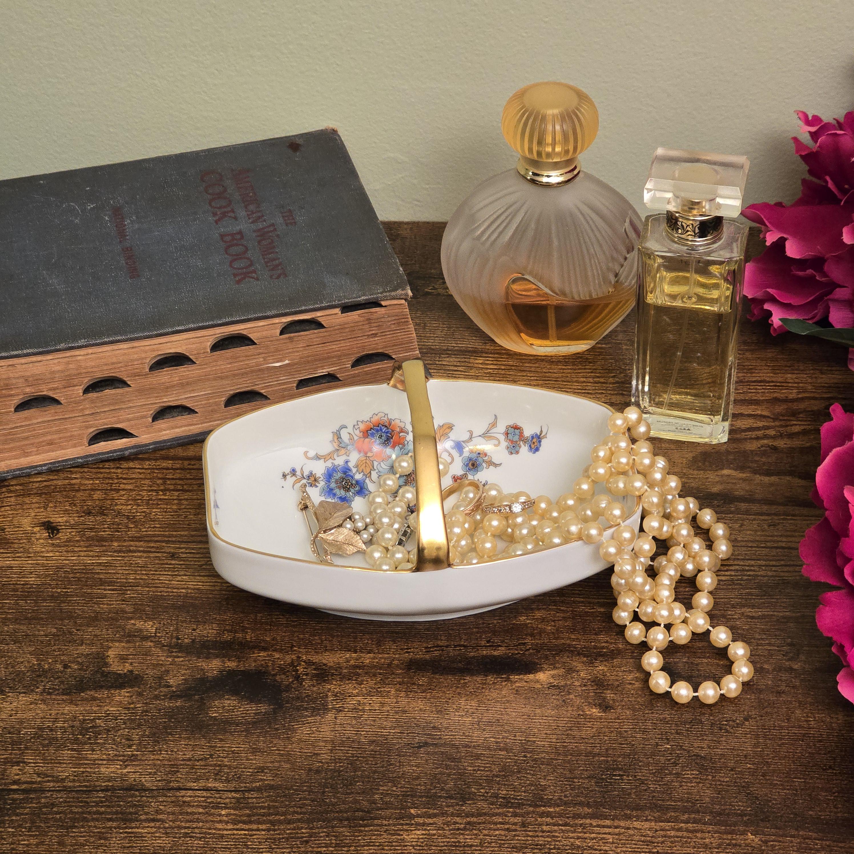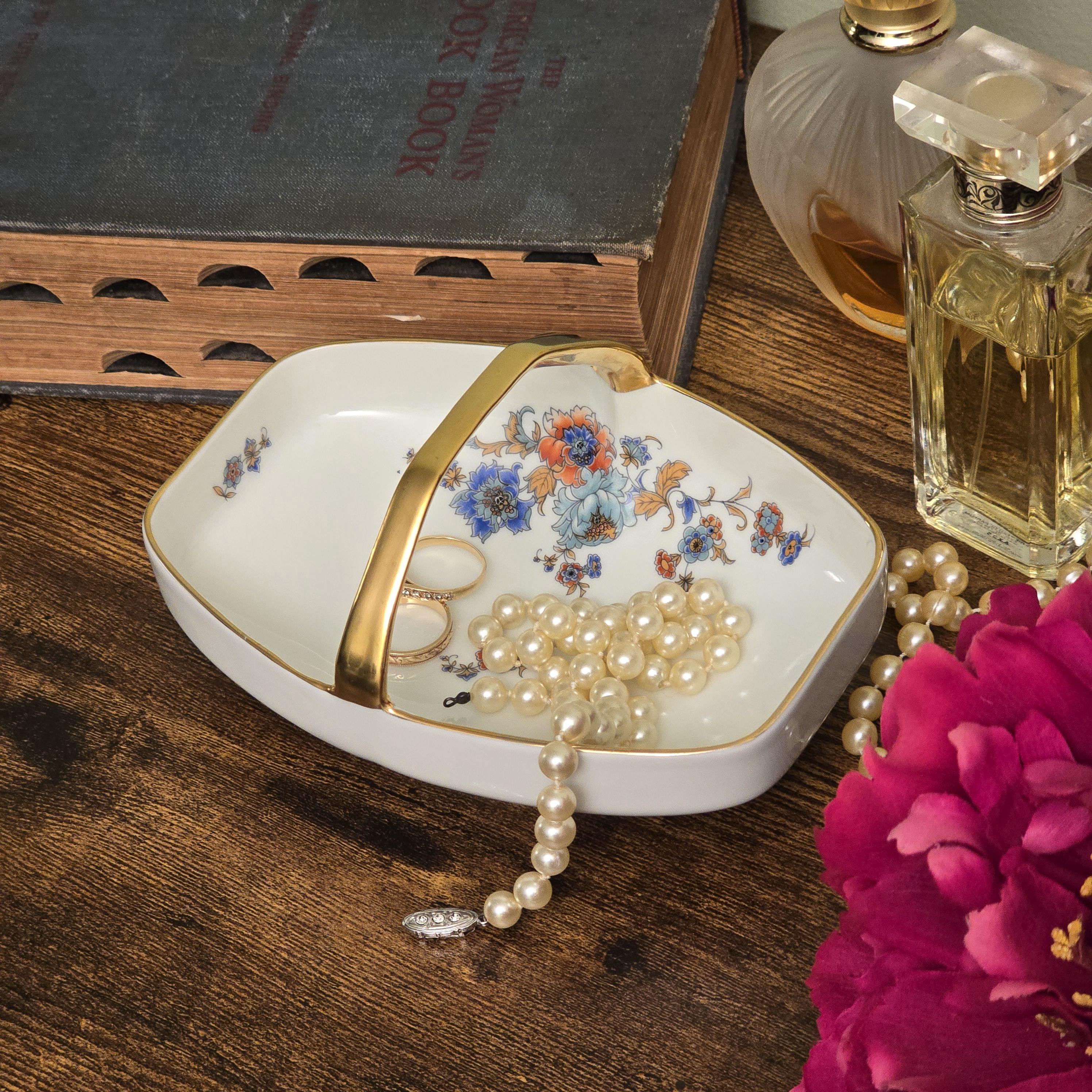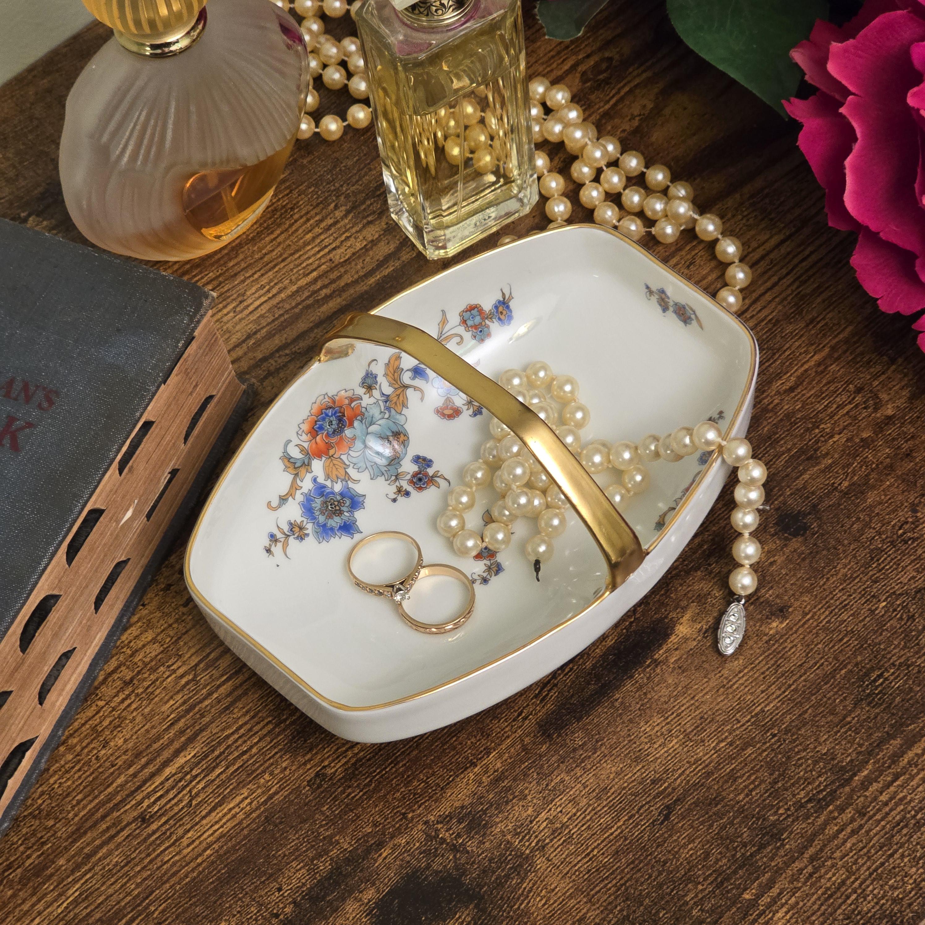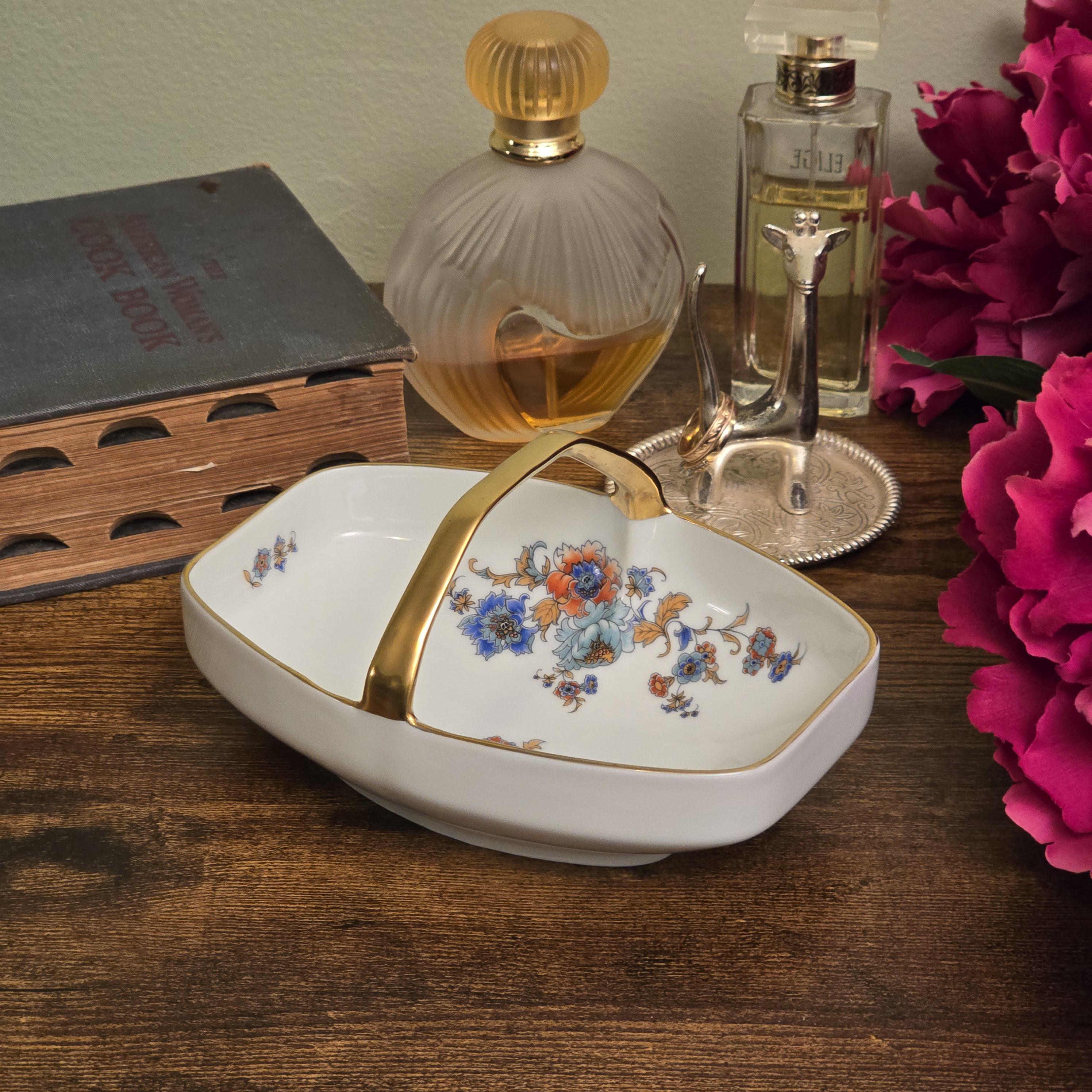 Thomas Bavaria Fine Porcelain Floral Handled Dish – Vanity Display Gold Trim Mid Century Germany