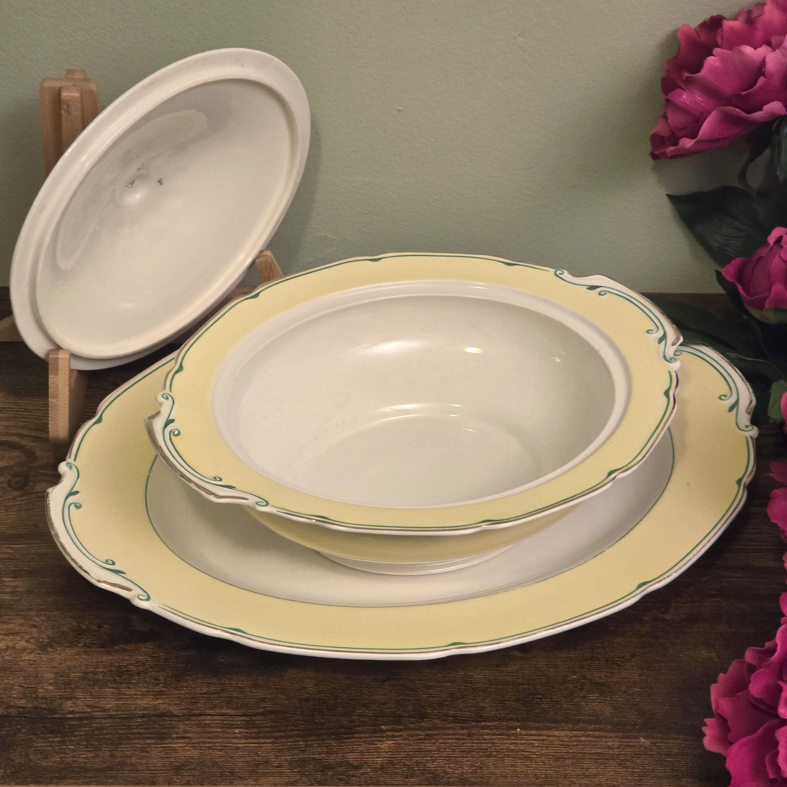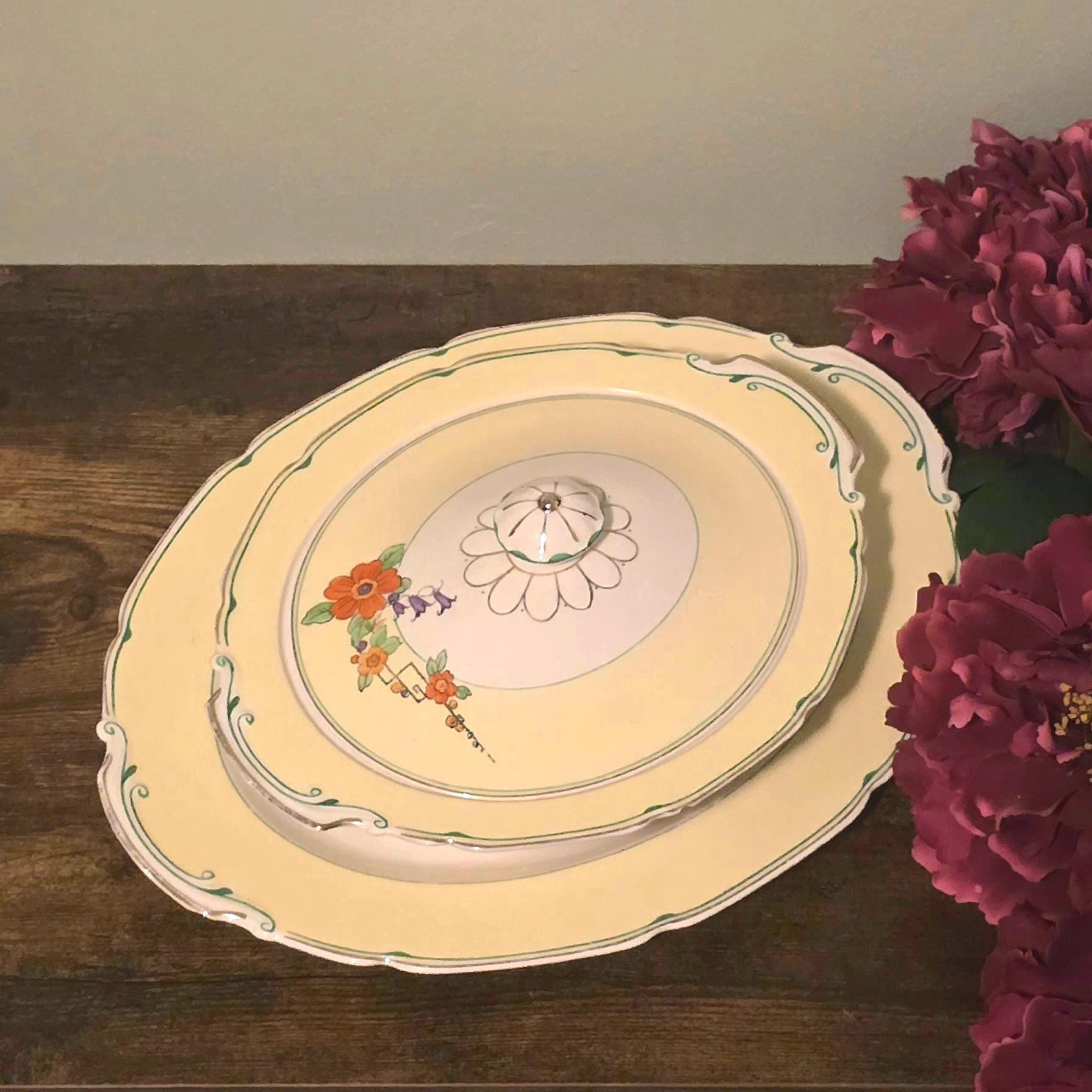A rare vintage Art Deco hostess serving set — perfect for cottagecore kitchens, serving vegetables or side dishes at the table, or styled on a vintage buffet.