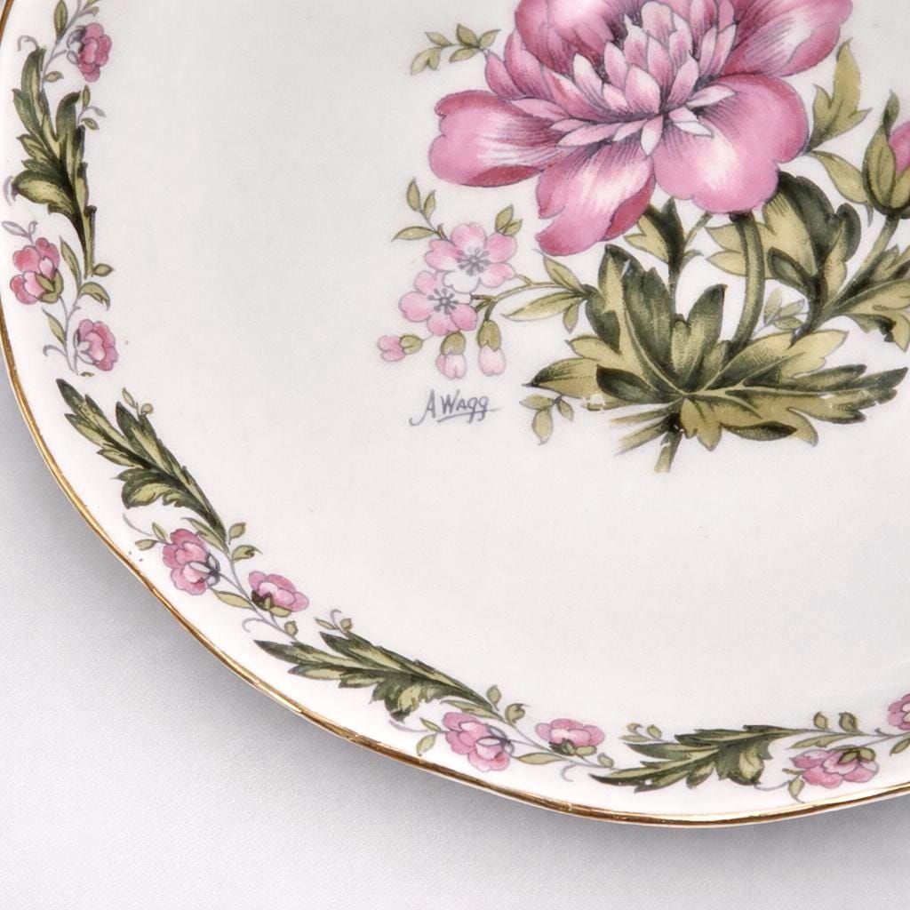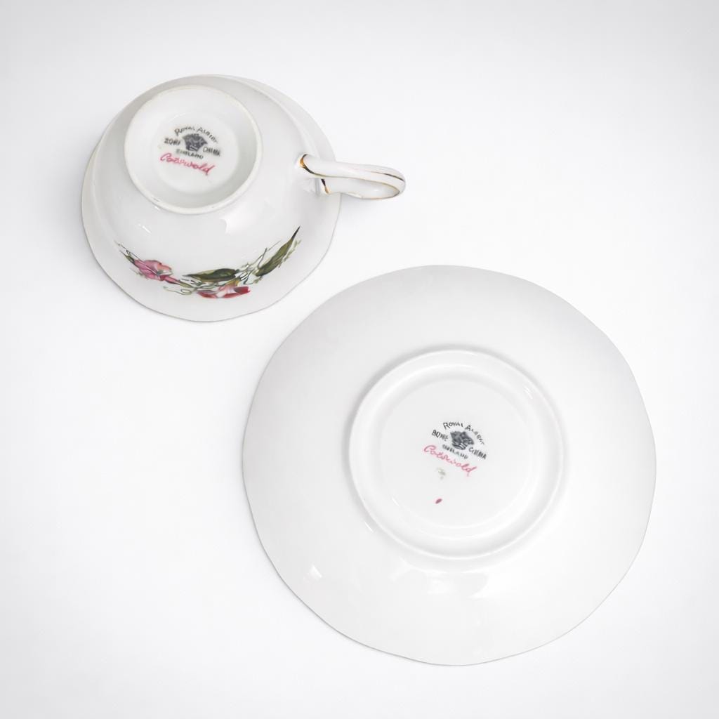 Royal Albert, founded in Longton, Staffordshire in 1896, became internationally known for its richly floral bone china and elegant gold detailing. The Cotswold pattern, signed by A. Wagg, embodies the graceful aesthetic of the 1960s to 1970s and remains a favourite among collectors of classic British tea service.