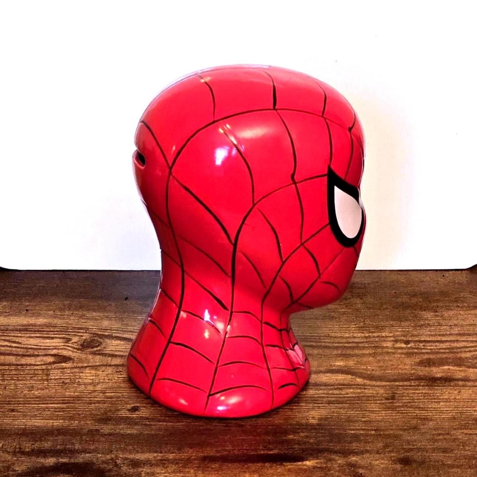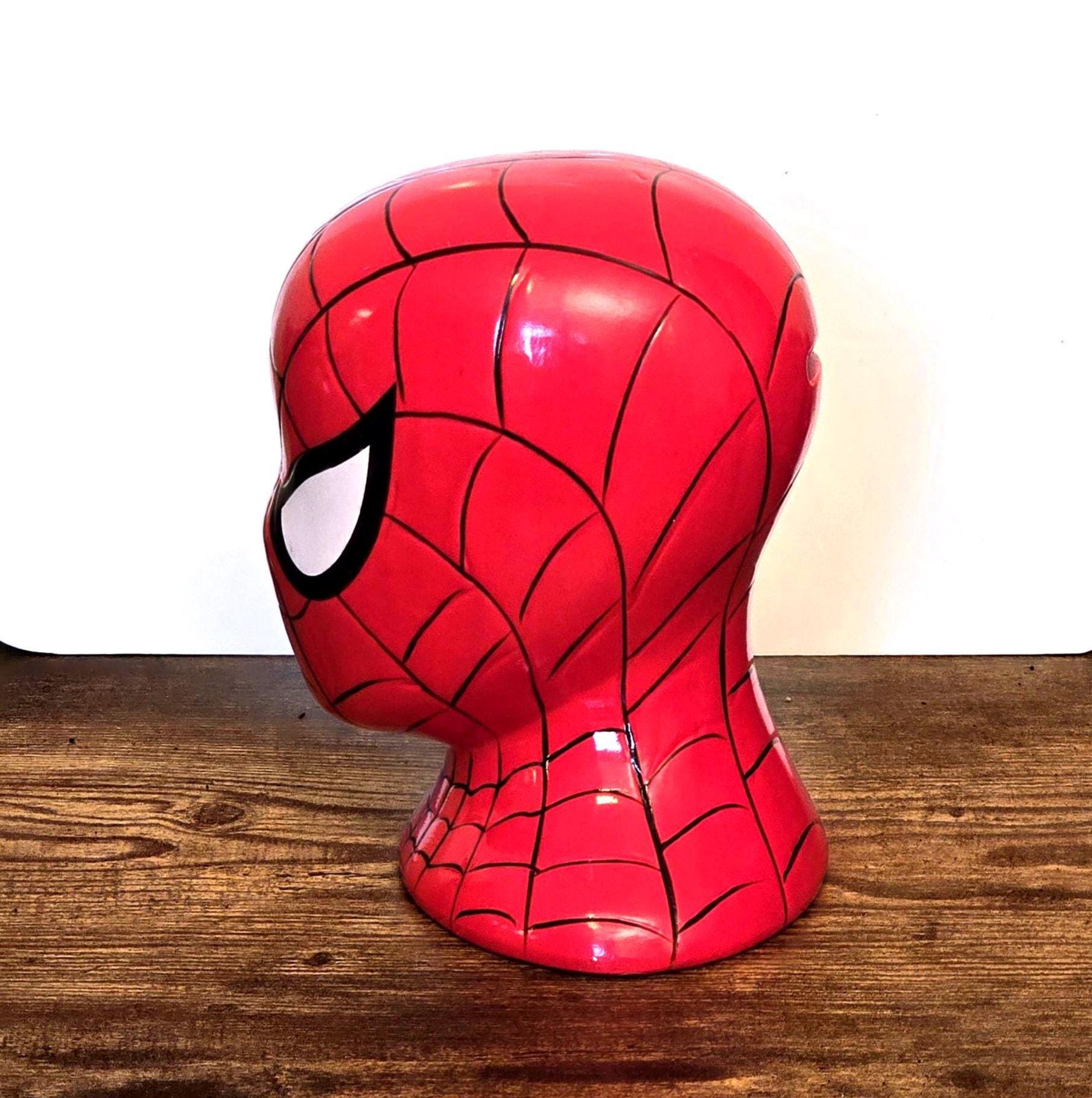 Save your coins with style using this bold ceramic Spider-Man bank featuring the iconic red mask design. Crafted with a glossy finish and clean comic-inspired lines, it brings classic Marvel energy to any room. Whether displayed on a shelf, used as a functional coin bank, or added to a superhero-themed collection, this piece makes a striking decorative accent for fans of all ages.
