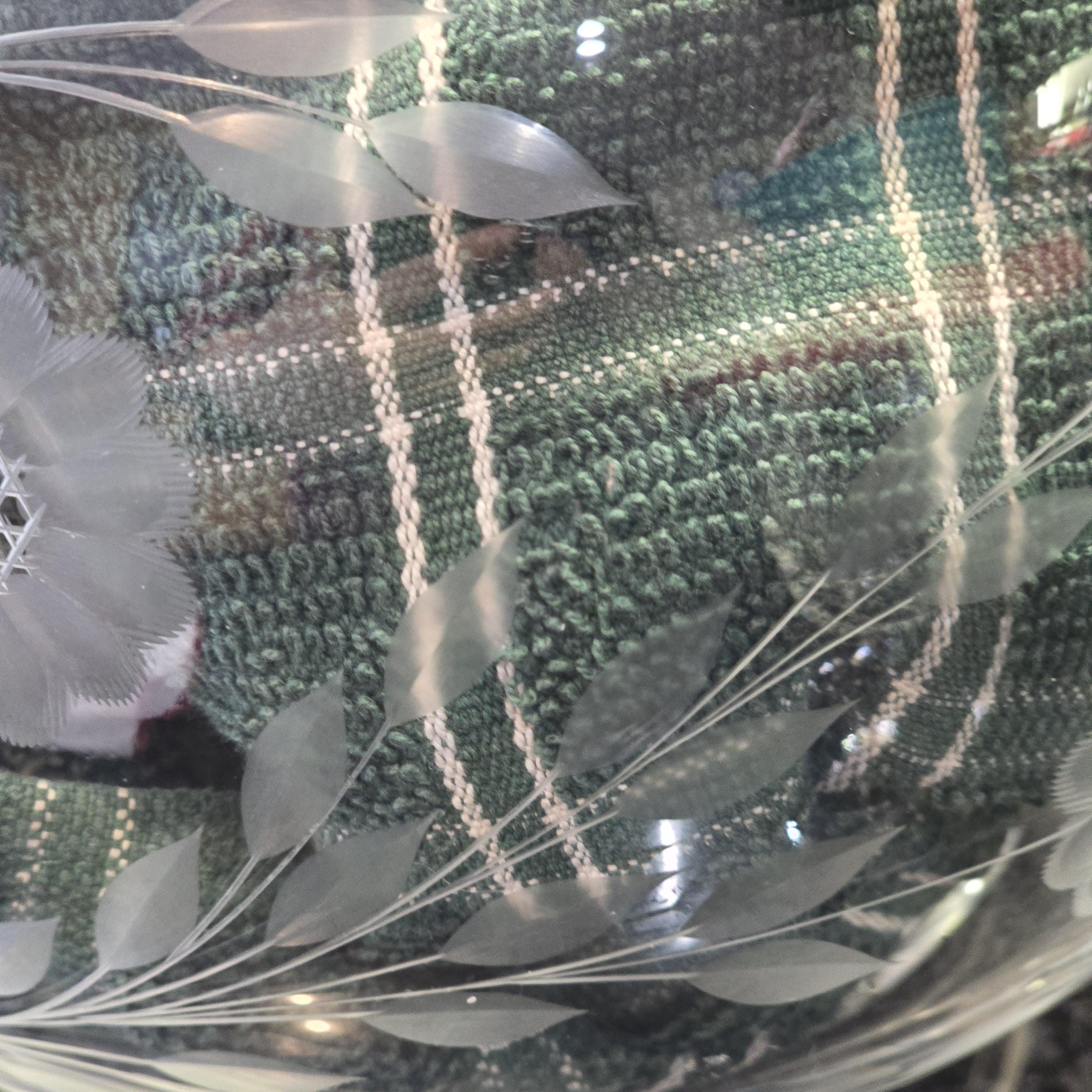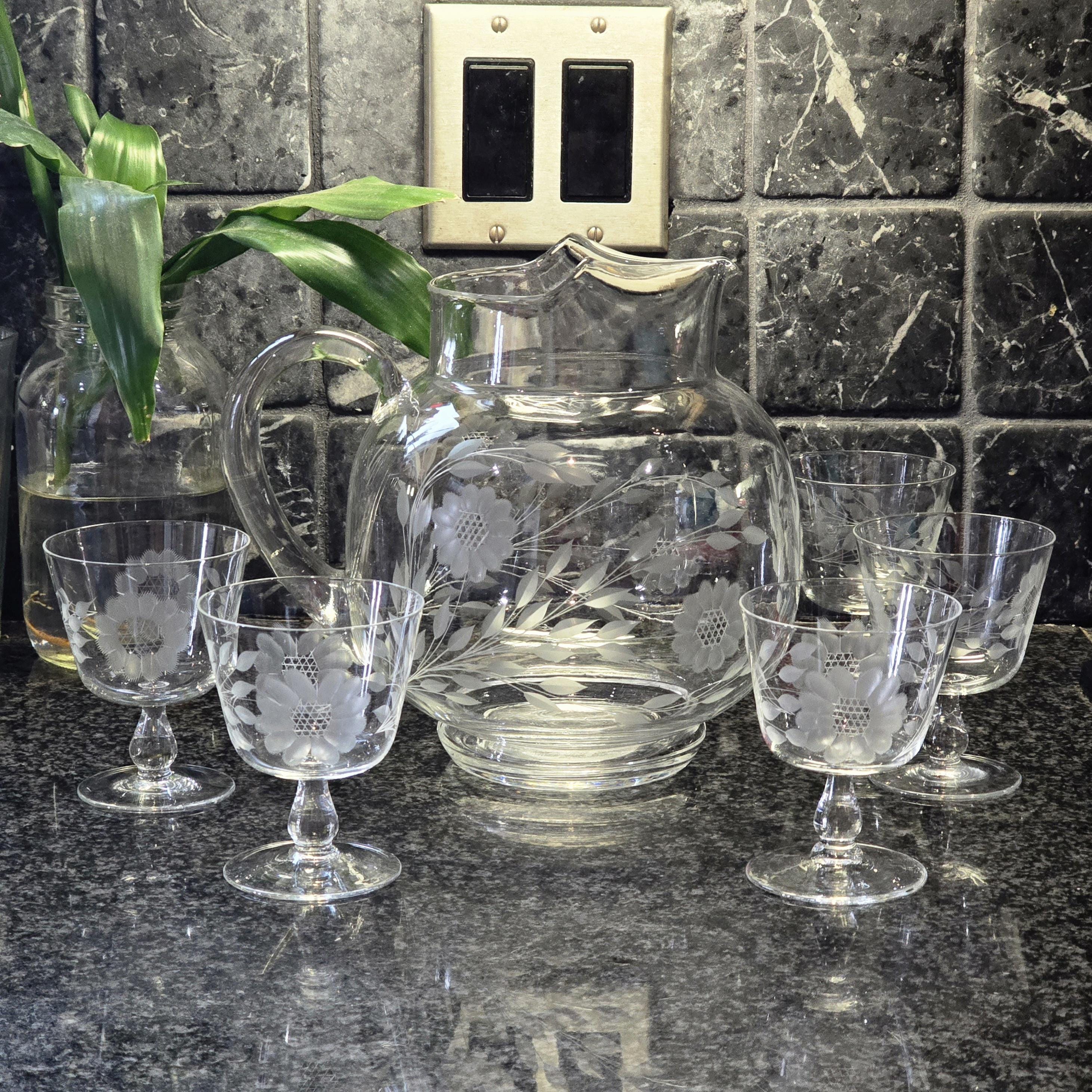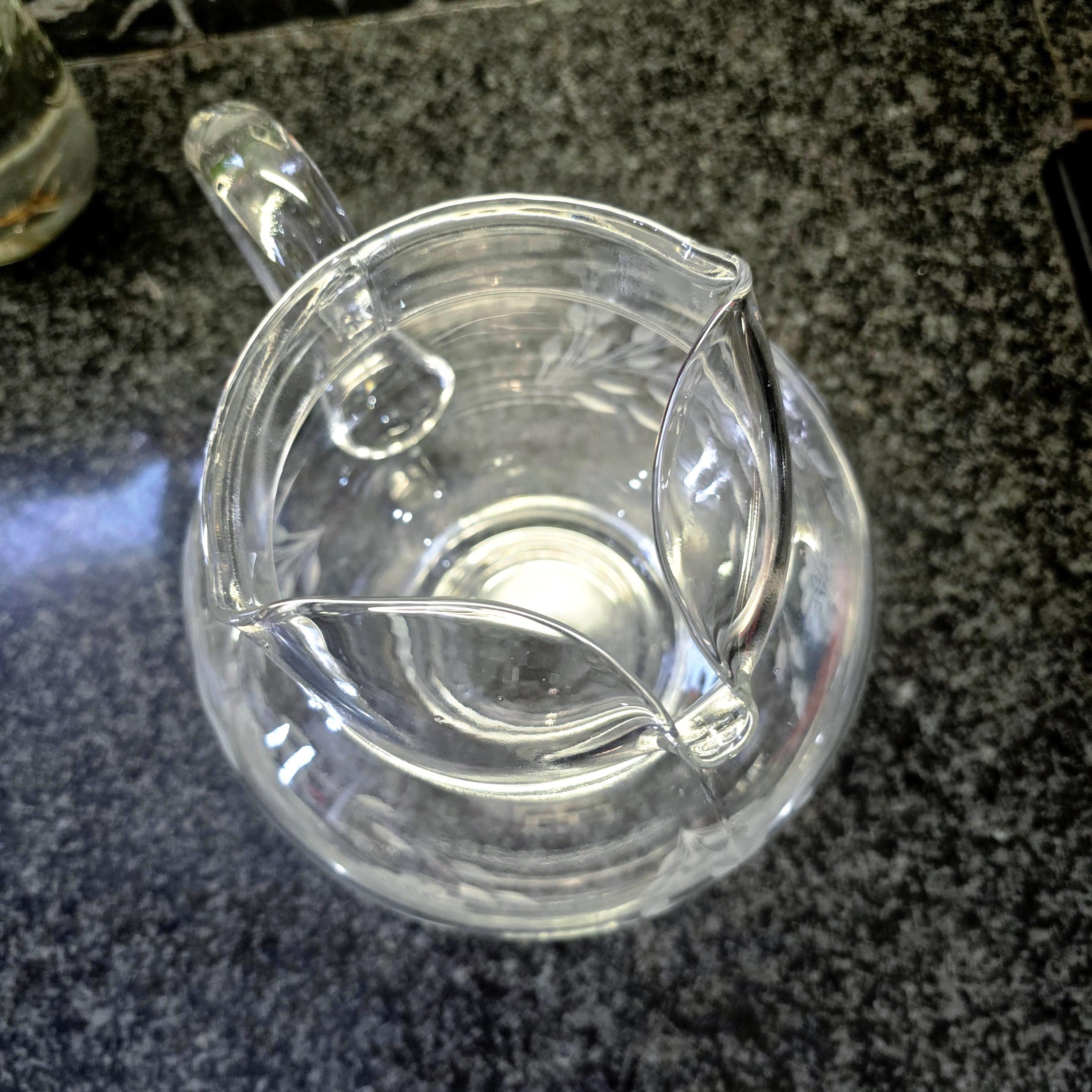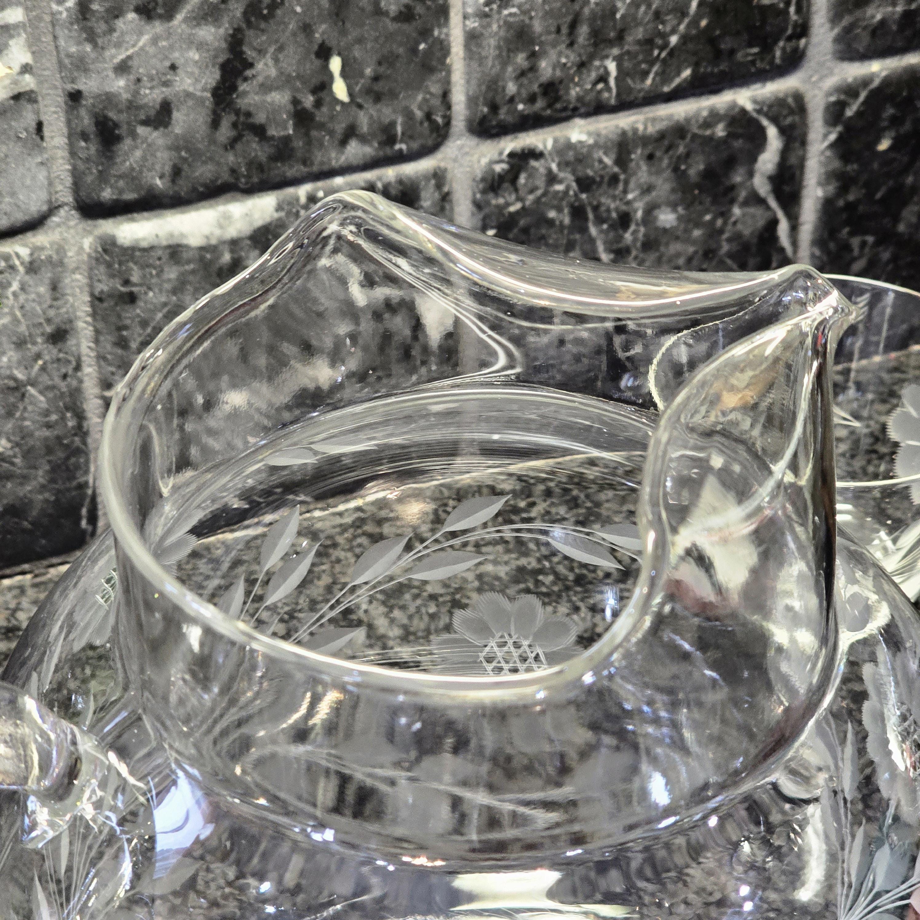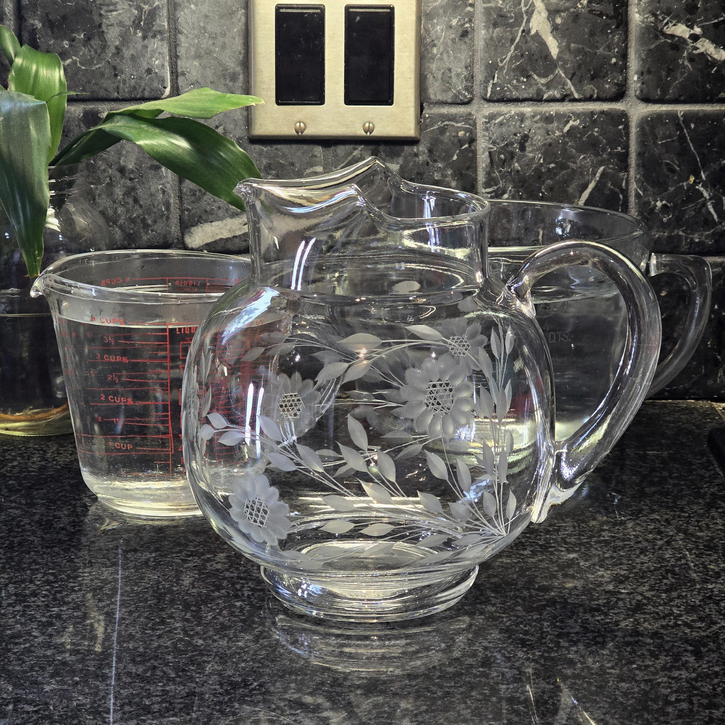 Hughes Cornflower Glass Water Pitcher – Early Mid Century Hand Cut Etched Floral Design Canada
