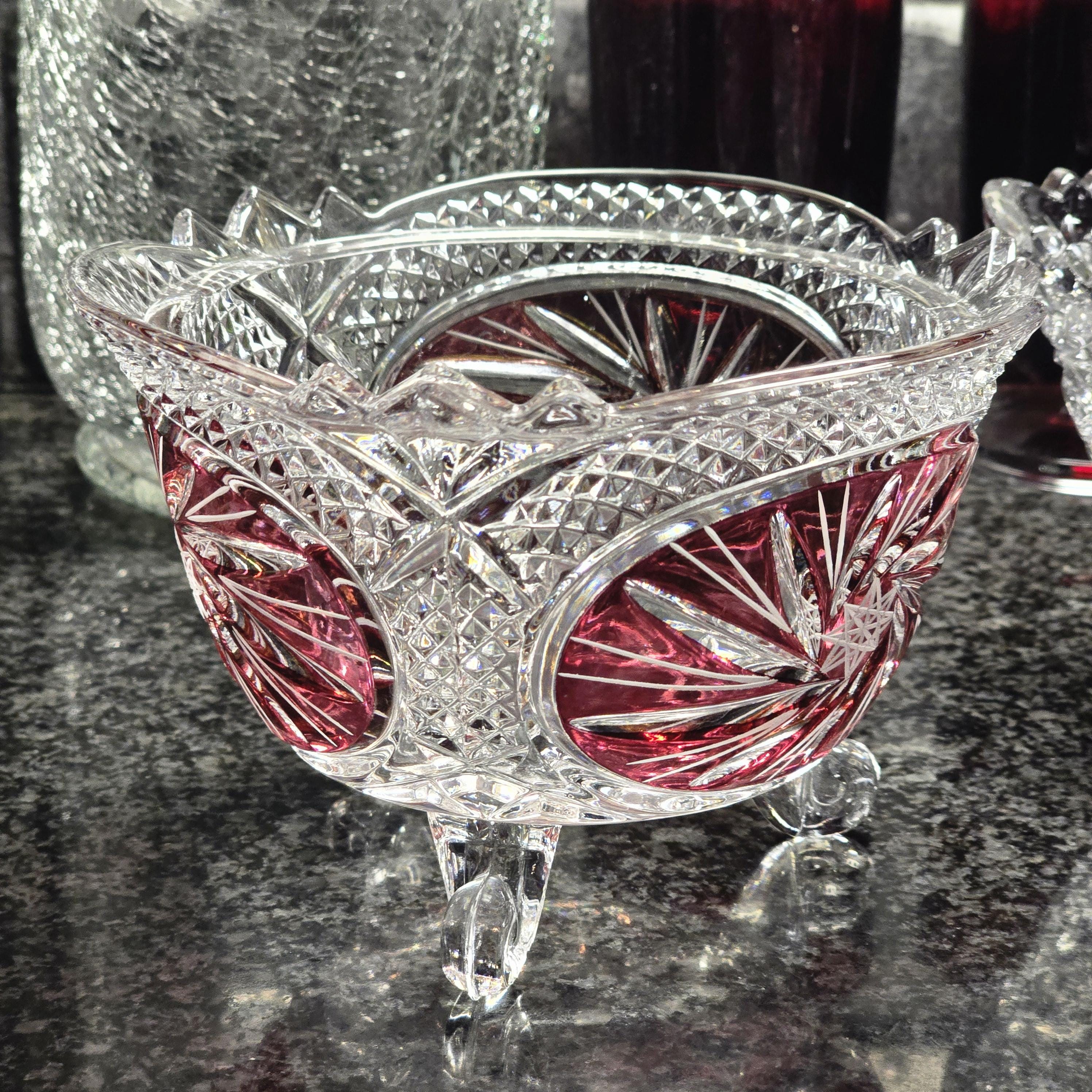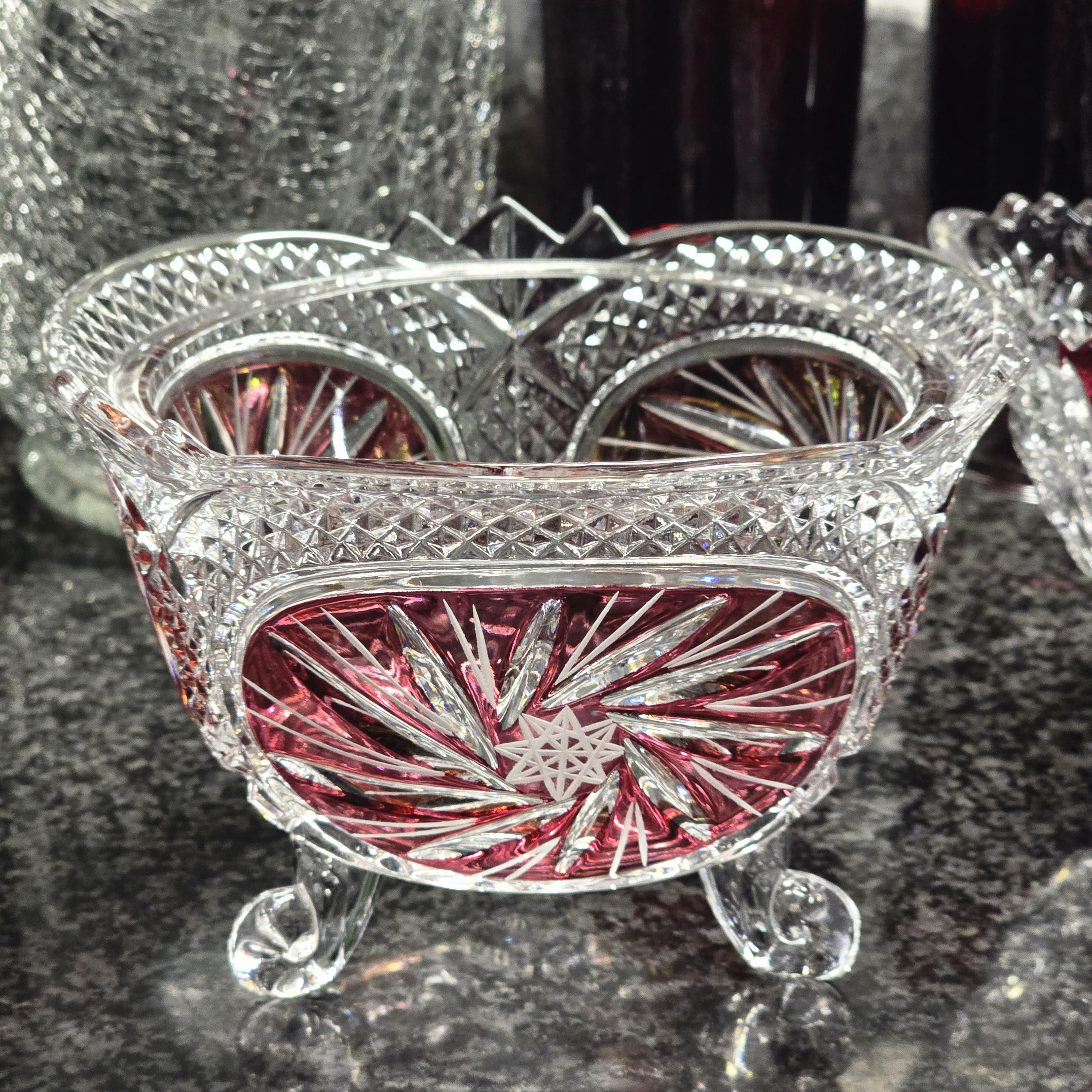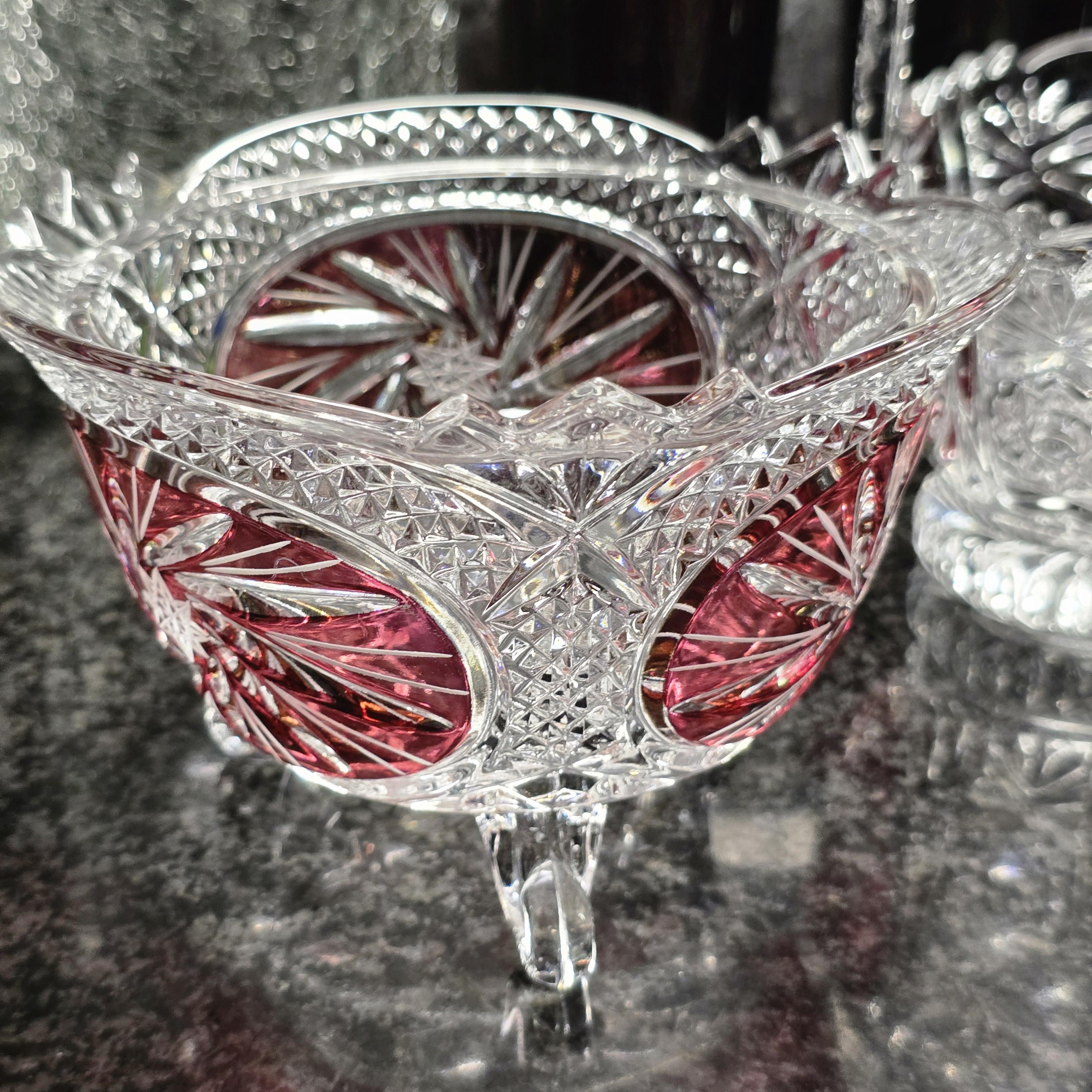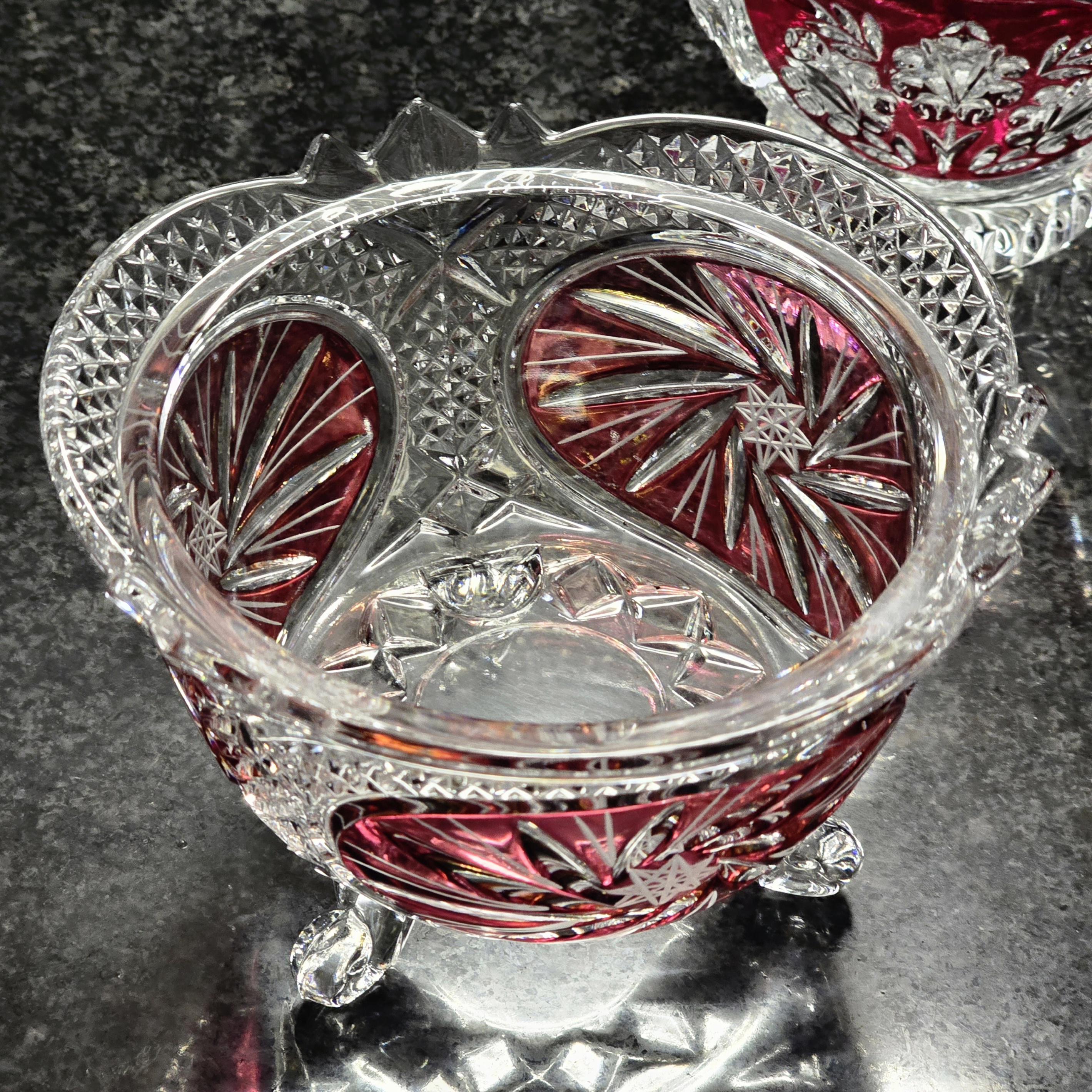 Anna Hütte Bleikristall Ruby Flash Crystal Bowls – Hand Cut Floral Starburst Germany