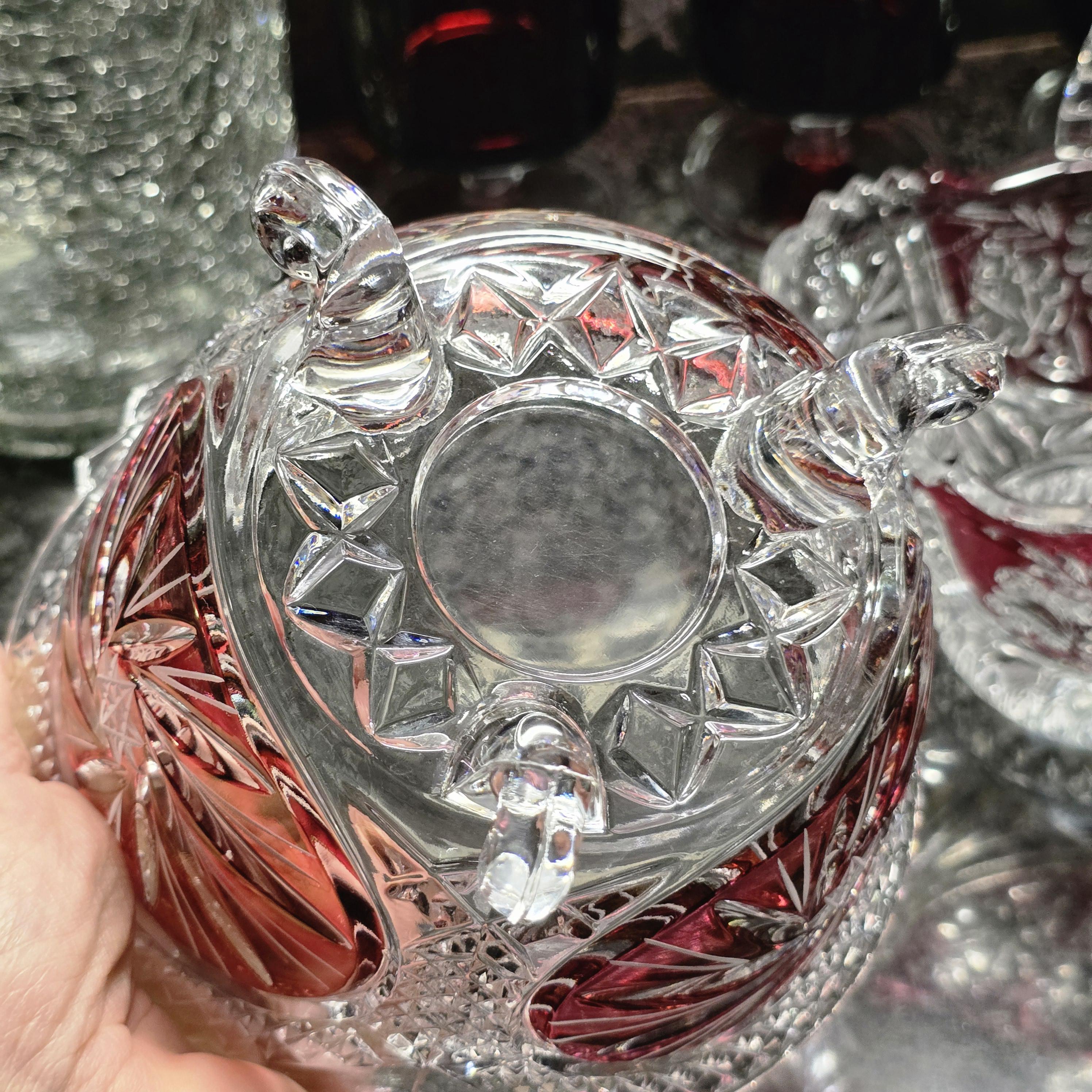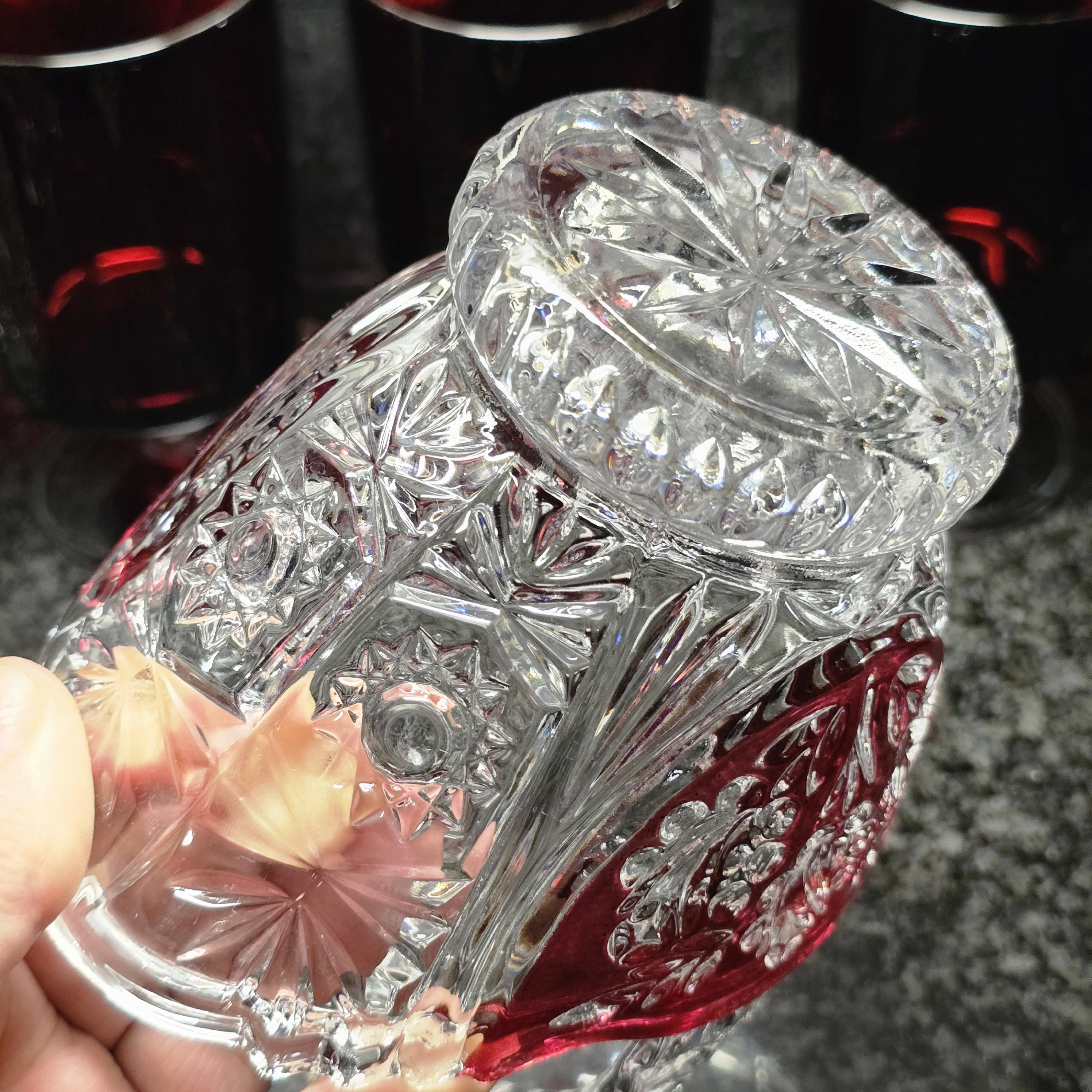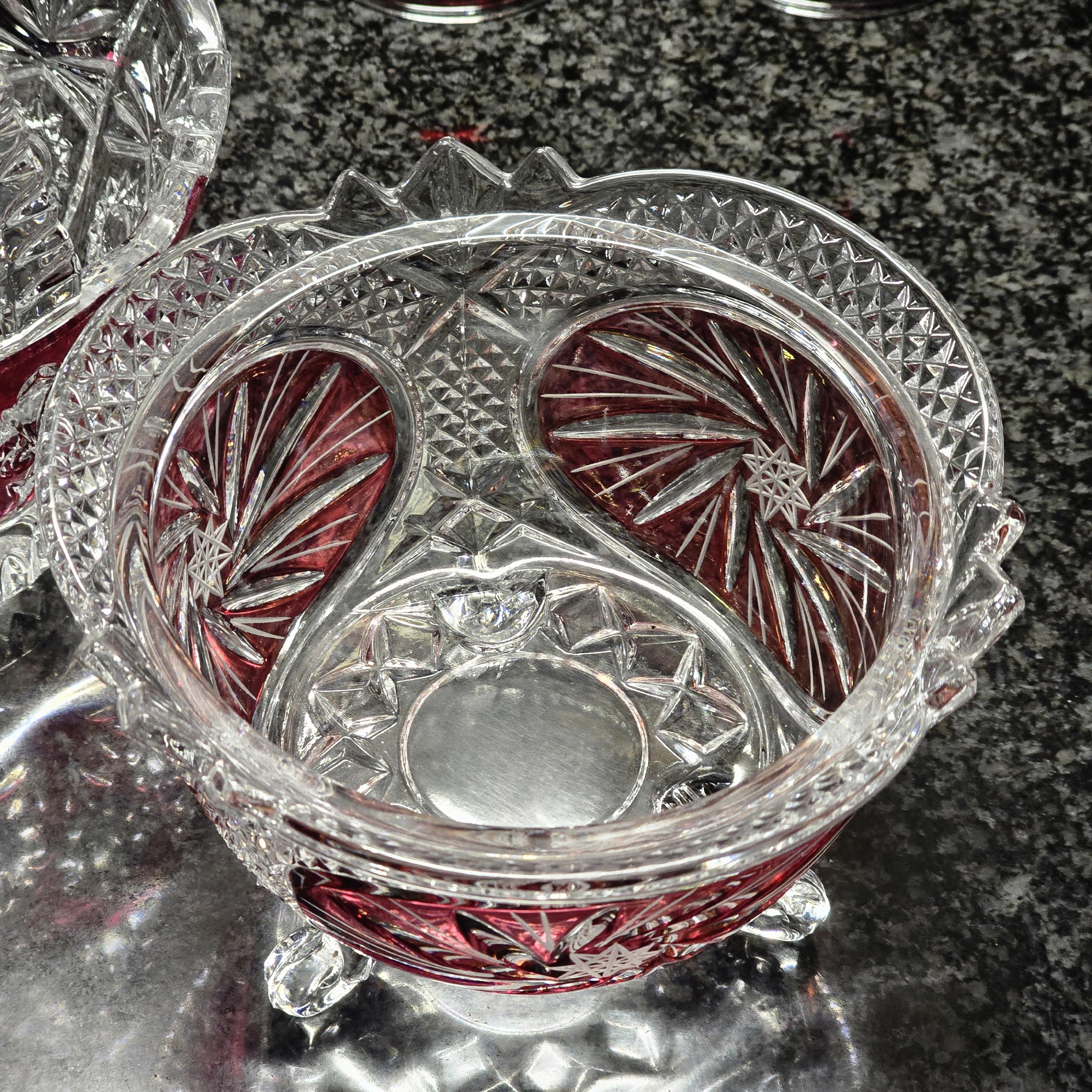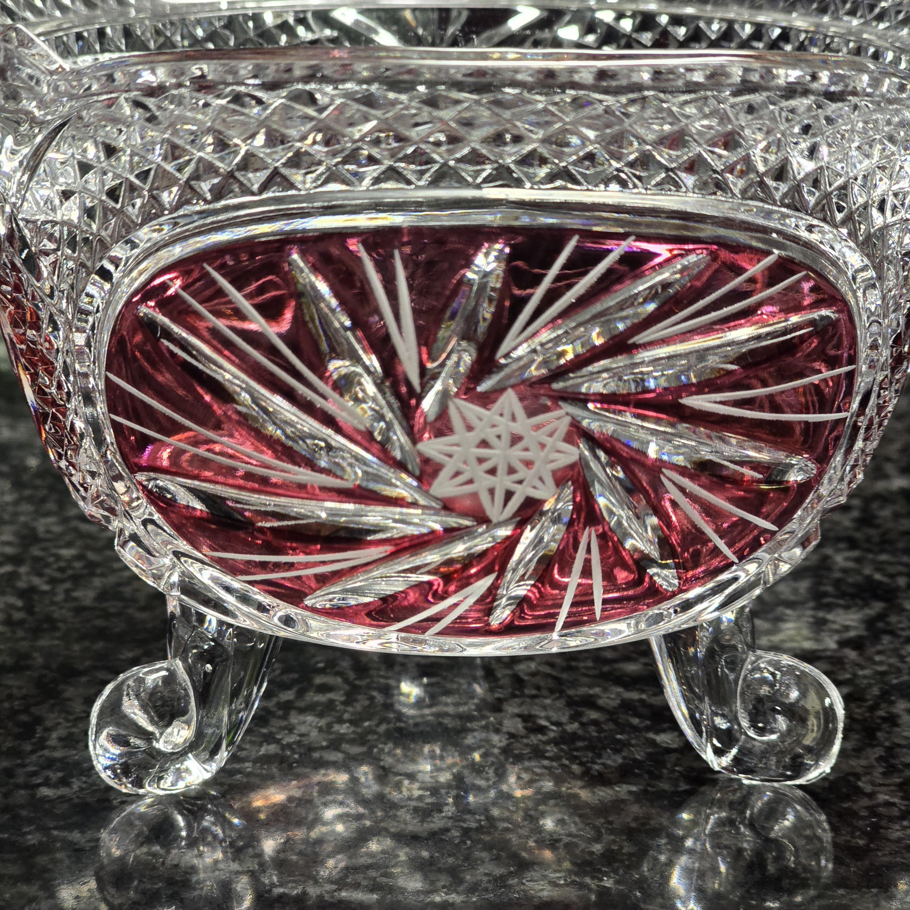 Anna Hütte Bleikristall Ruby Flash Crystal Bowls – Hand Cut Floral Starburst Germany