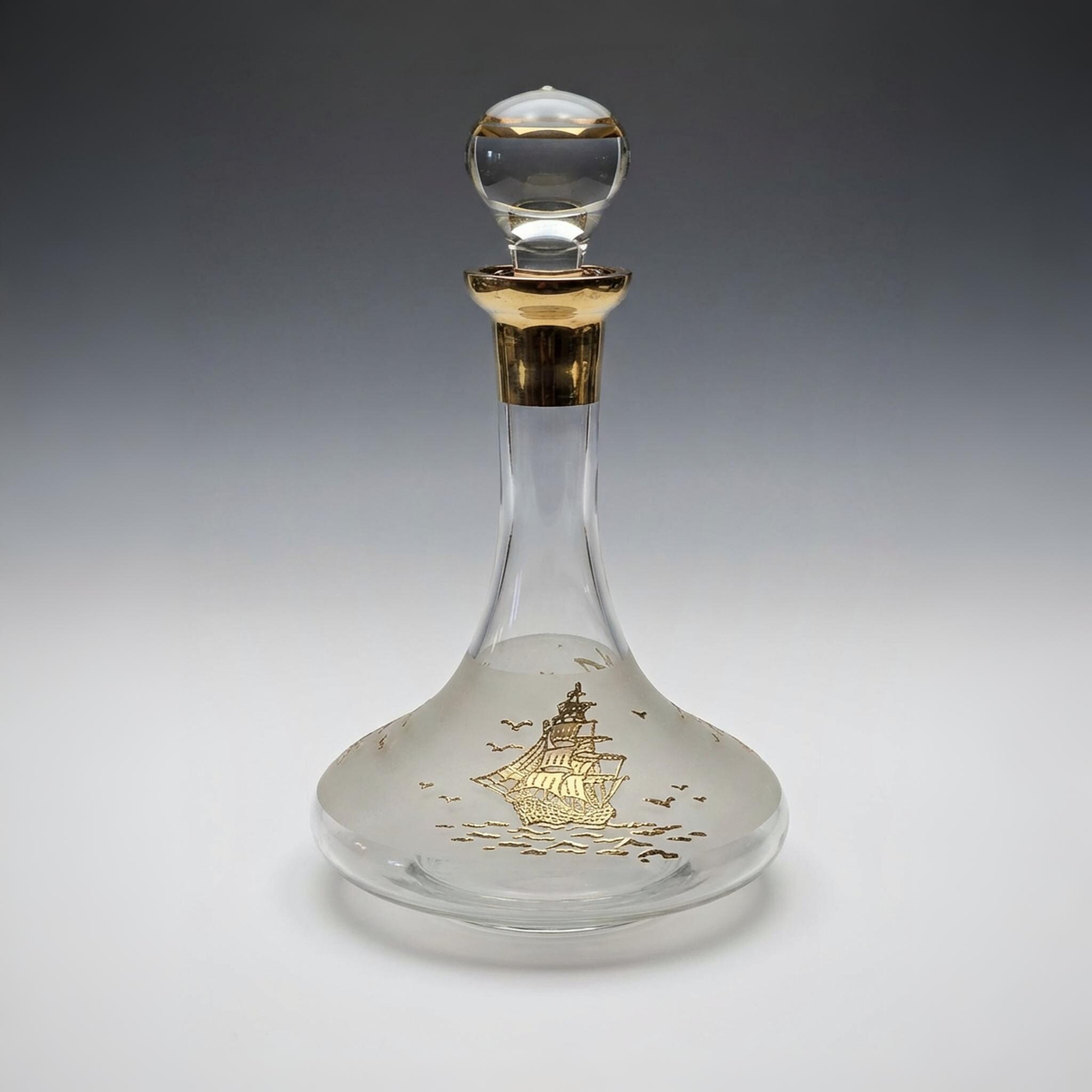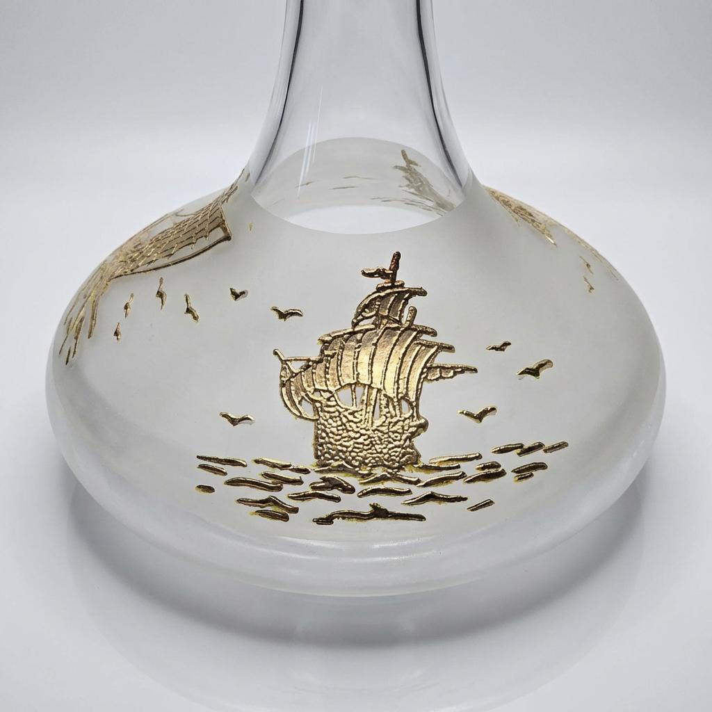 • Material: Gold galleon motifs, frosted satin banding, hand blown glass, ground glass stopper