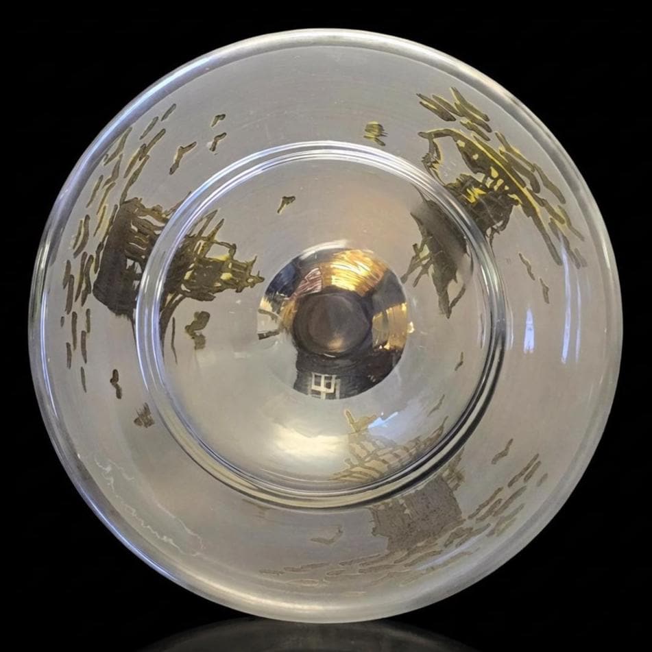 Designs featuring frosted surfaces and gold enamel motifs were highly popular during the 1960s, when European makers produced ornate barware for export. Sets like this, combining intricate decoration with traditional glassblowing techniques, now hold strong appeal among collectors seeking distinctive mid century pieces.
