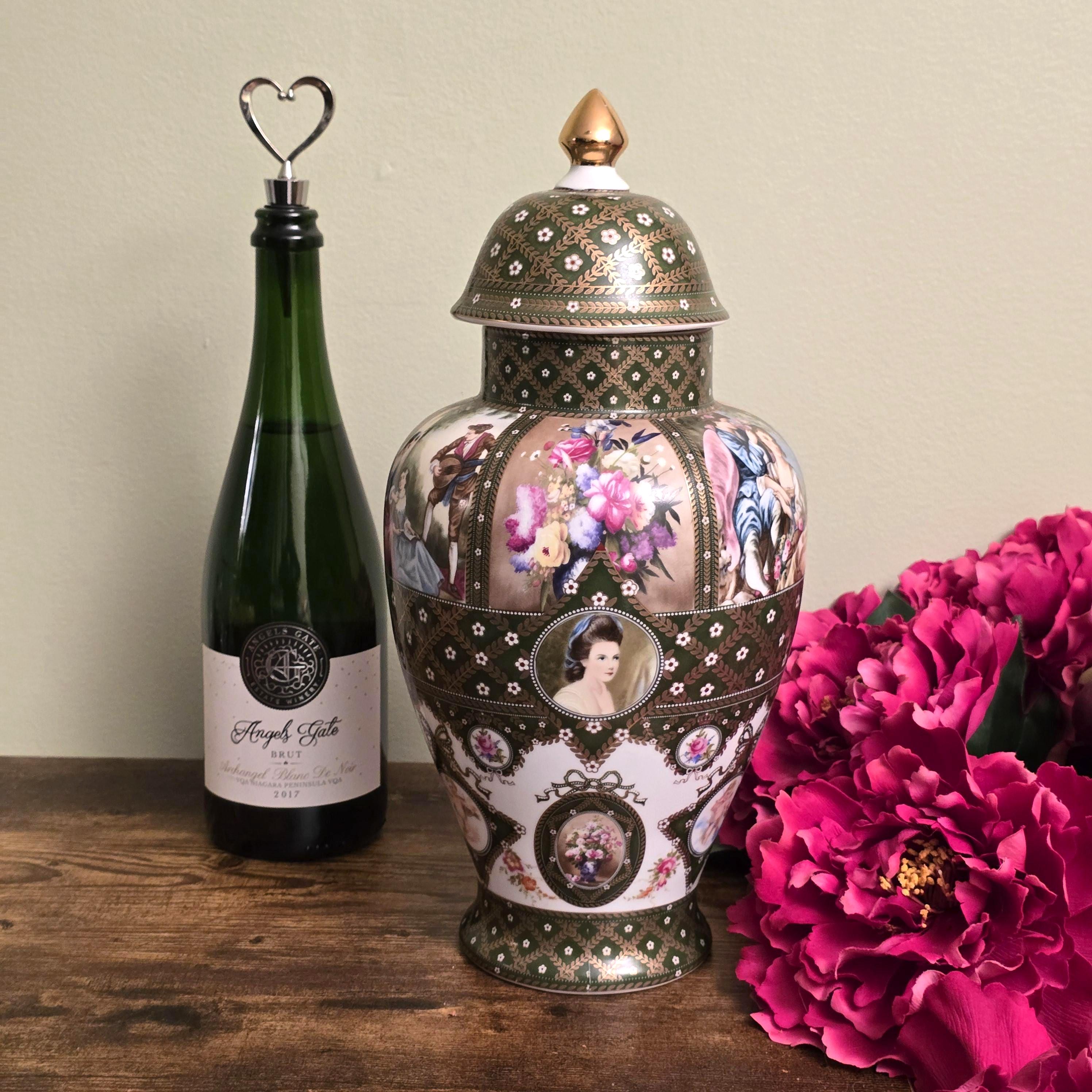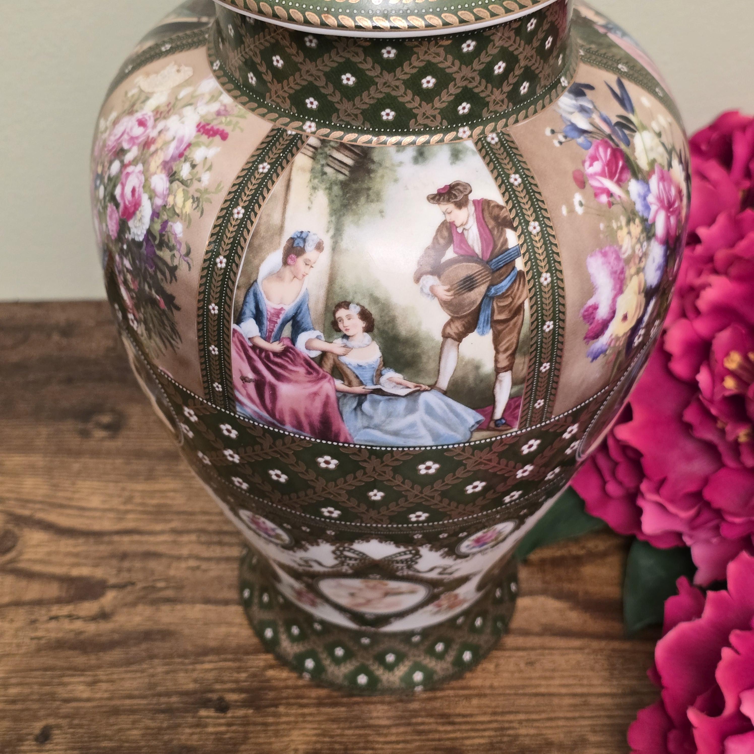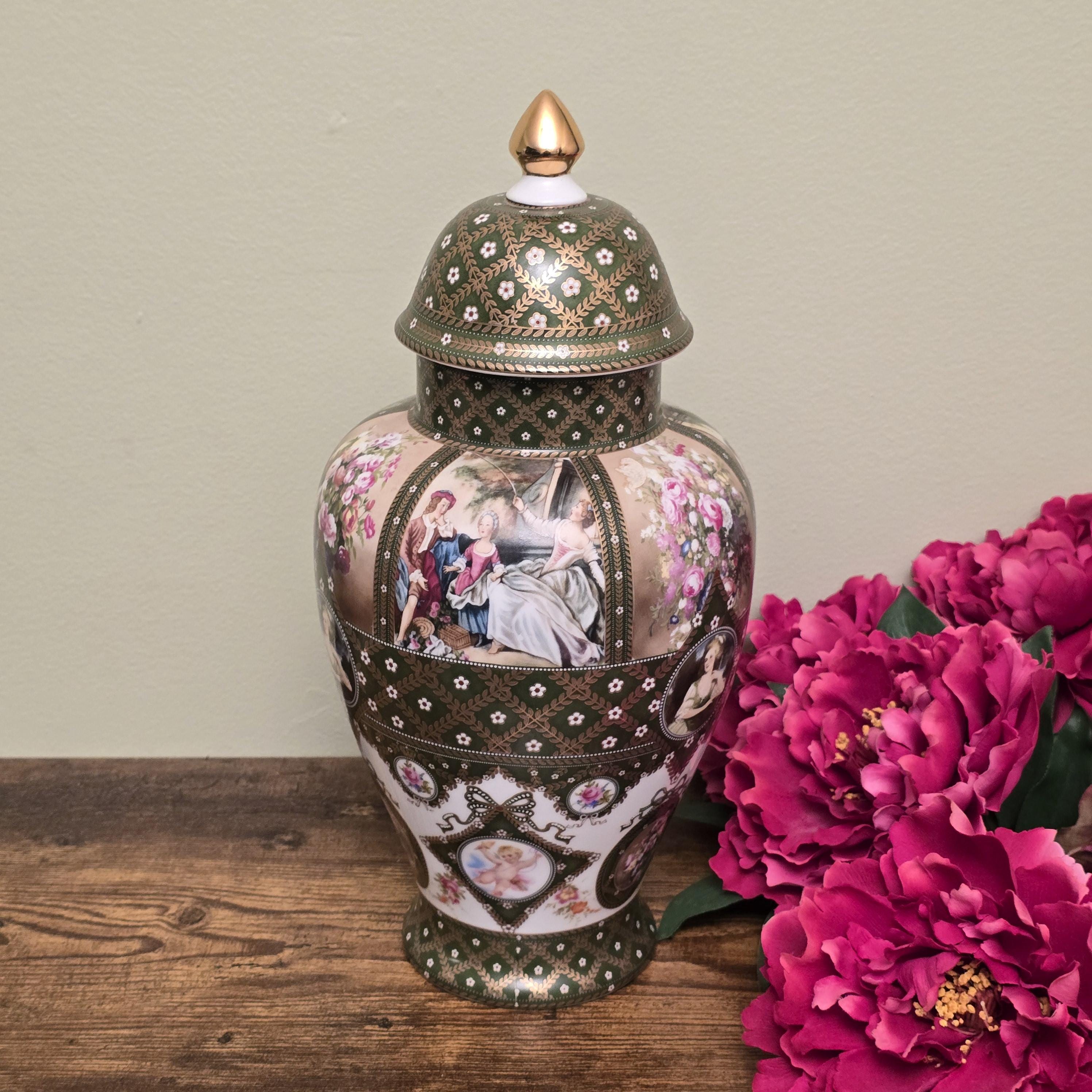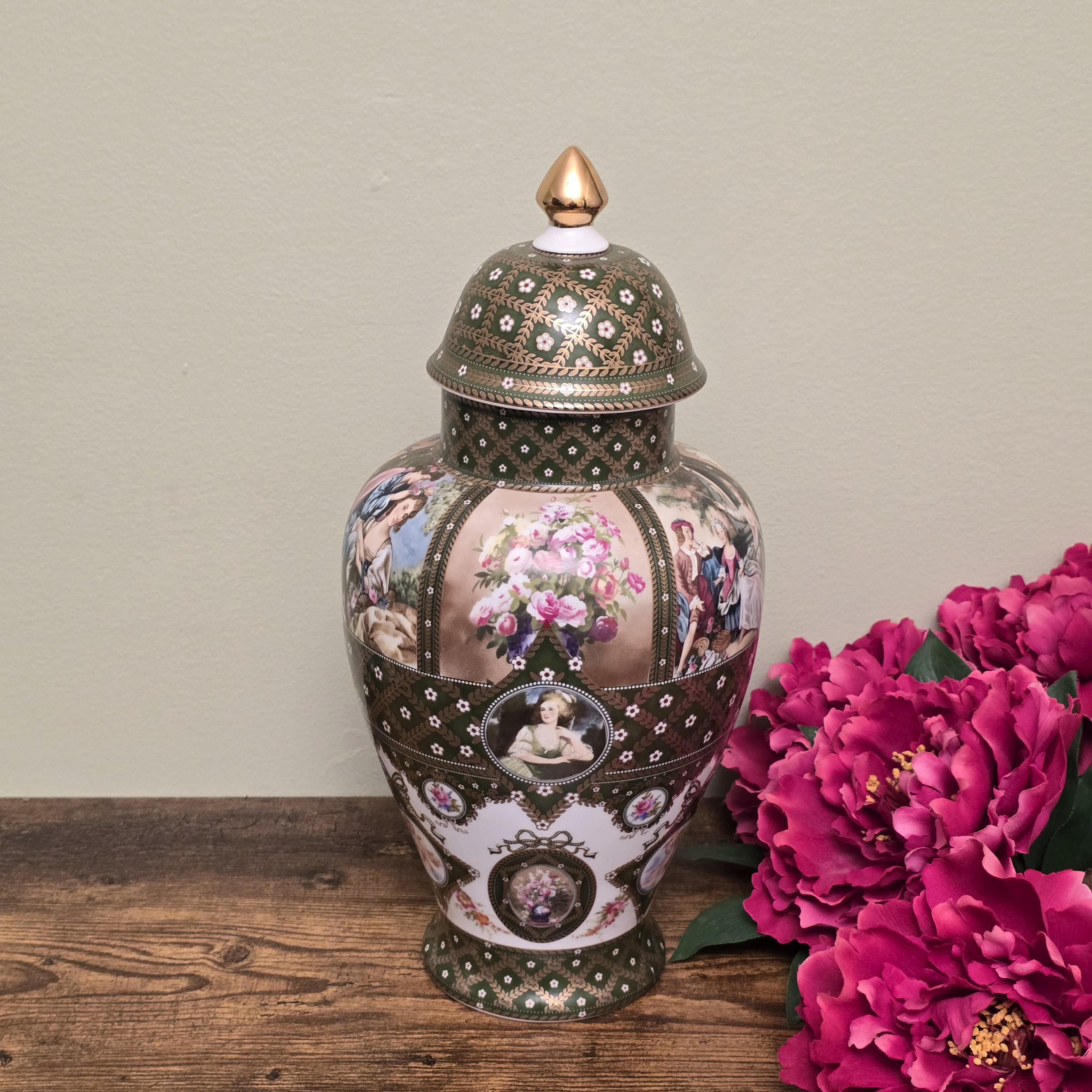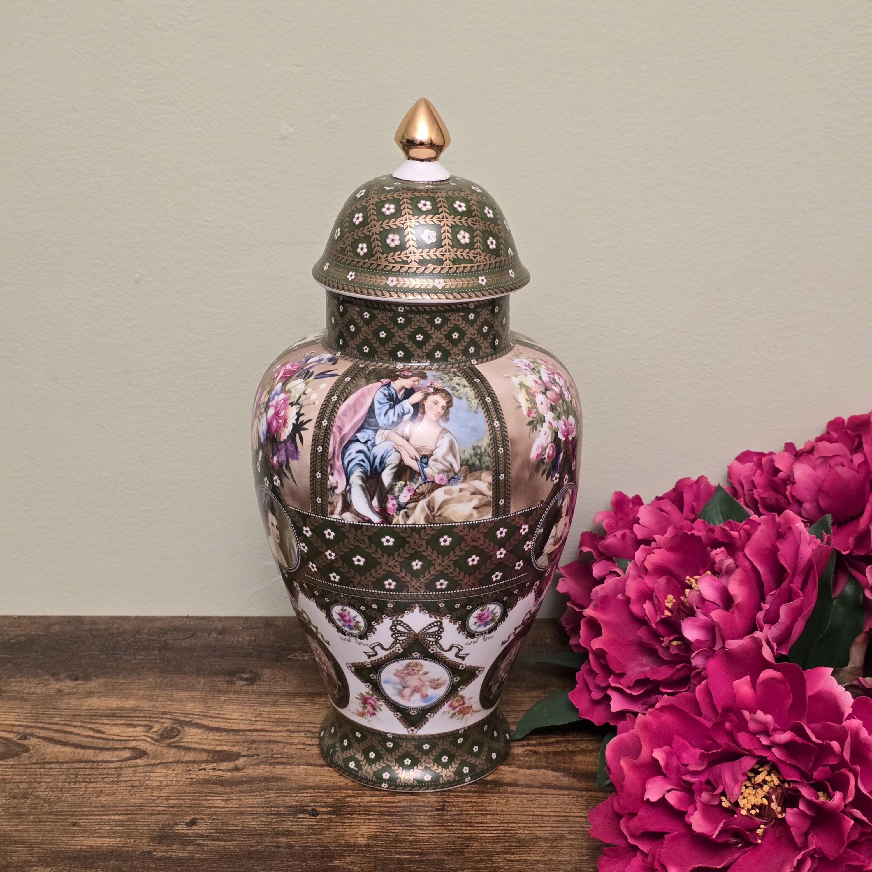 Rococo Inspired Hand Painted Porcelain Urn with Classical Scenes – Modern Decorative Reproduction Vase – China