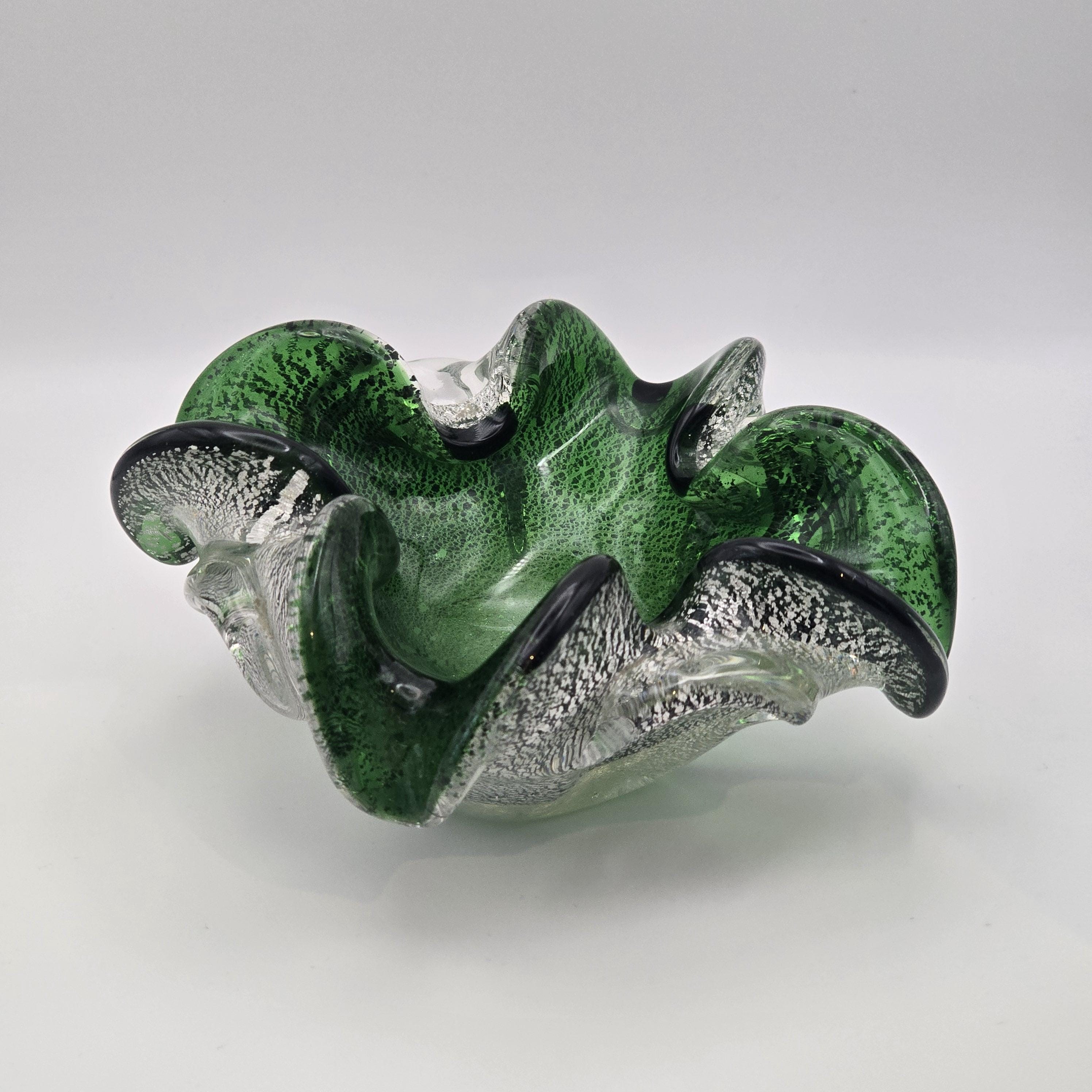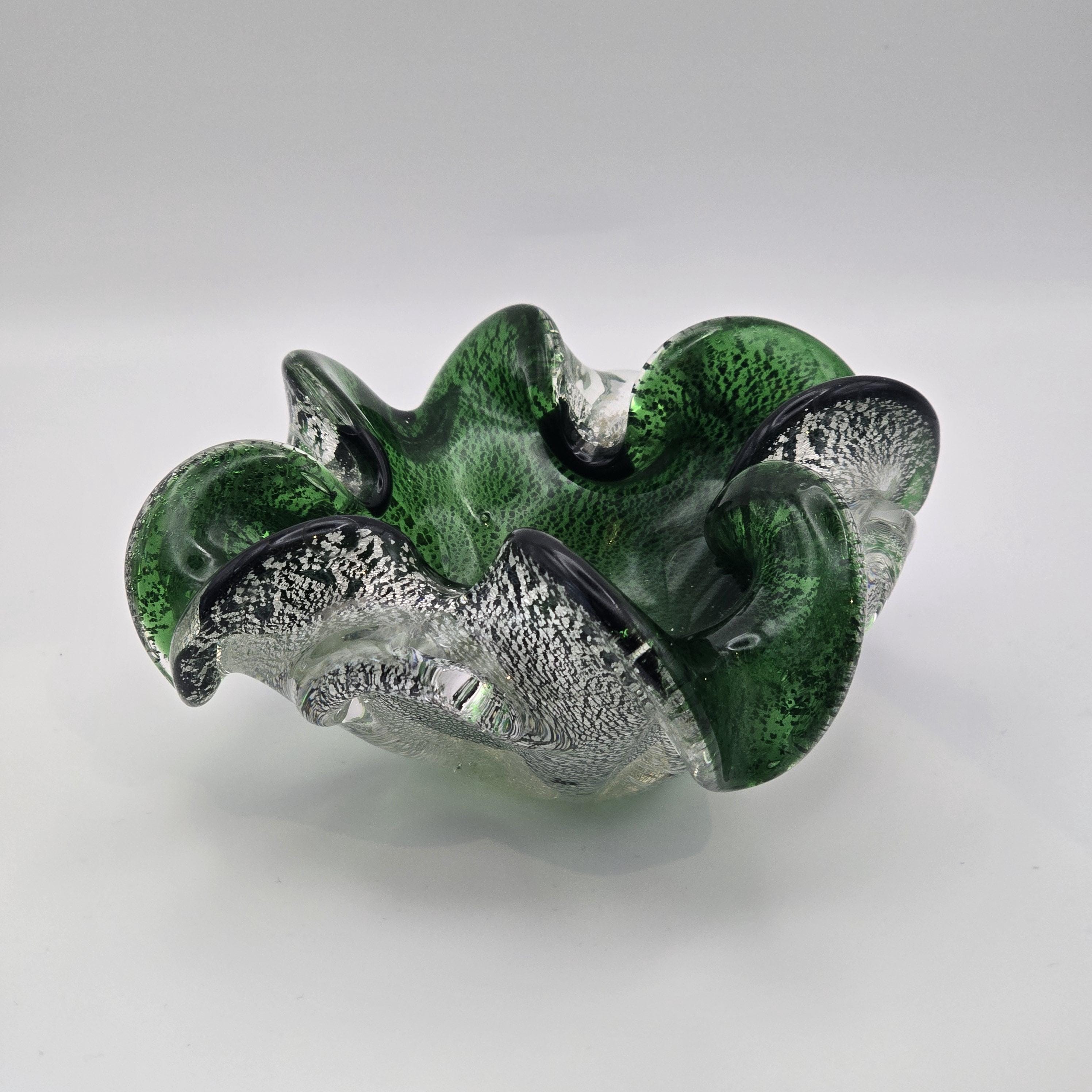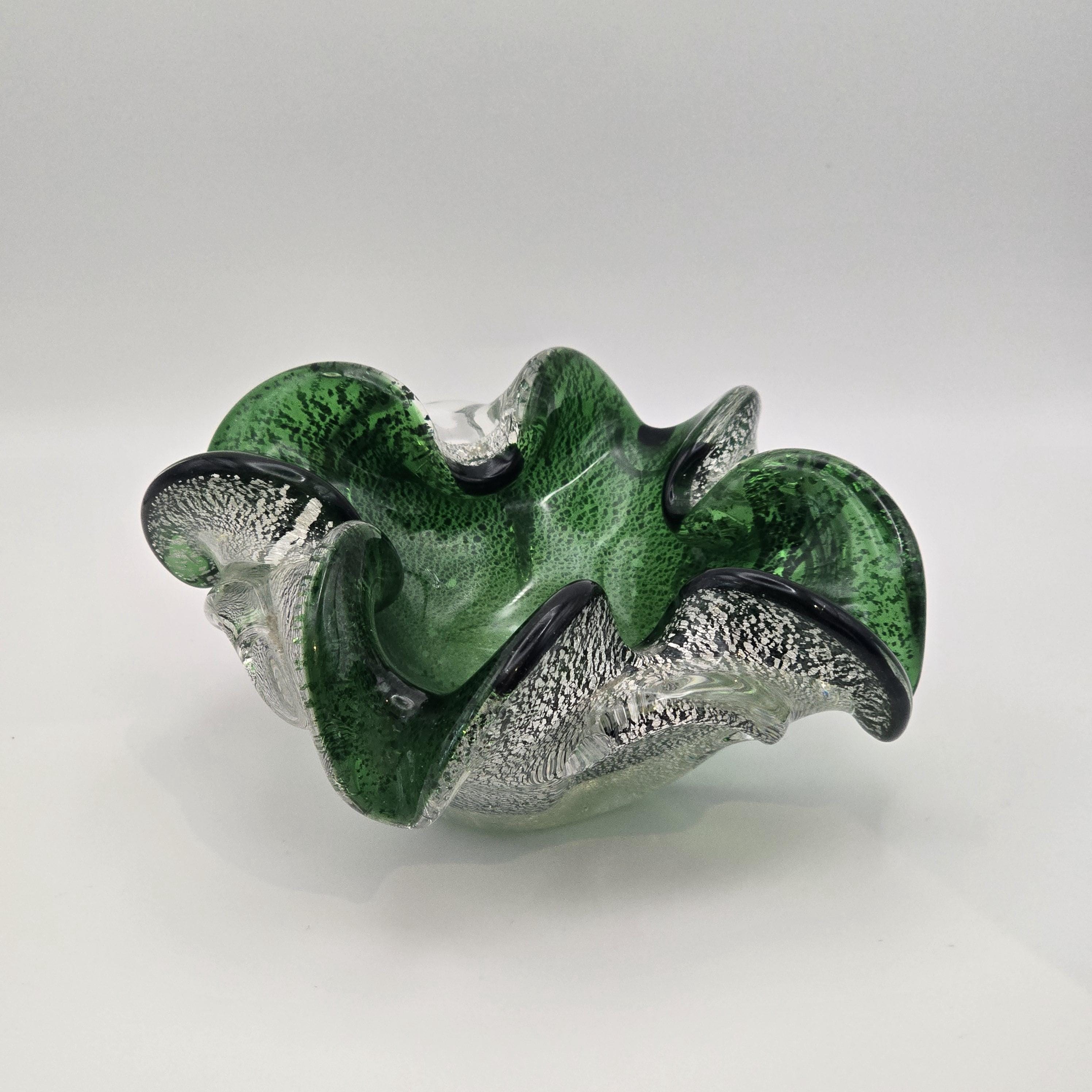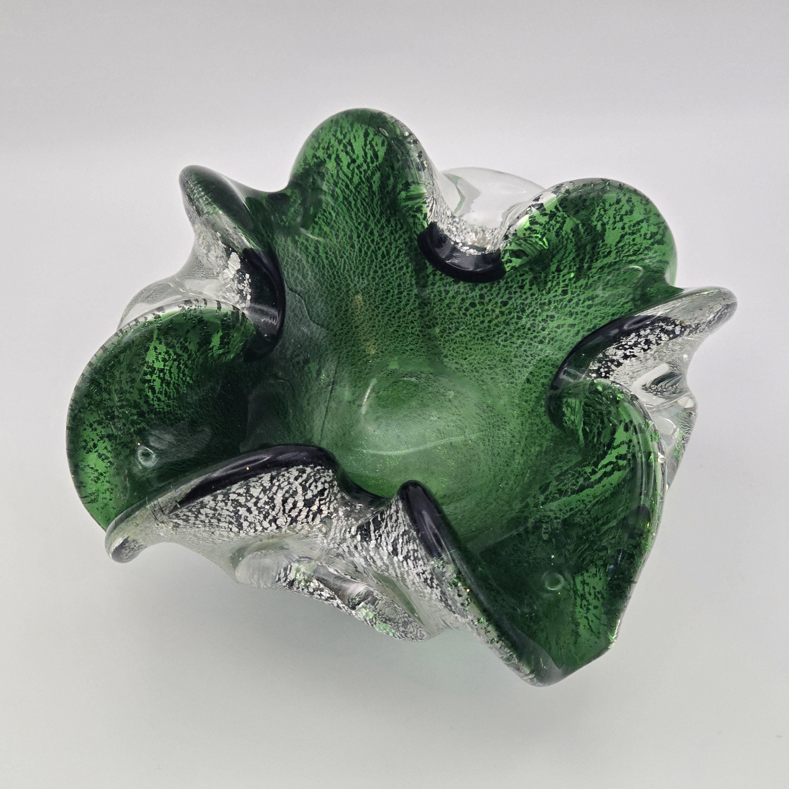 Vintage Murano Art Glass Dish – Emerald Green with Silver Fleck Italy