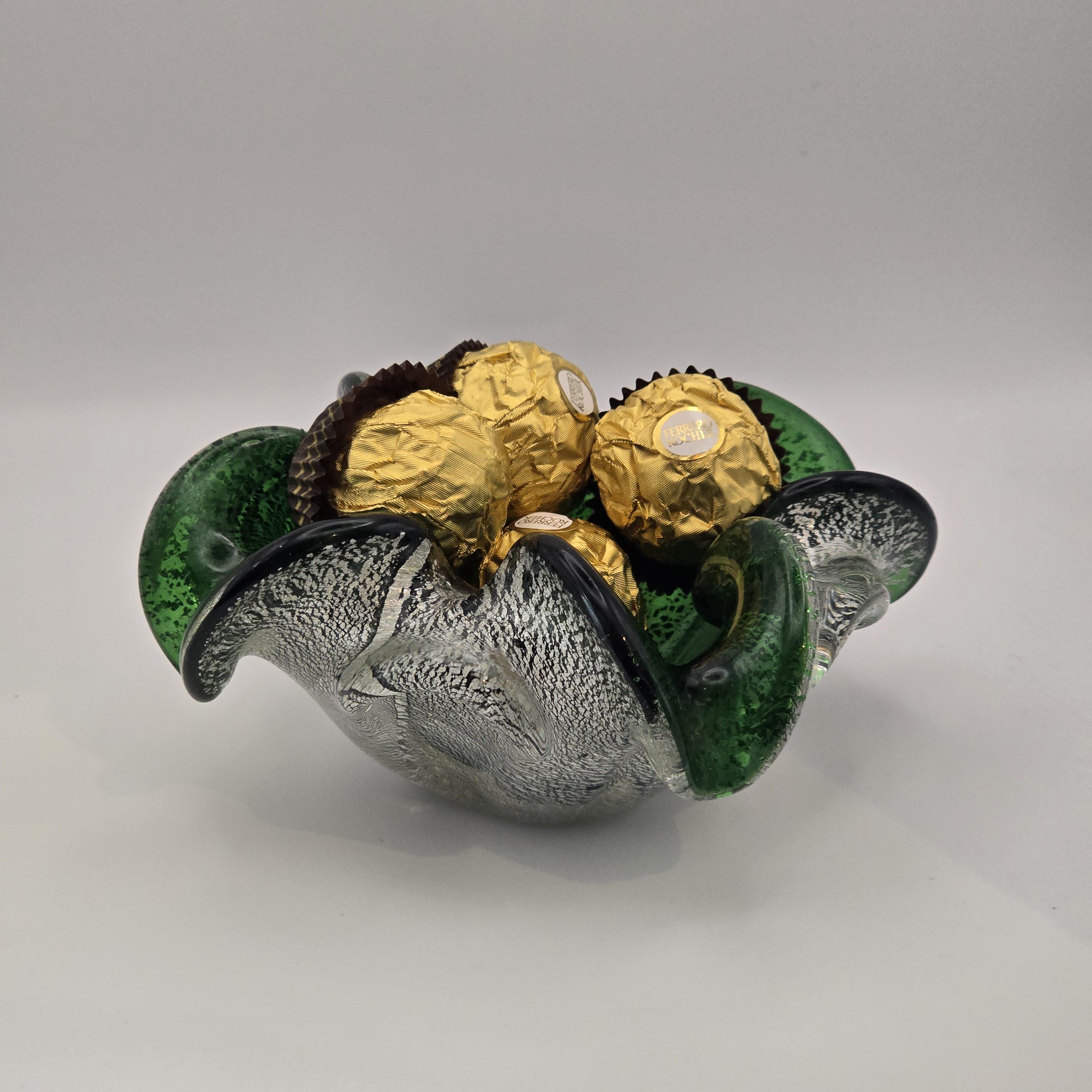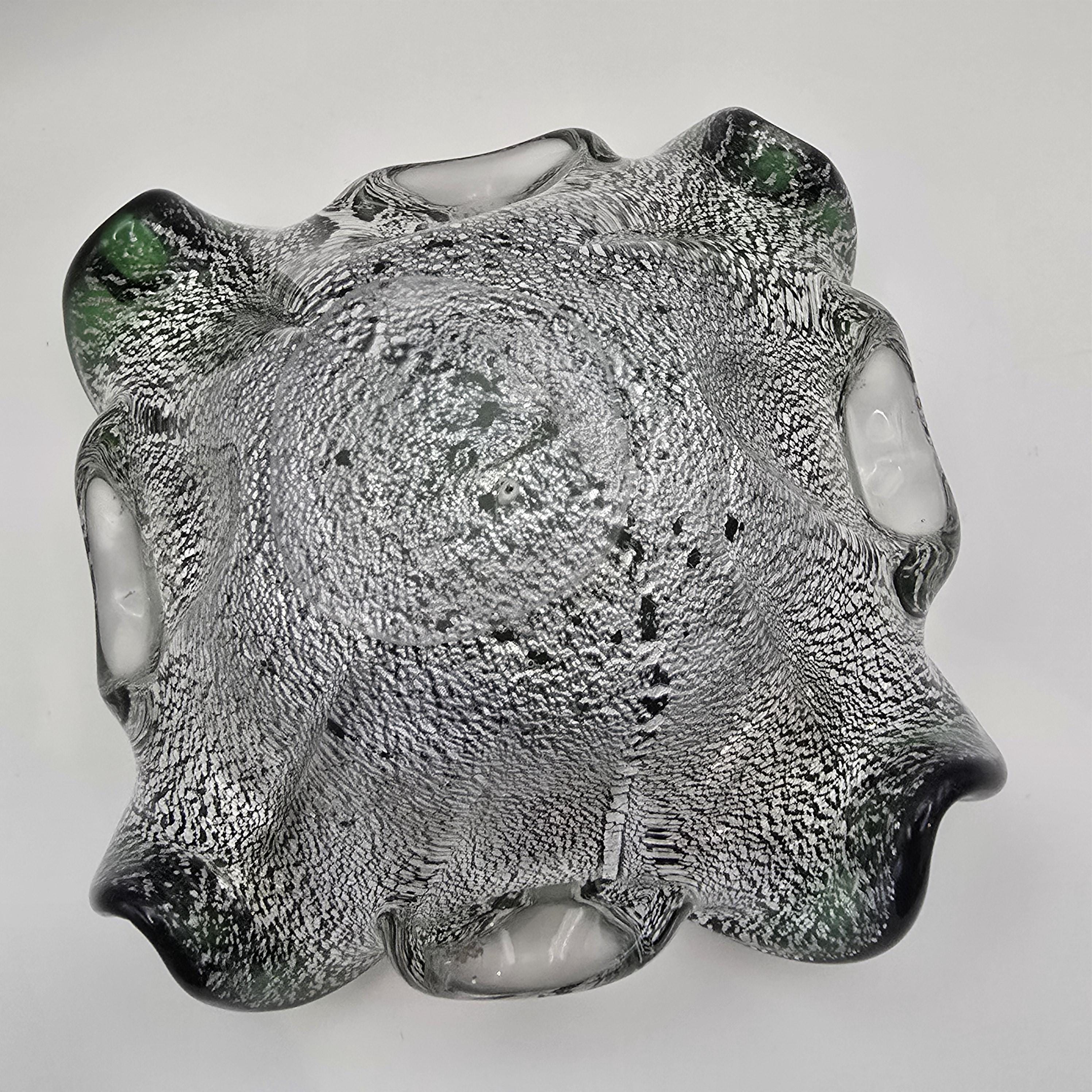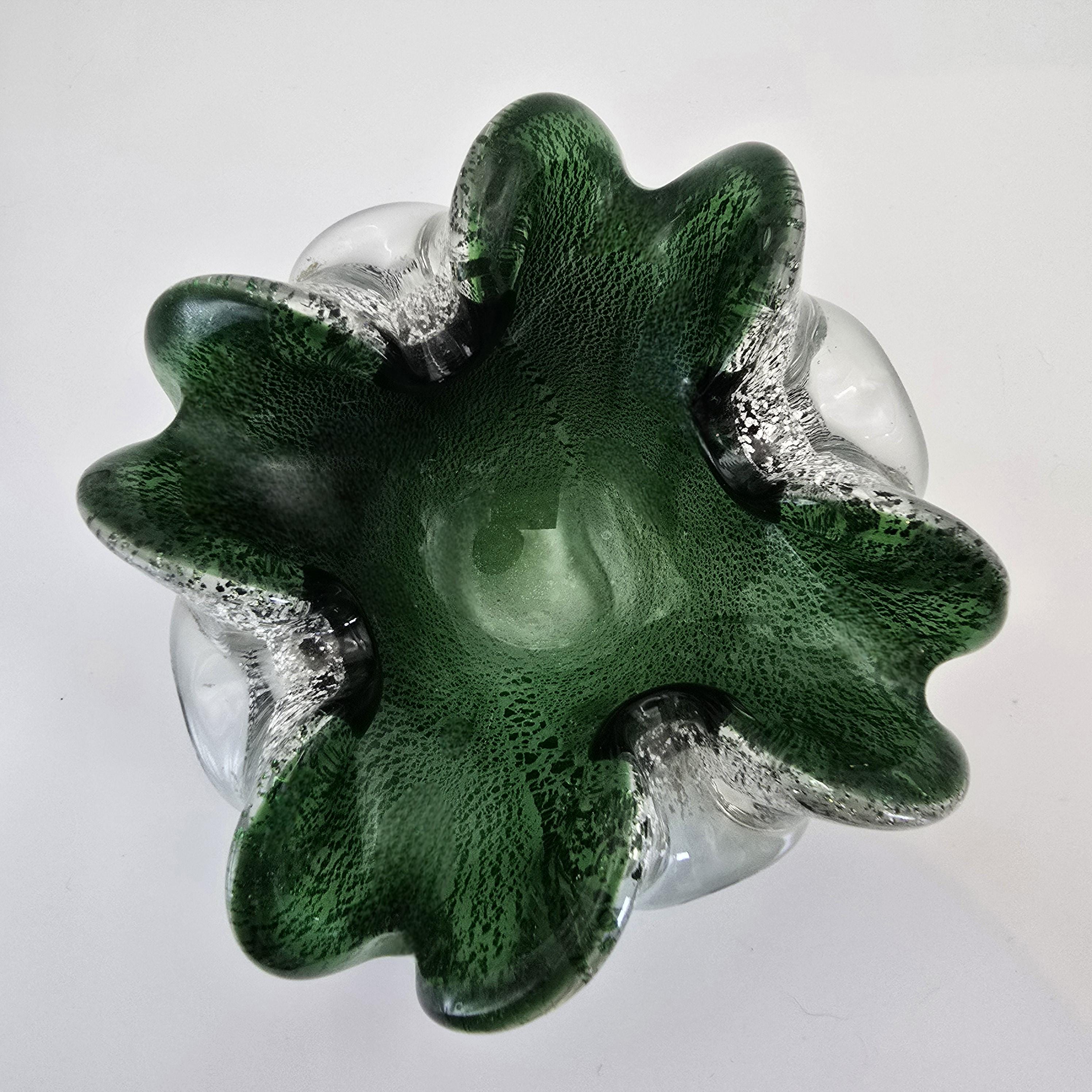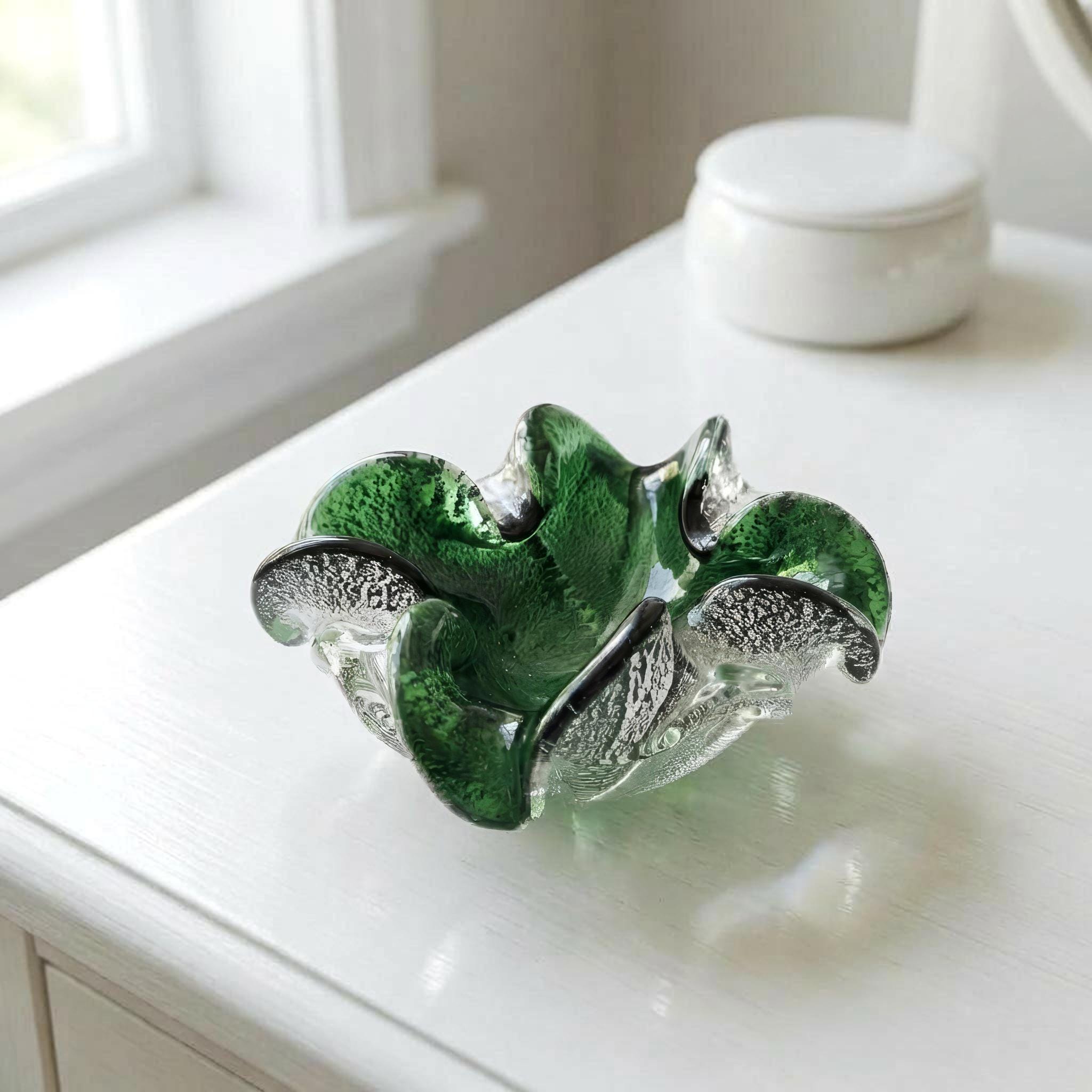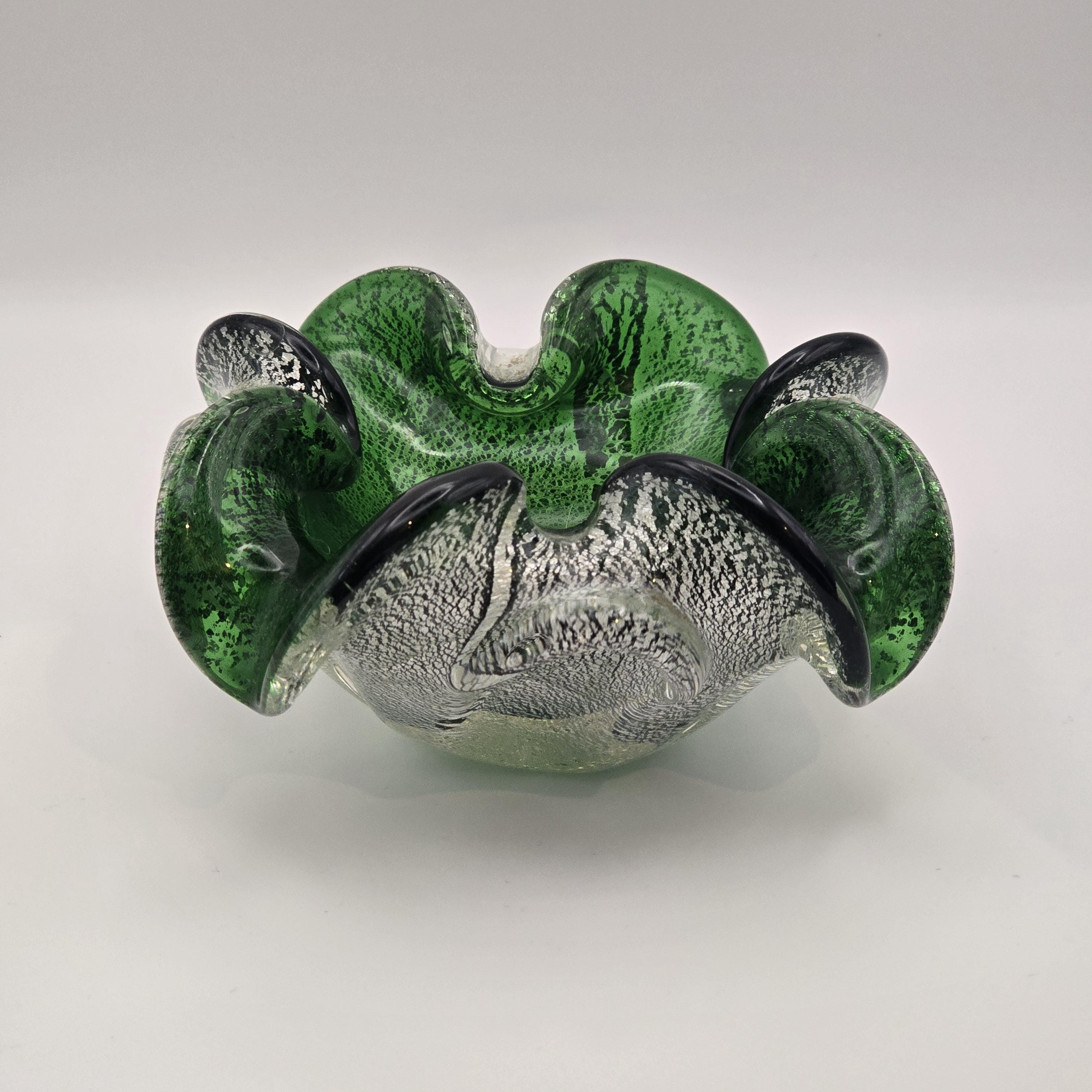 Vintage Murano Art Glass Dish – Emerald Green with Silver Fleck Italy