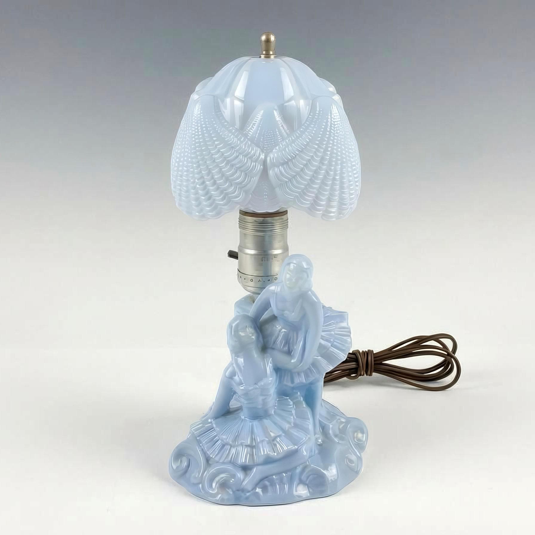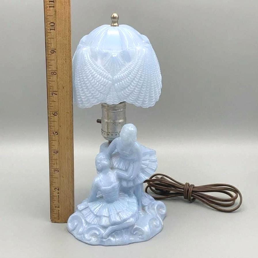 Blue Opaline Figural Boudoir Lamp – Romantic Couple Art Deco Style USA