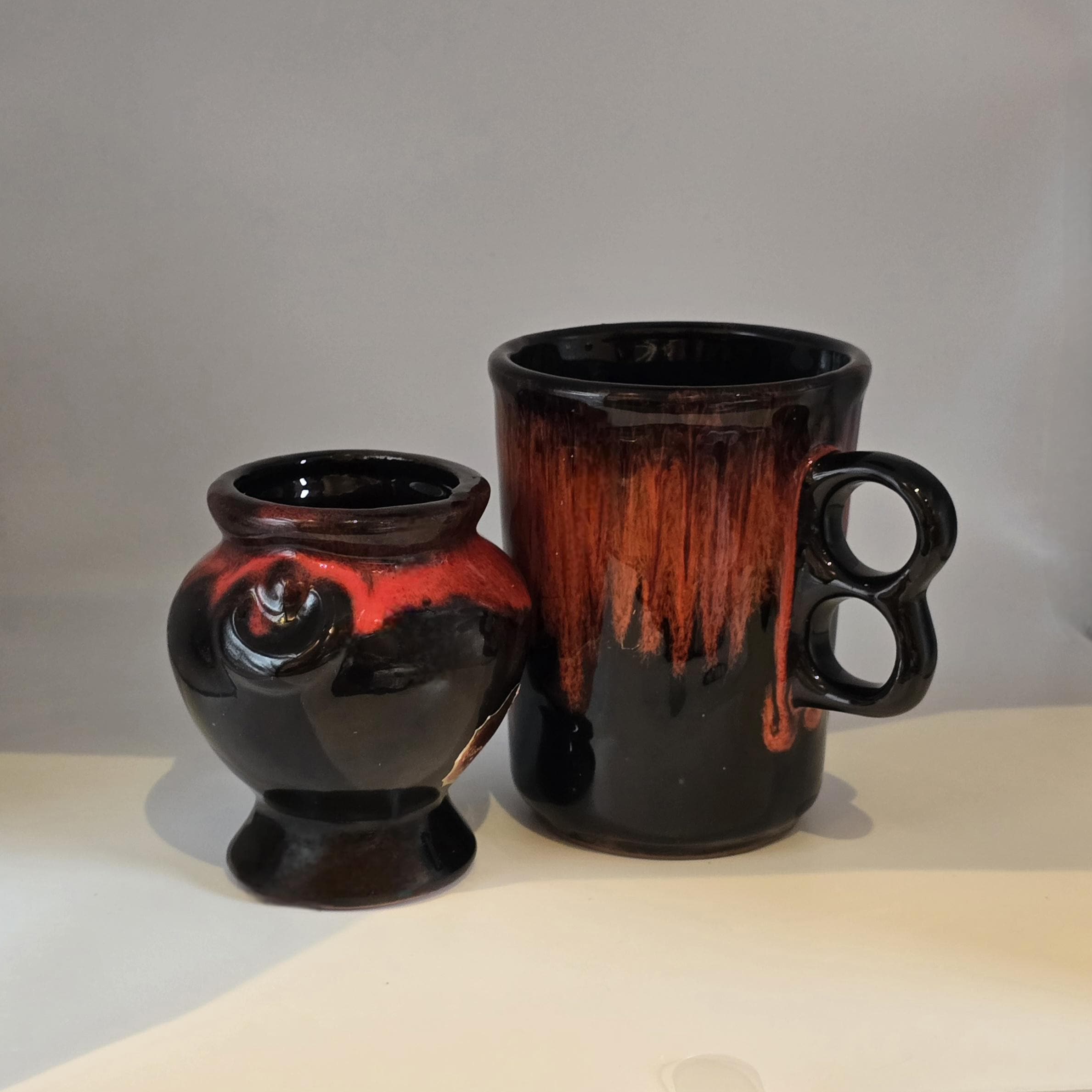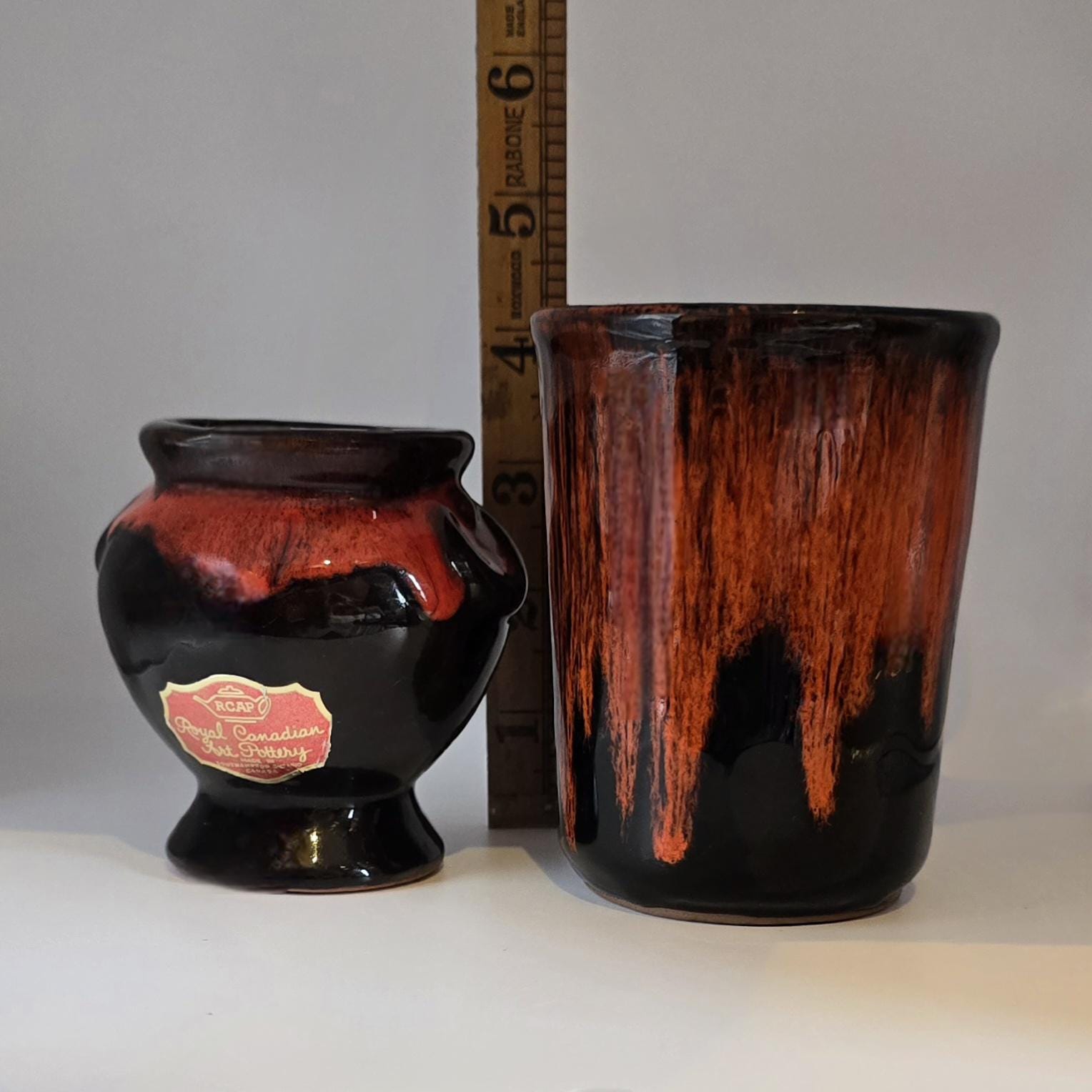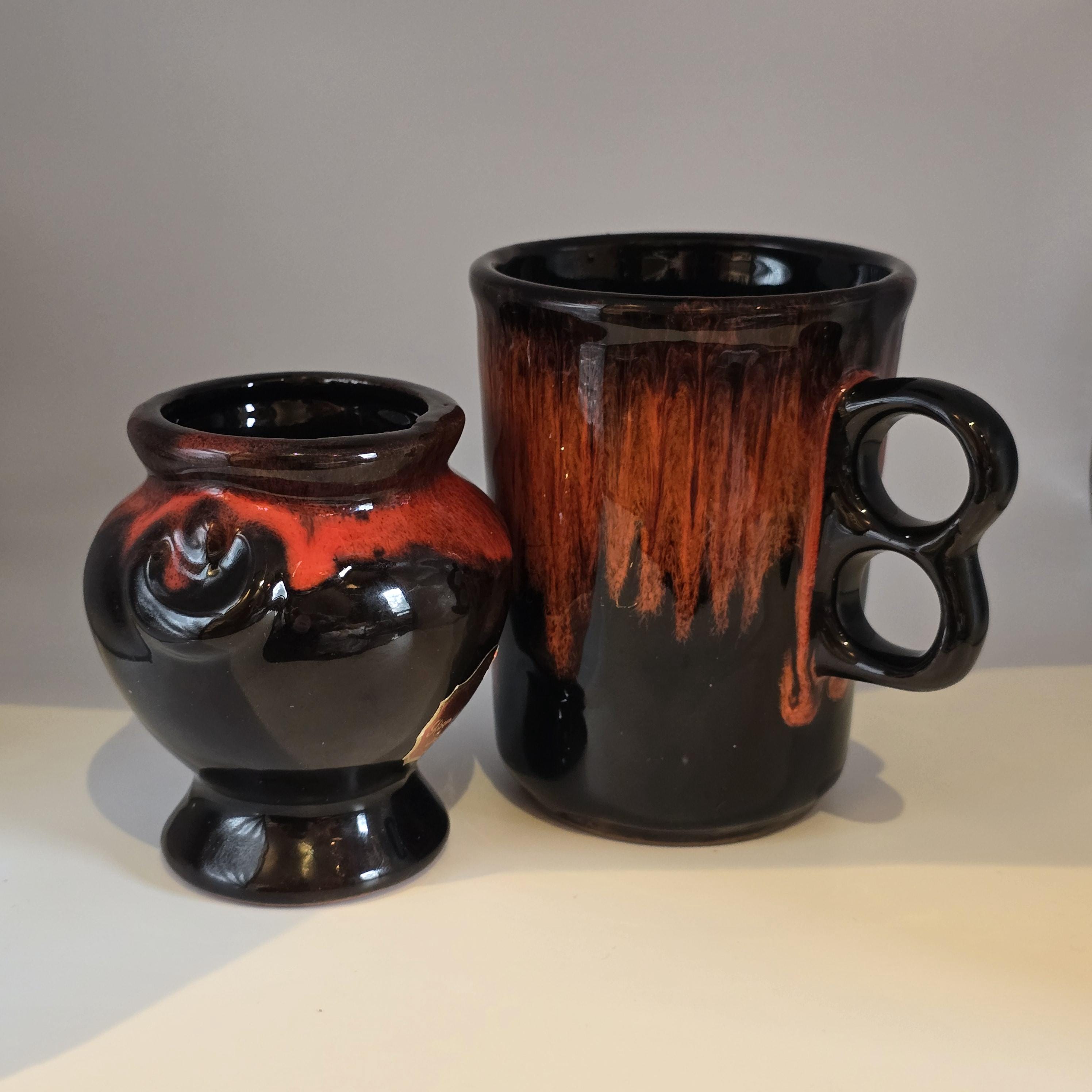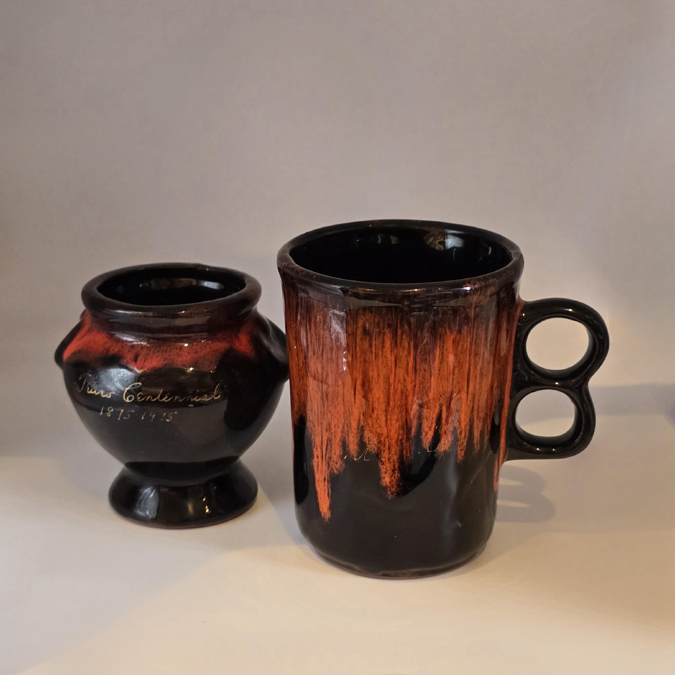 Royal Canadian Art Pottery RCAP Mug and Sugar Bowl – Red and Black Drip Glaze