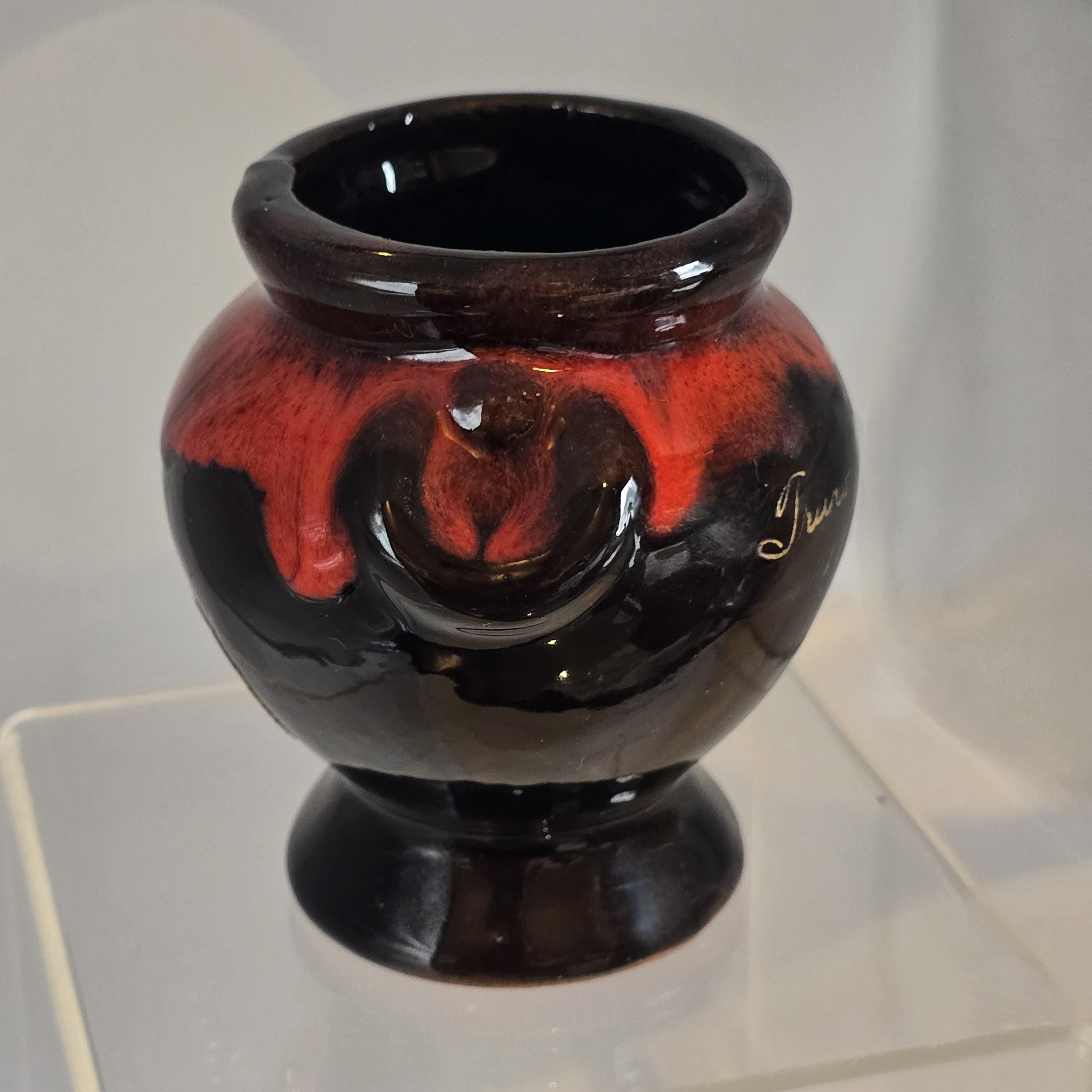 • Material: Red clay ceramic with oxblood red and black glaze