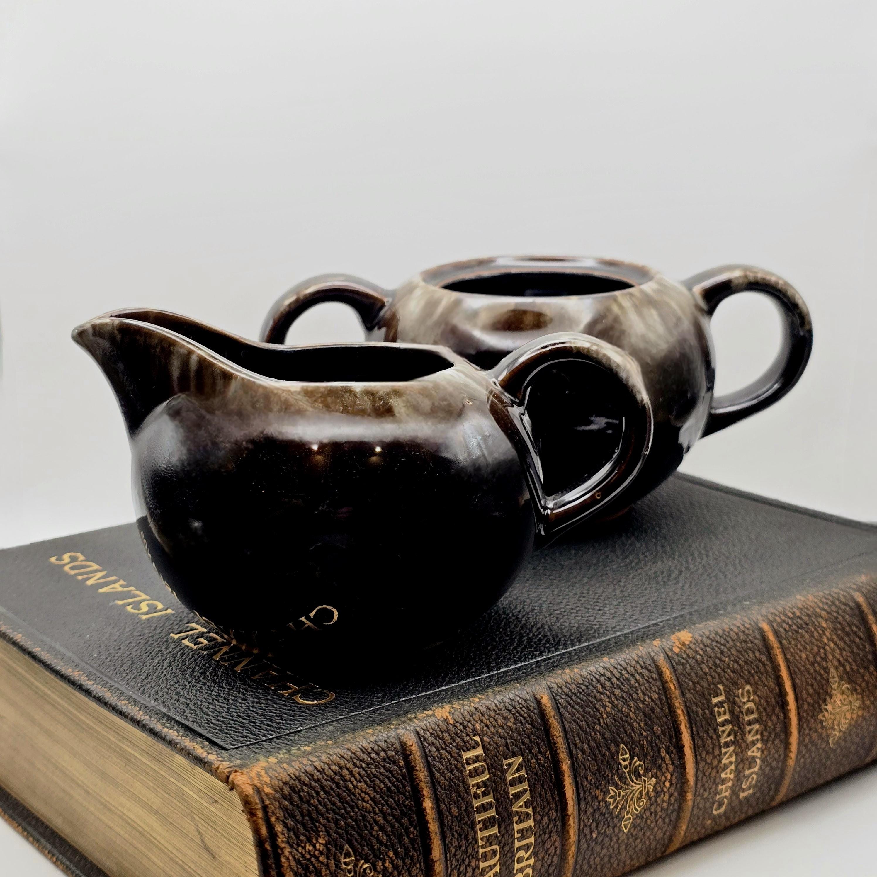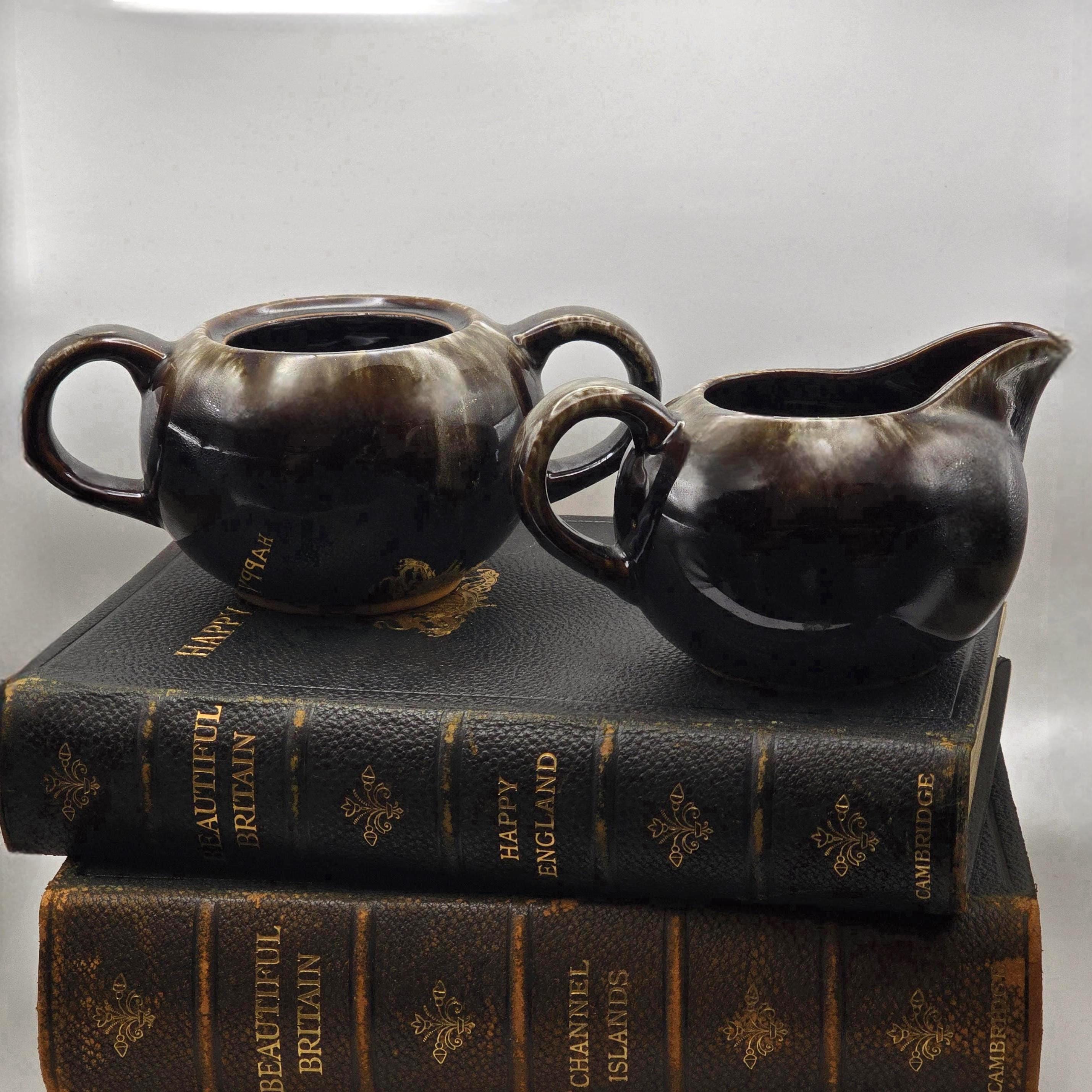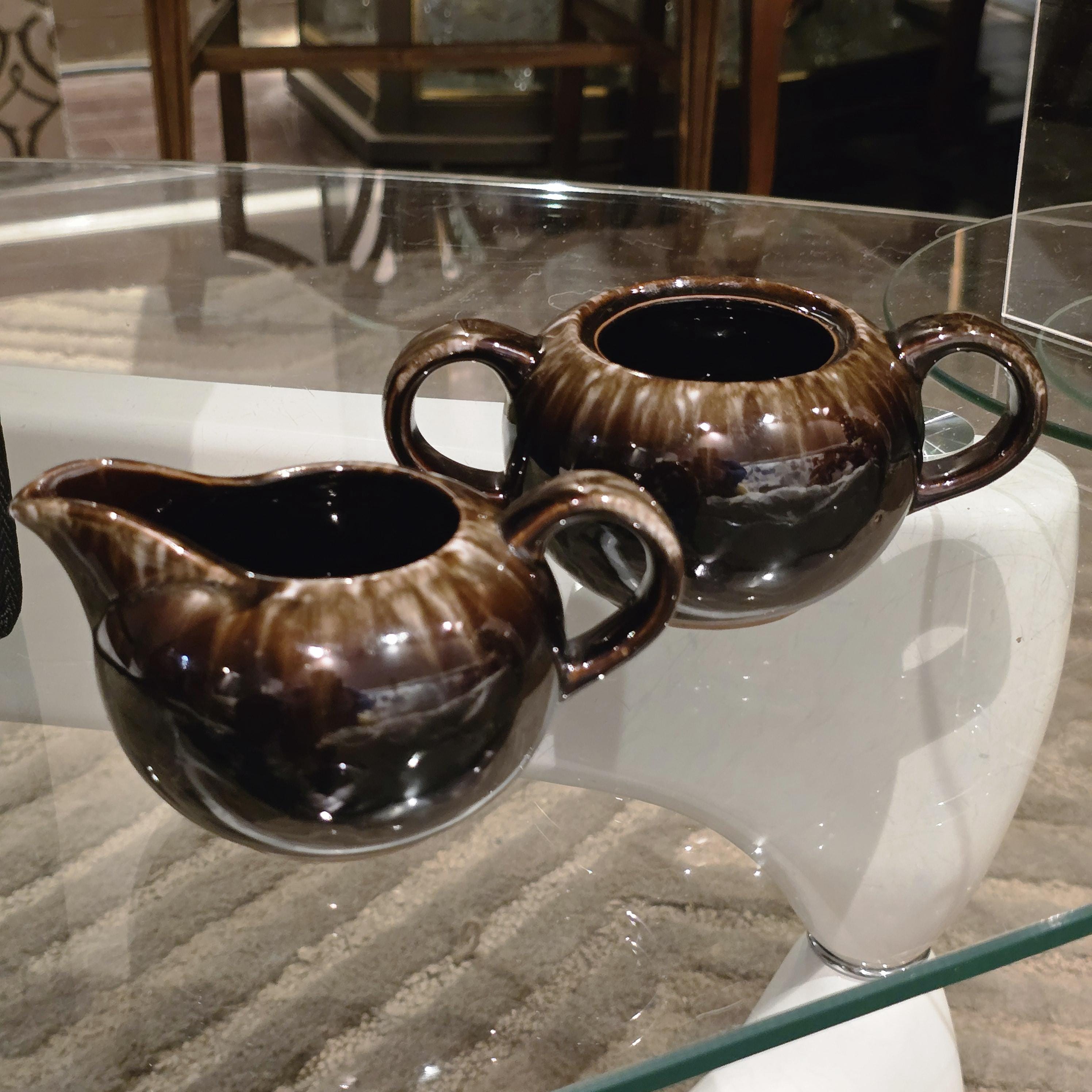 Mid Century Brown Drip Glaze Pottery Cream and Sugar – Vintage Serveware Japan